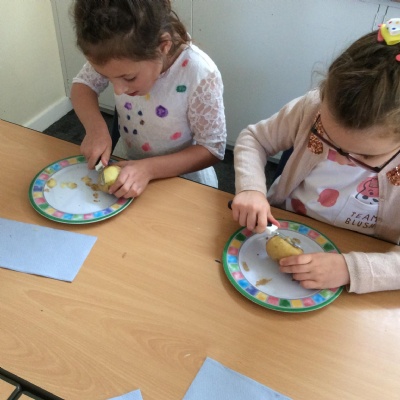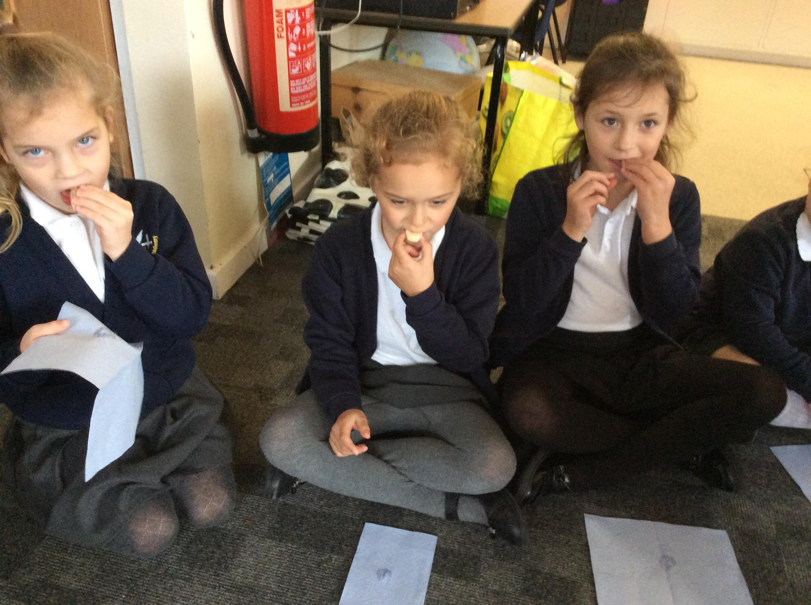 During English this week we have been reading the book Handa's Surprise. On Wednesday the children were very excited about taste testing the different fruits that Handa placed into her basket and used their senses to describe the fruits.