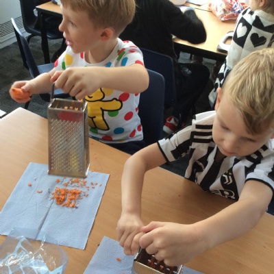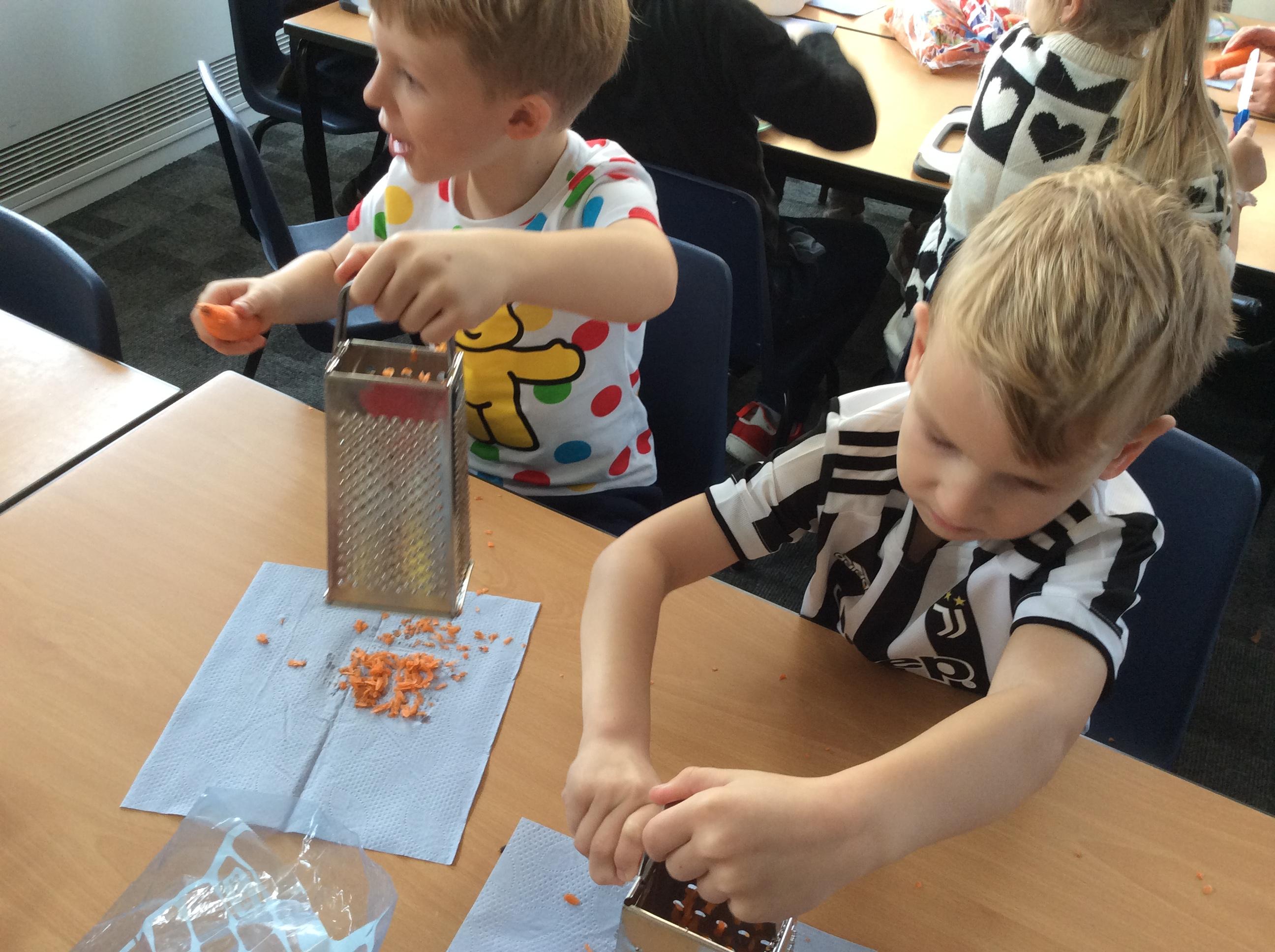 We then moved on to learning how to safely use peelers, graters and knifes to prepare fruits and vegetables that we might be using in our soup, as well as hygiene practices.