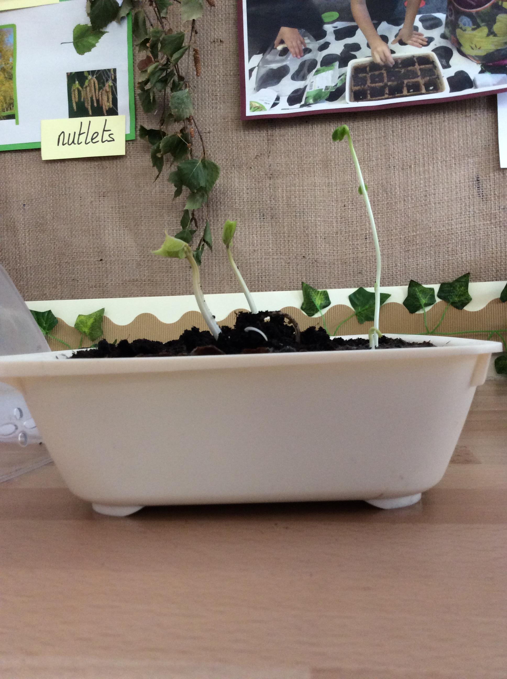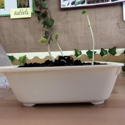 We also took a look at the seeds we planted two weeks ago and were excited to see that a lot of the seeds had germinated, especially the runner beans.