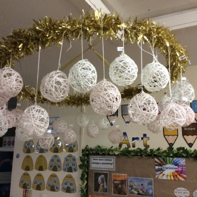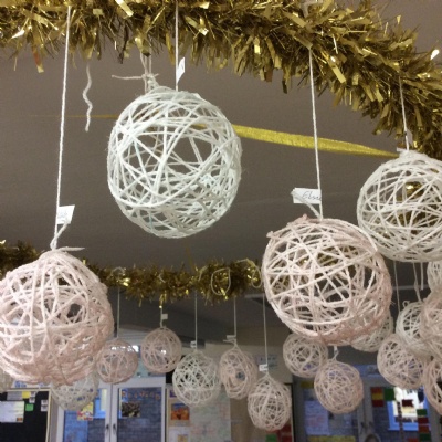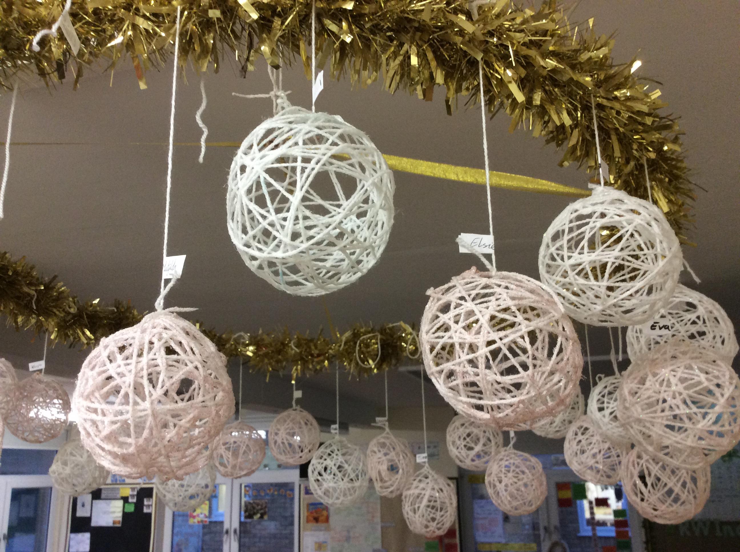 This week saw our classroom and school becoming very festive on Thursday 1st December and the children being really excited to see their classroom decorated and the Christmas Hoop, that they have all created, being hung in the school's hall ready for our Lighting Up collective worship. Gratitude's Christmas Hoop was created with the children making string baubles with balloons and wool covered in PVA glue and glitter. "It was very messy and sticky but I had fun making one." Macie