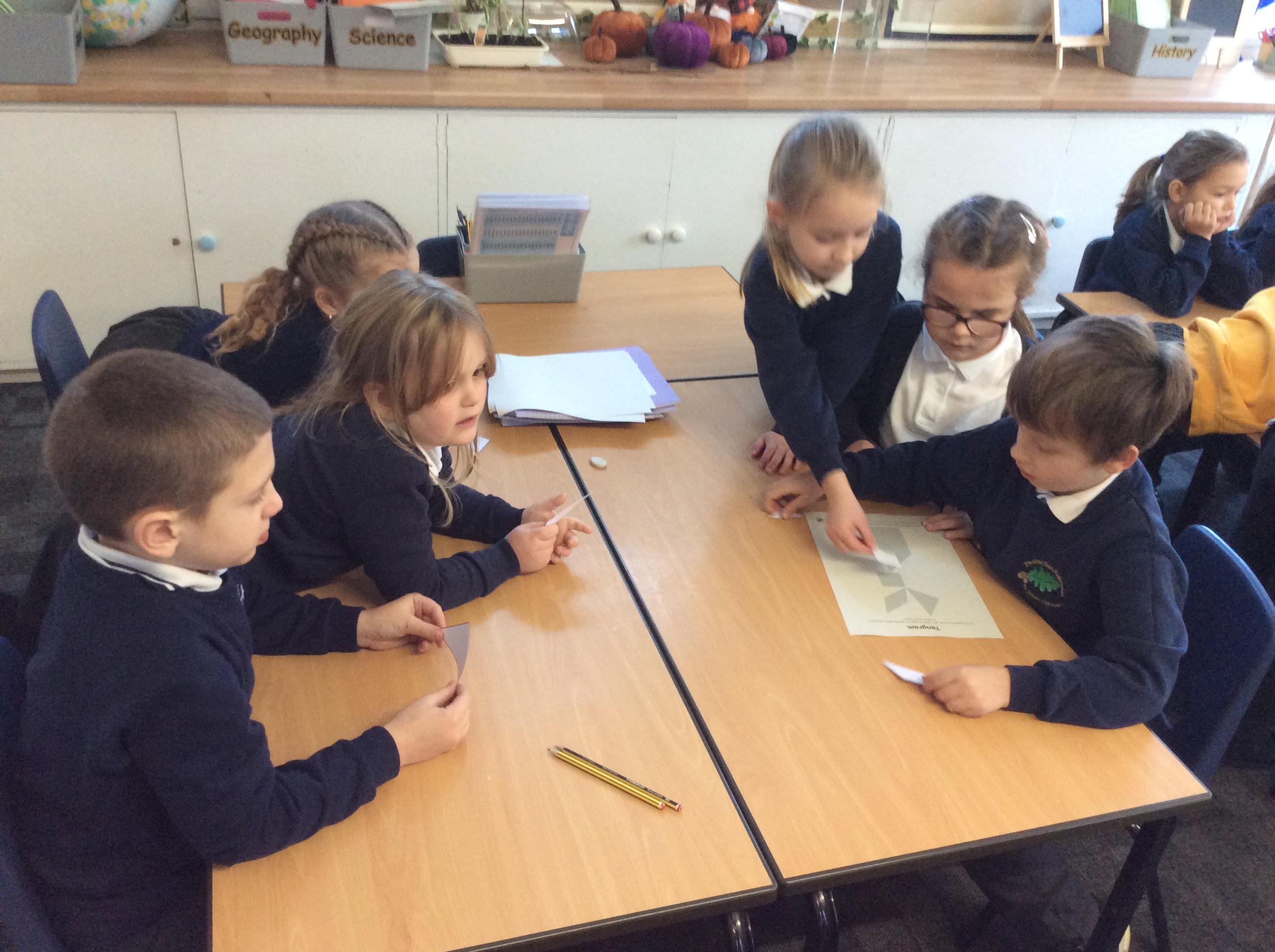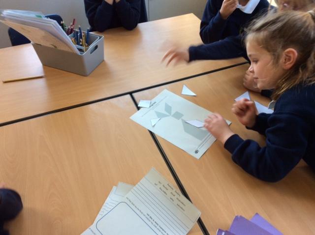 In PSHE this week saw the children learning about how to work and play cooperatively. During our lesson we looked closely at how people and animals work in teams to support one another, then we worked in small groups to work on a tangram challenge to create pictures using a selection of shapes. It was lovely to see the children cooperating with each other and discussing how they could solve the problem together.