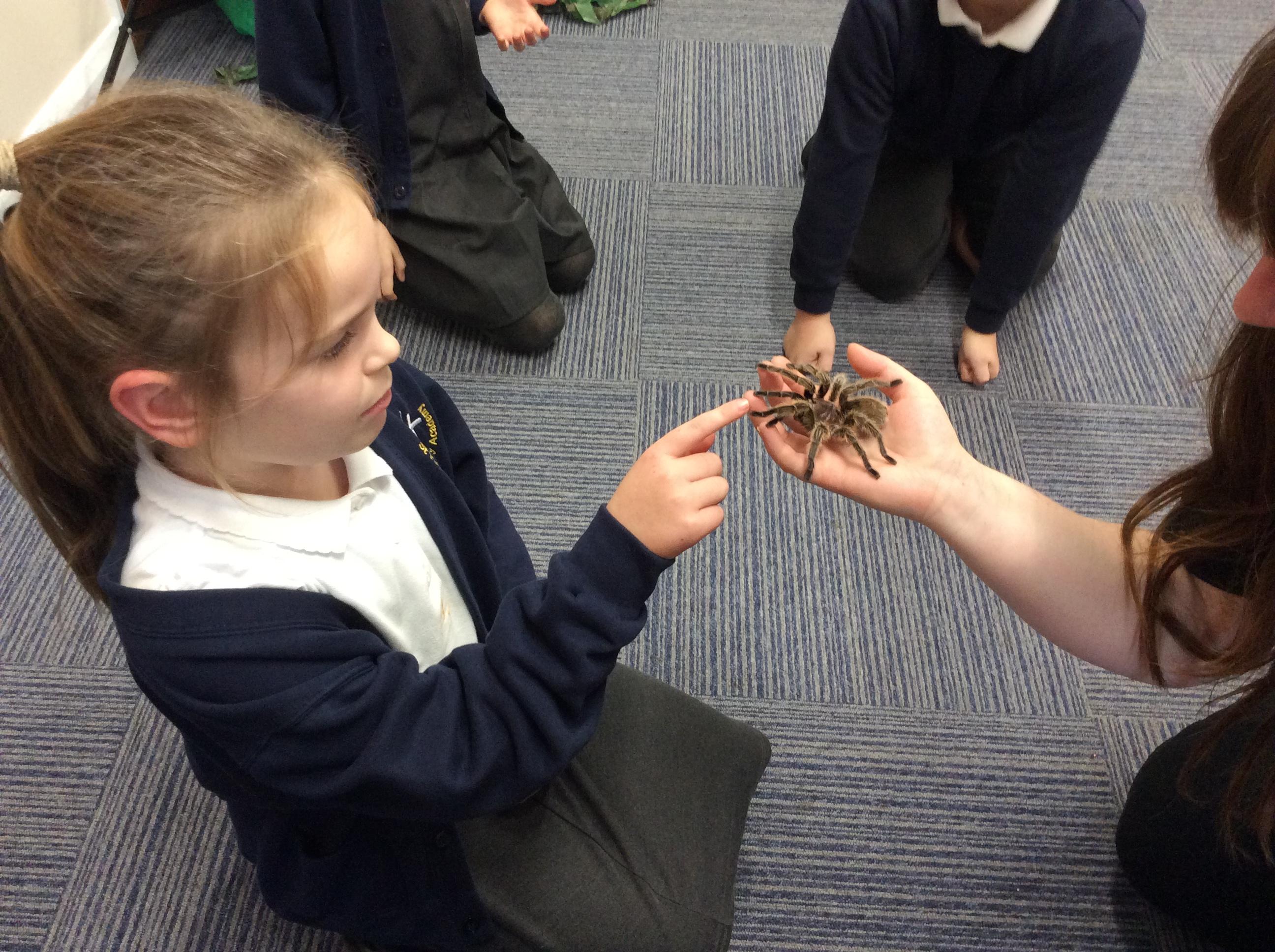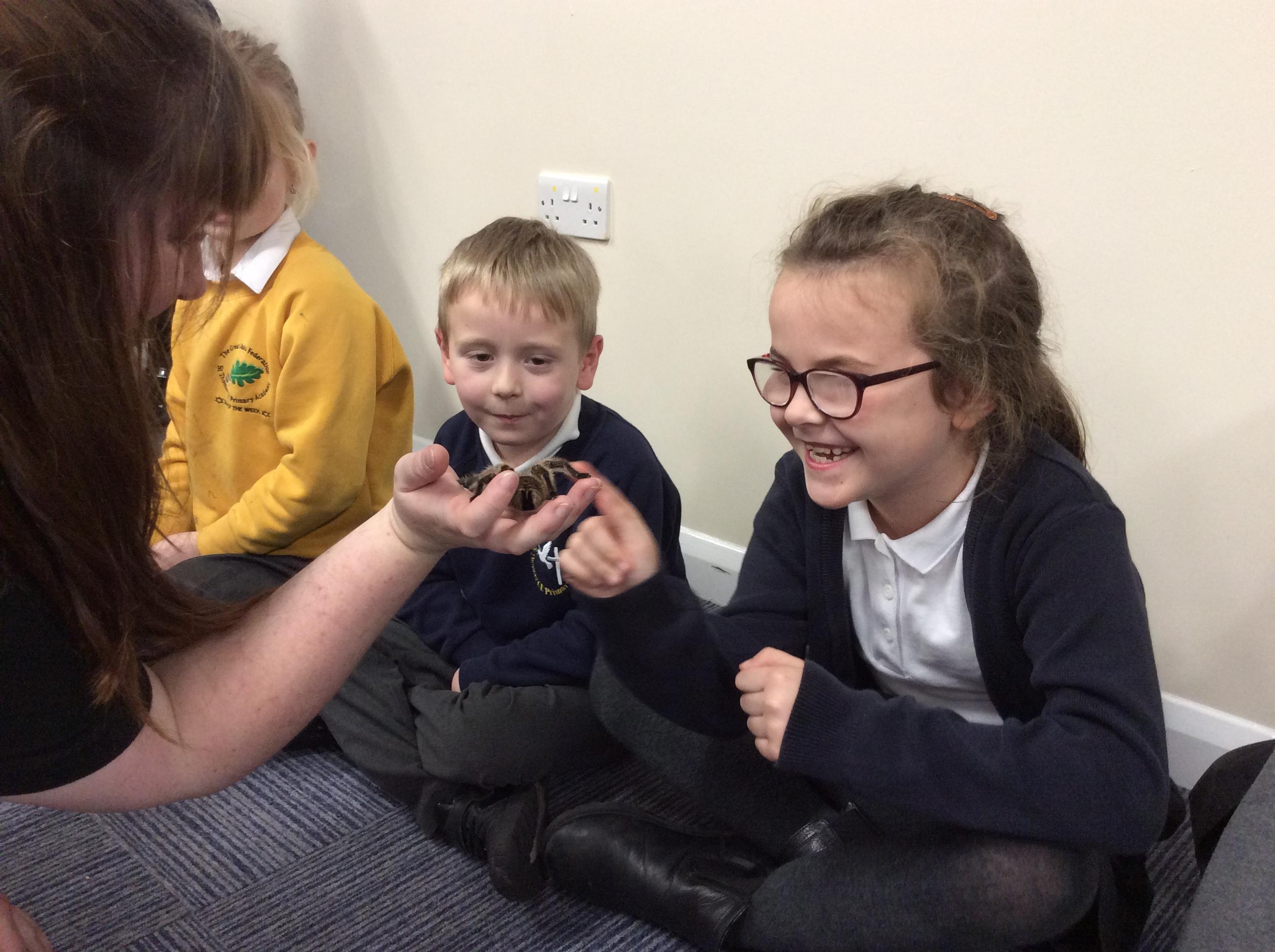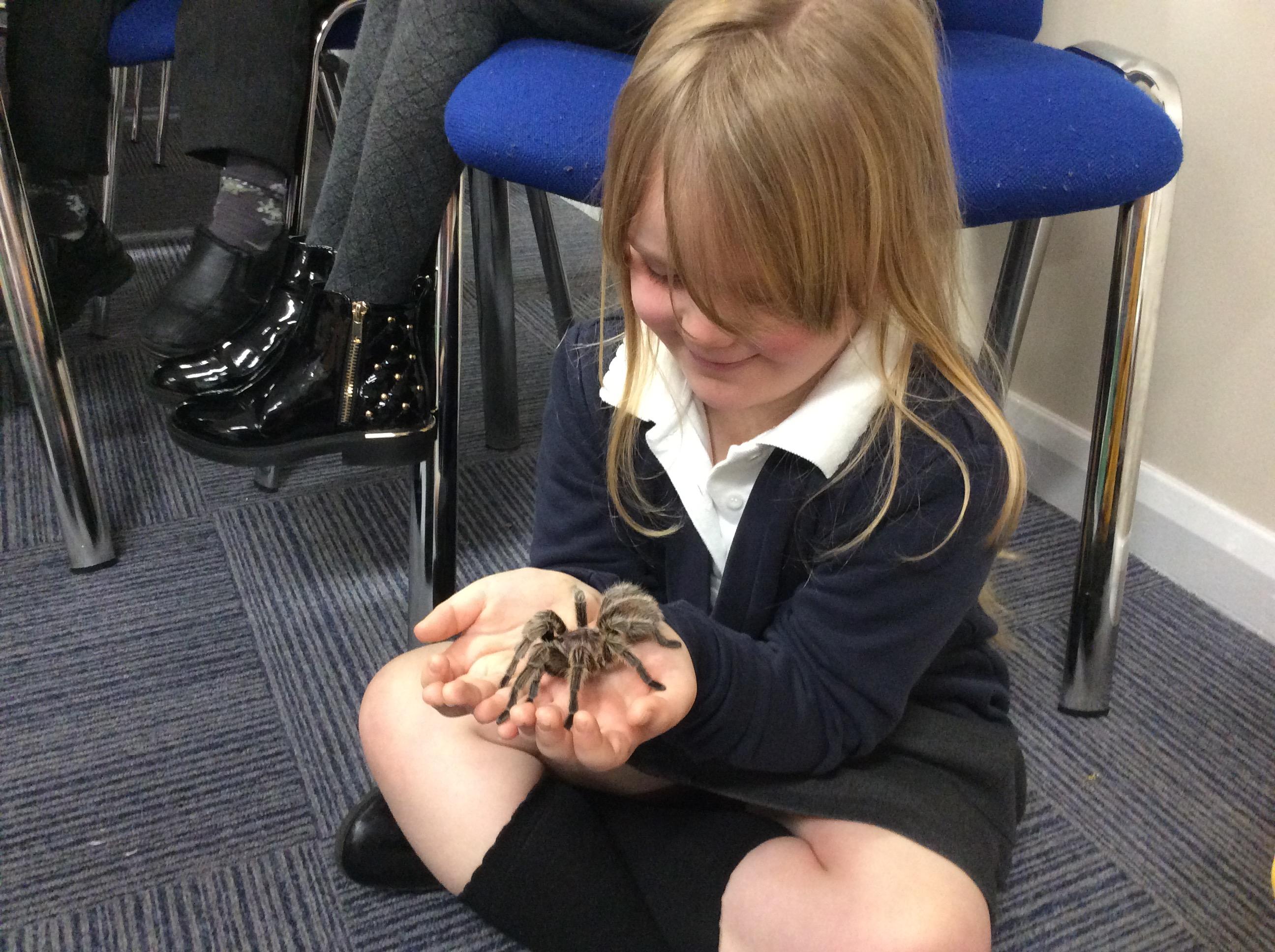 On Wednesday the children were introduced to some different animals that had been brought in by Animalsukltd.co.uk. These included a Burmese python, tarantula, dessert fox and a little owl. Some of the children were a little nervous about meeting the animals, however we had lots of brave children who decided to hold or touch the animals anyway, including Ms Richardson who held a tarantula for the first time.