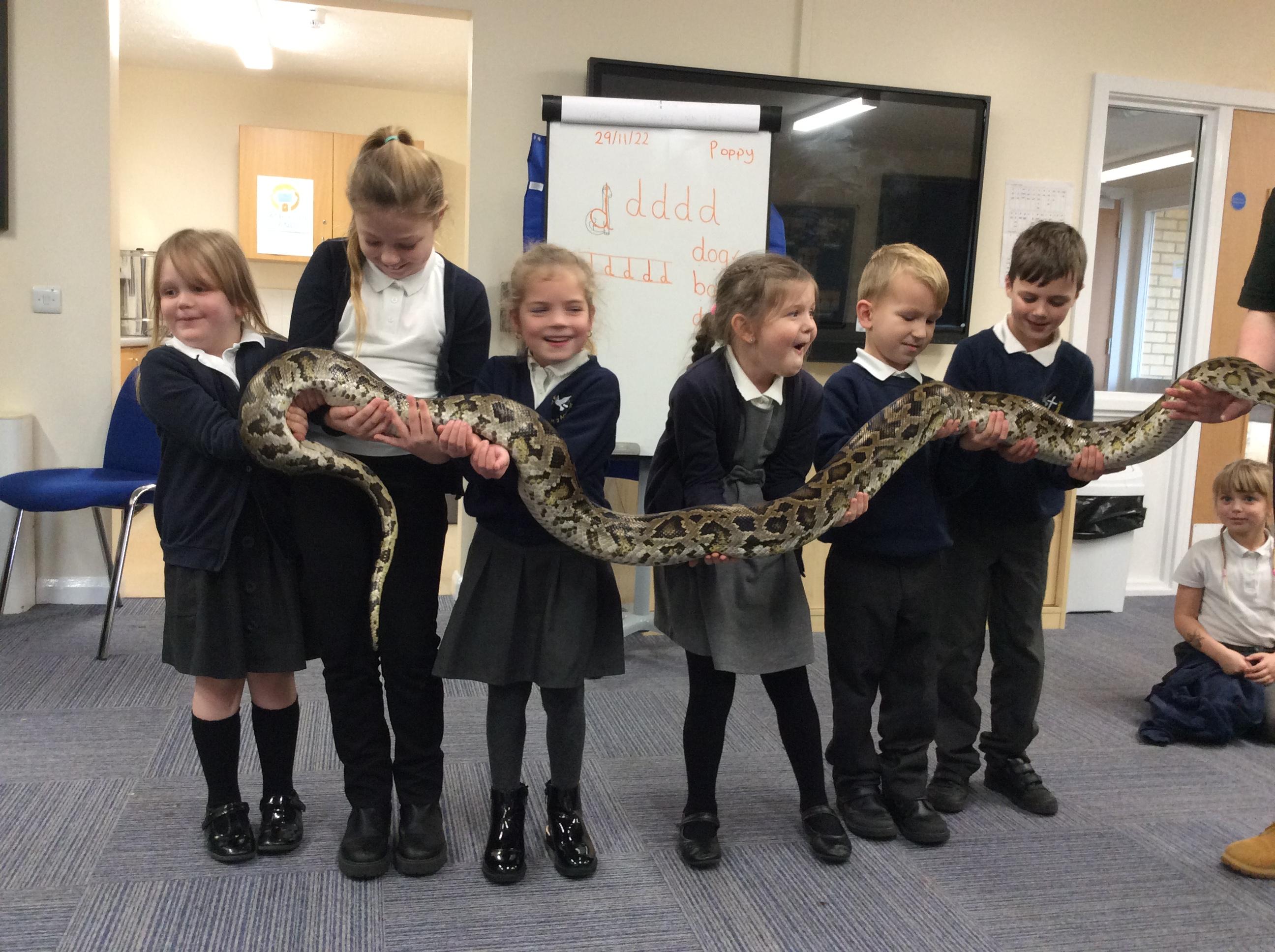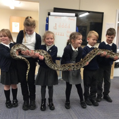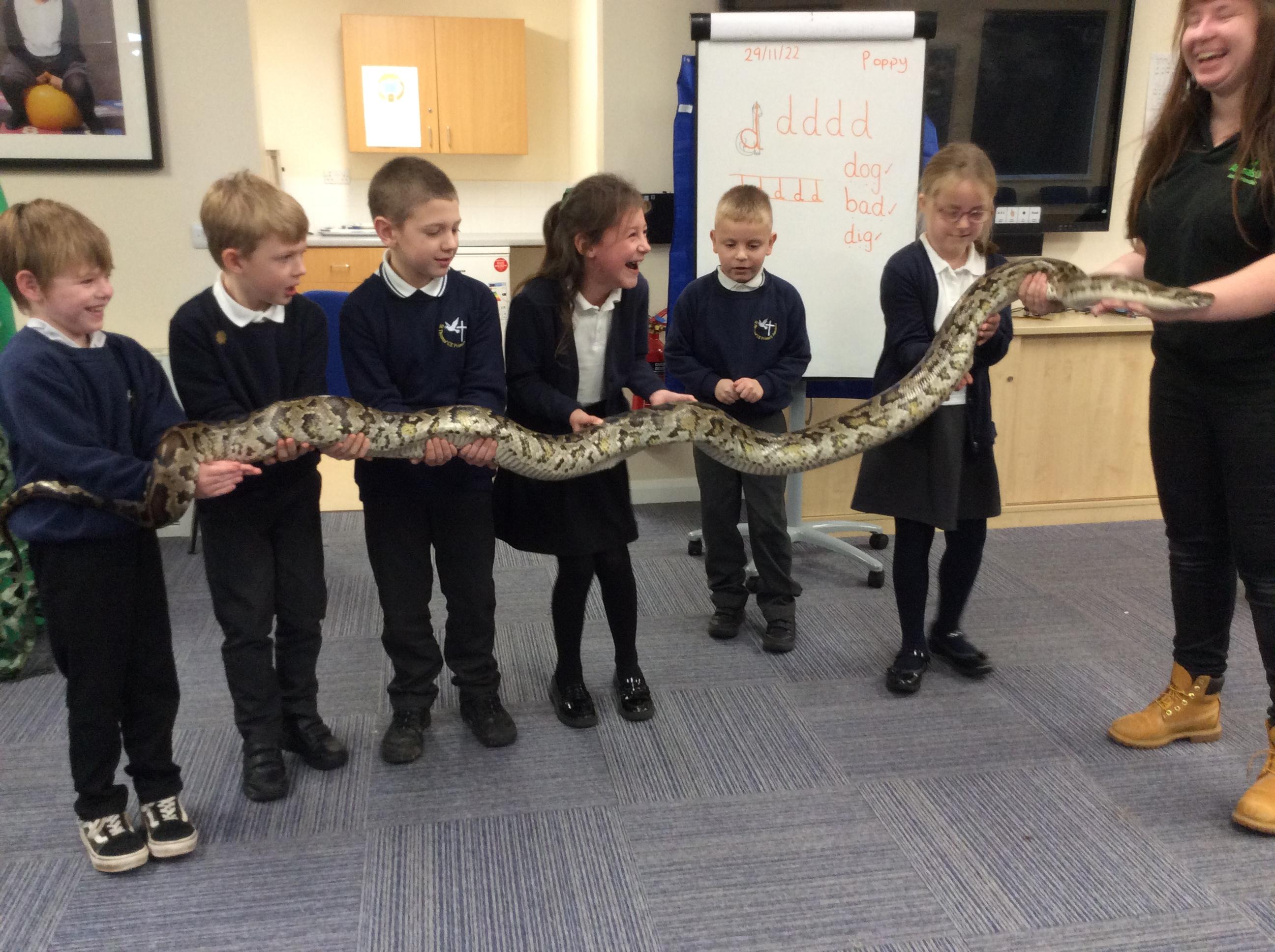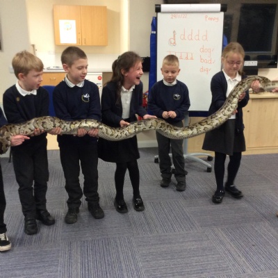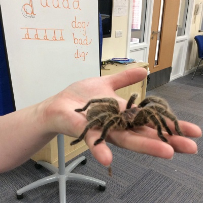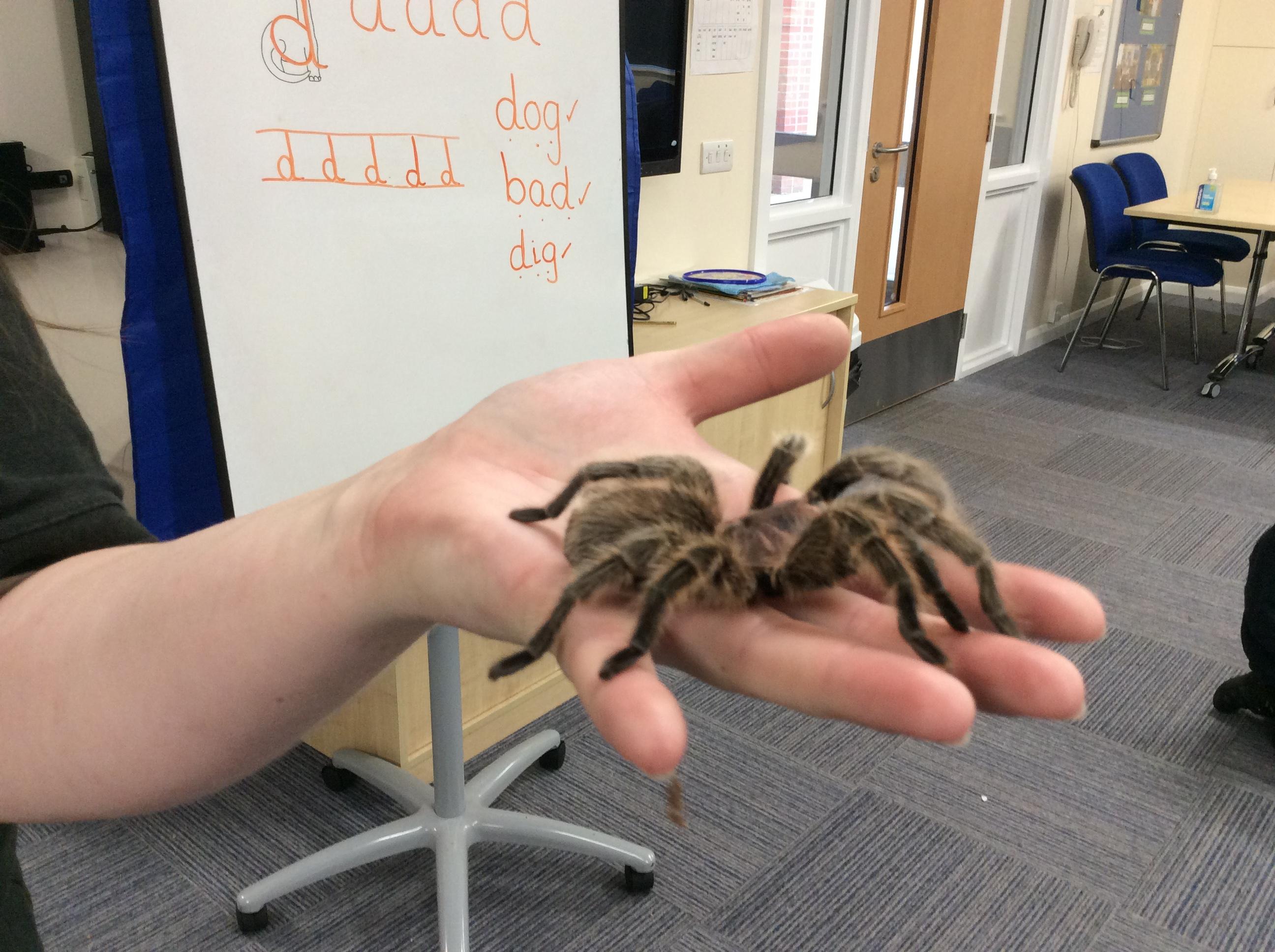 On Wednesday the children were introduced to some different animals that had been brought in by Animalsukltd.co.uk. These included a Burmese python, tarantula, dessert fox and a little owl. Some of the children were a little nervous about meeting the animals, however we had lots of brave children who decided to hold or touch the animals anyway, including Ms Richardson who held a tarantula for the first time.