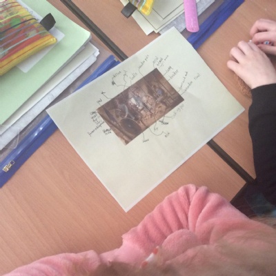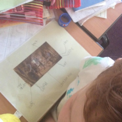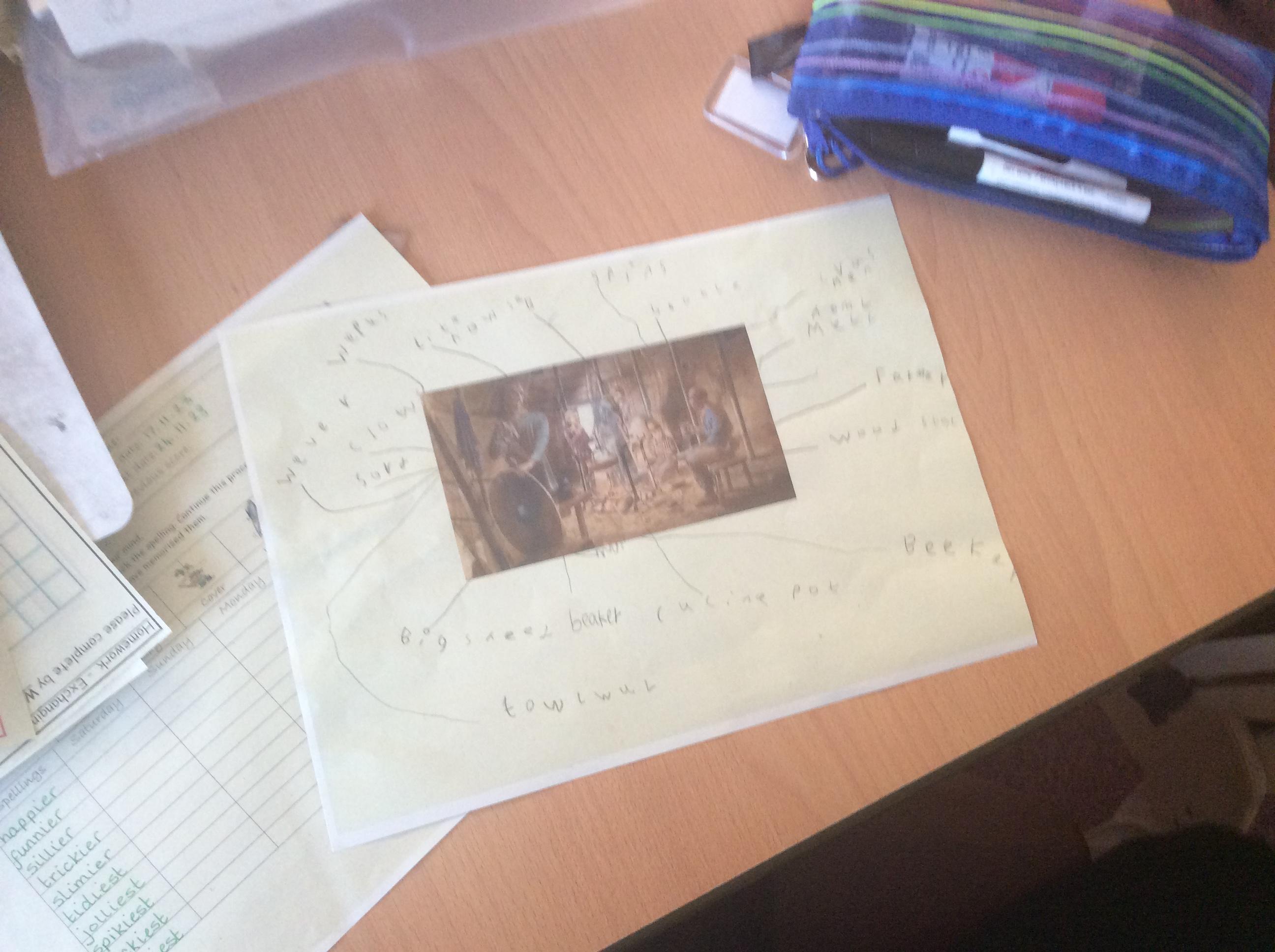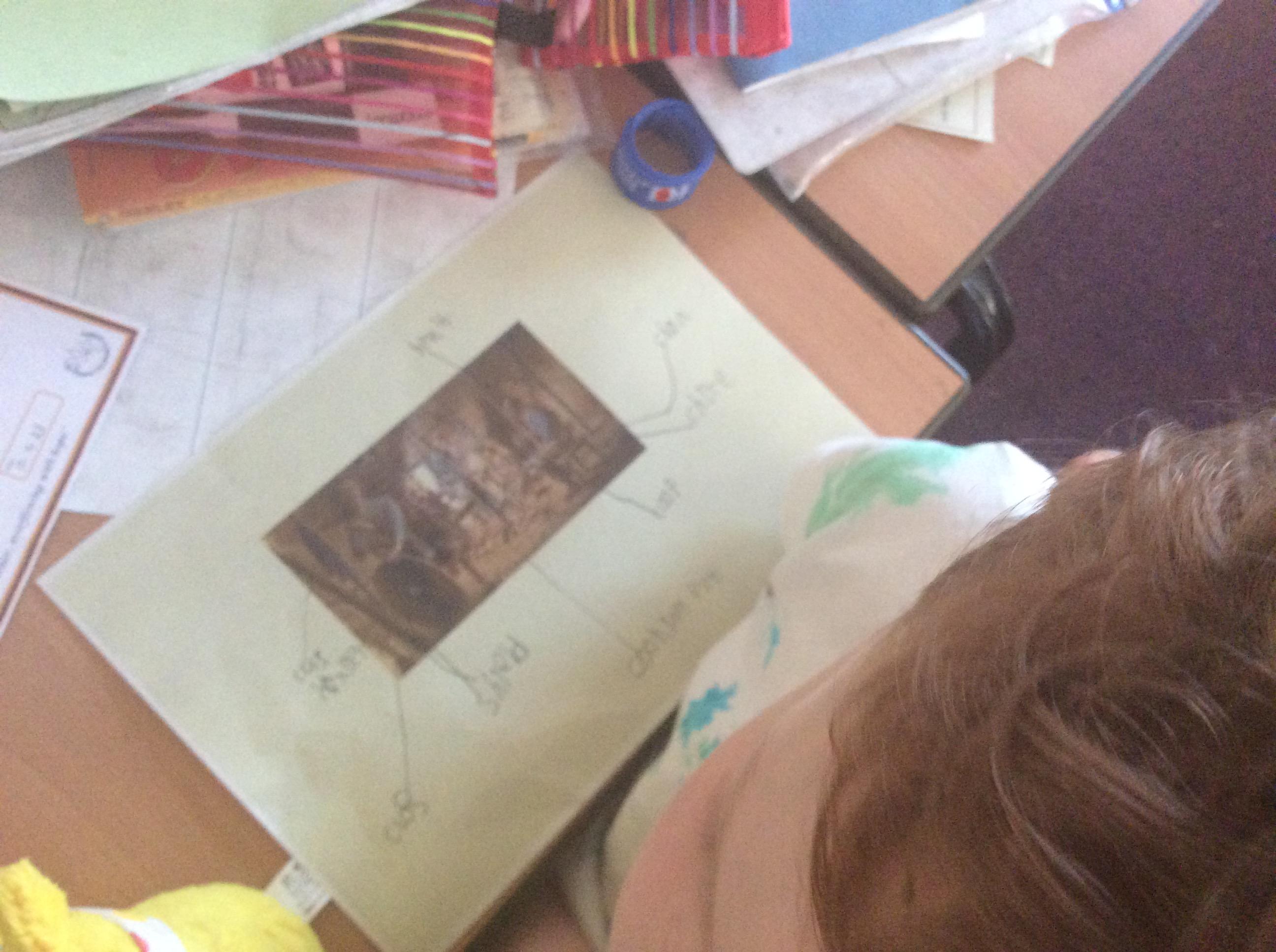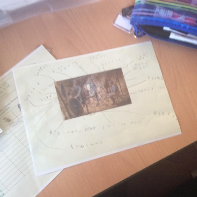Looking at an artists impression of an early home, children identified objects in the image. This allowed lots of discussion about who made the items and how they were made. Using our knowledge from the last lesson, we knew they had begun to trade because of the beakers found in the early graves. We began to identify some of the early jobs people did and how this contributed to society and early trade.