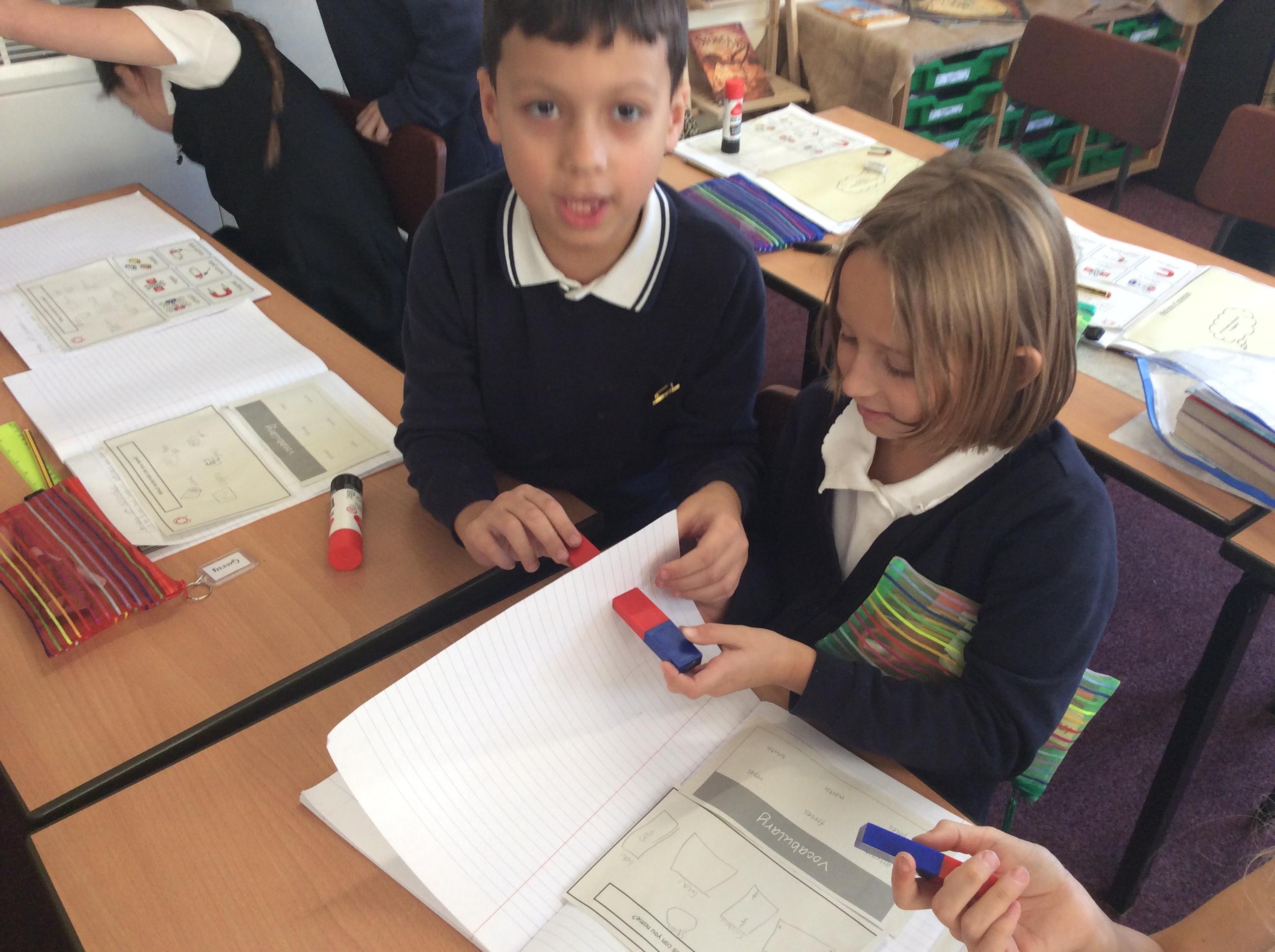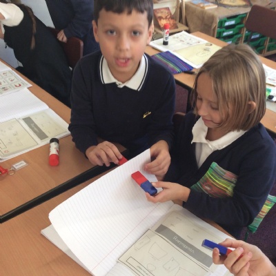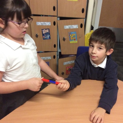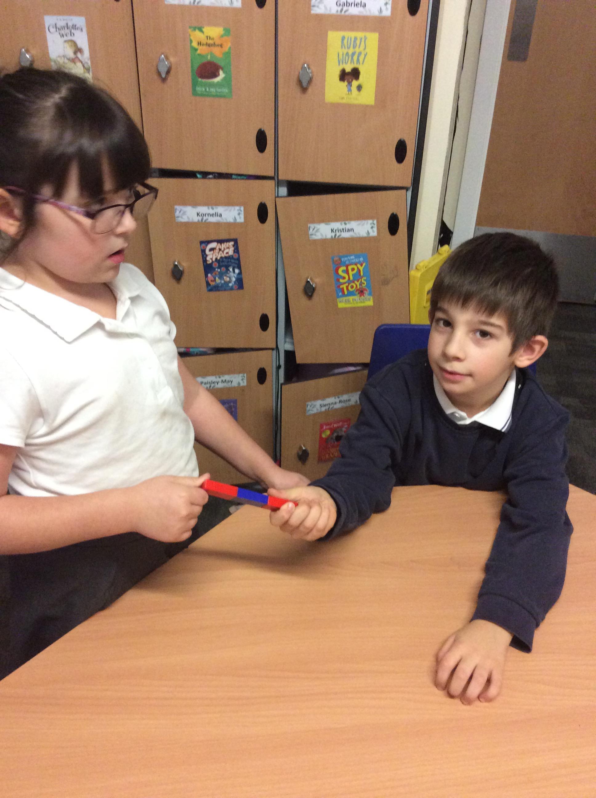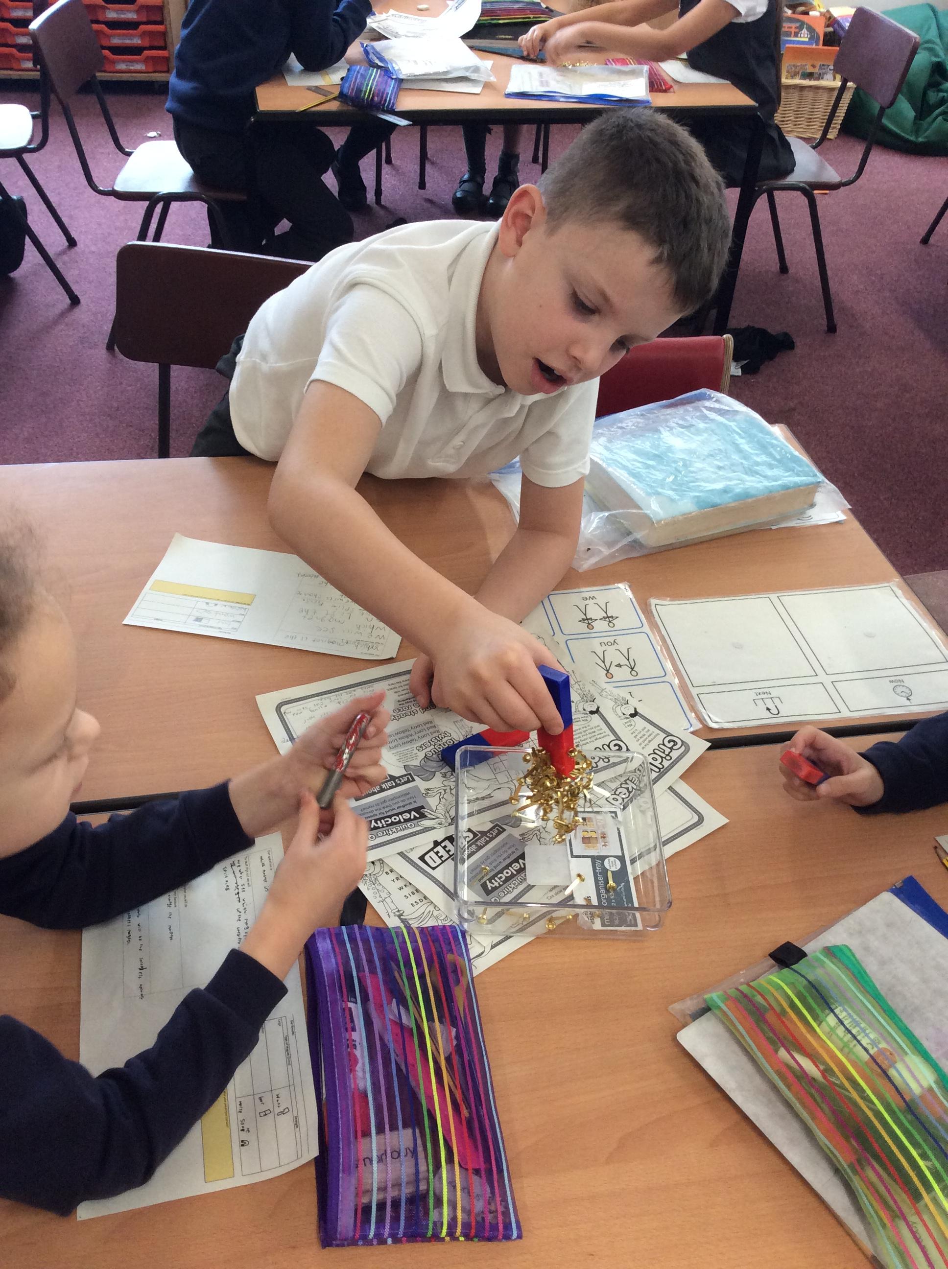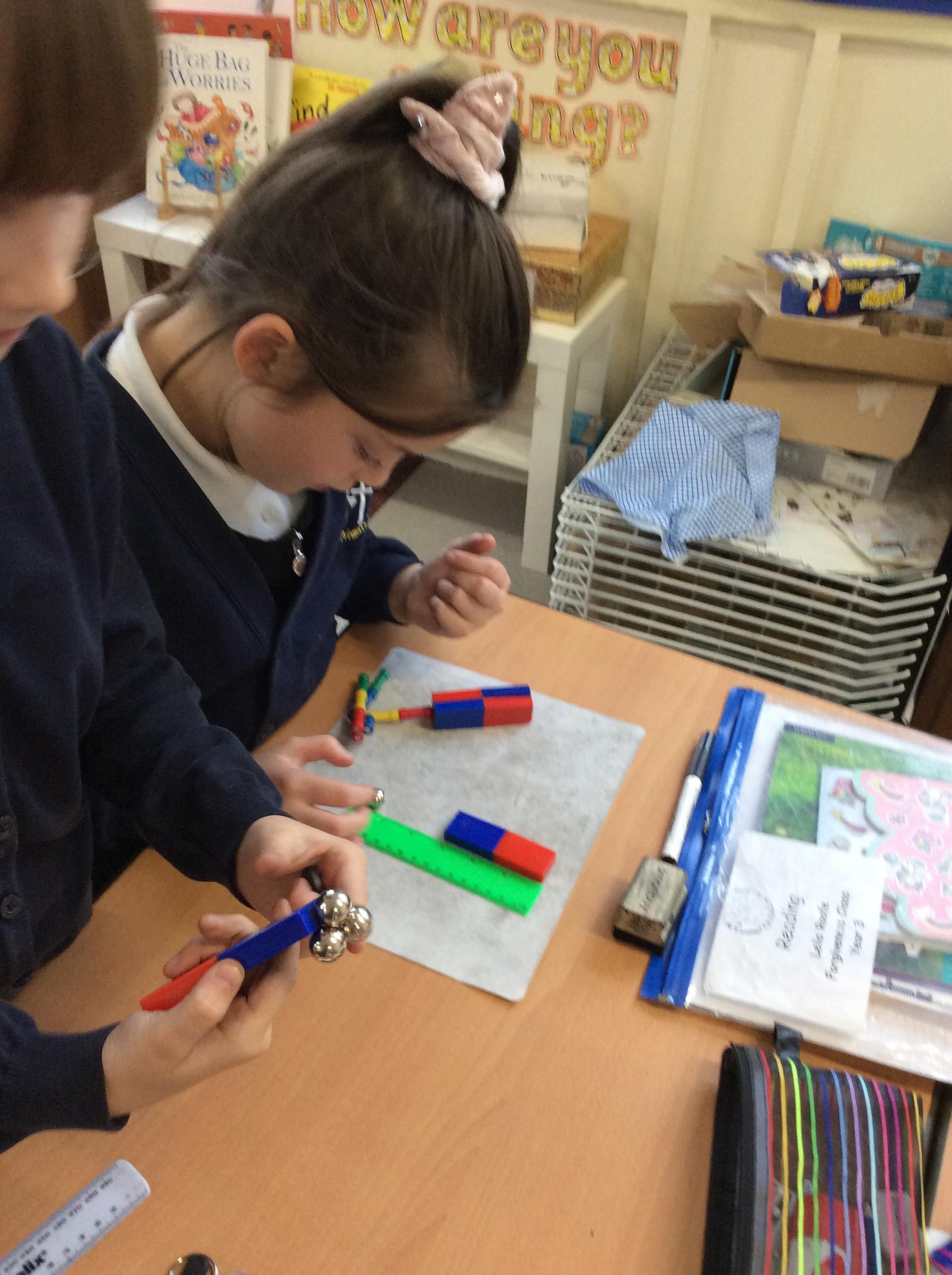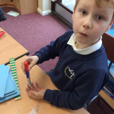 To begin, we explored what magnets do and how they work. This built on early exploration of magnets in EYFS. We were able to identify the forces of attract and repel and make observations about how they interacted with each other.