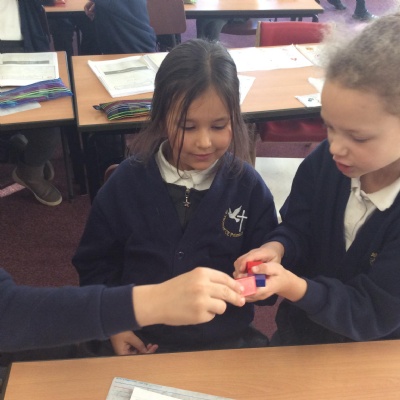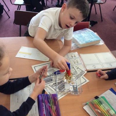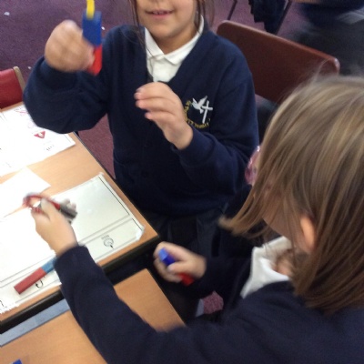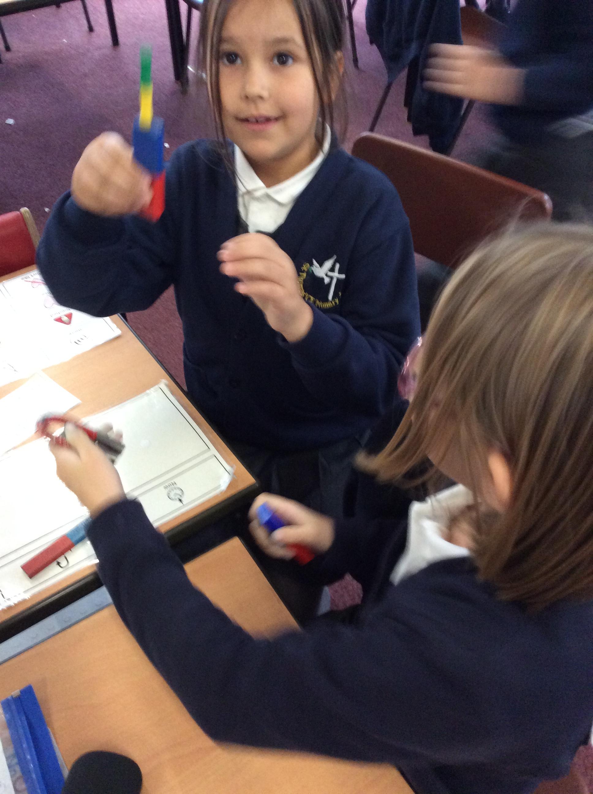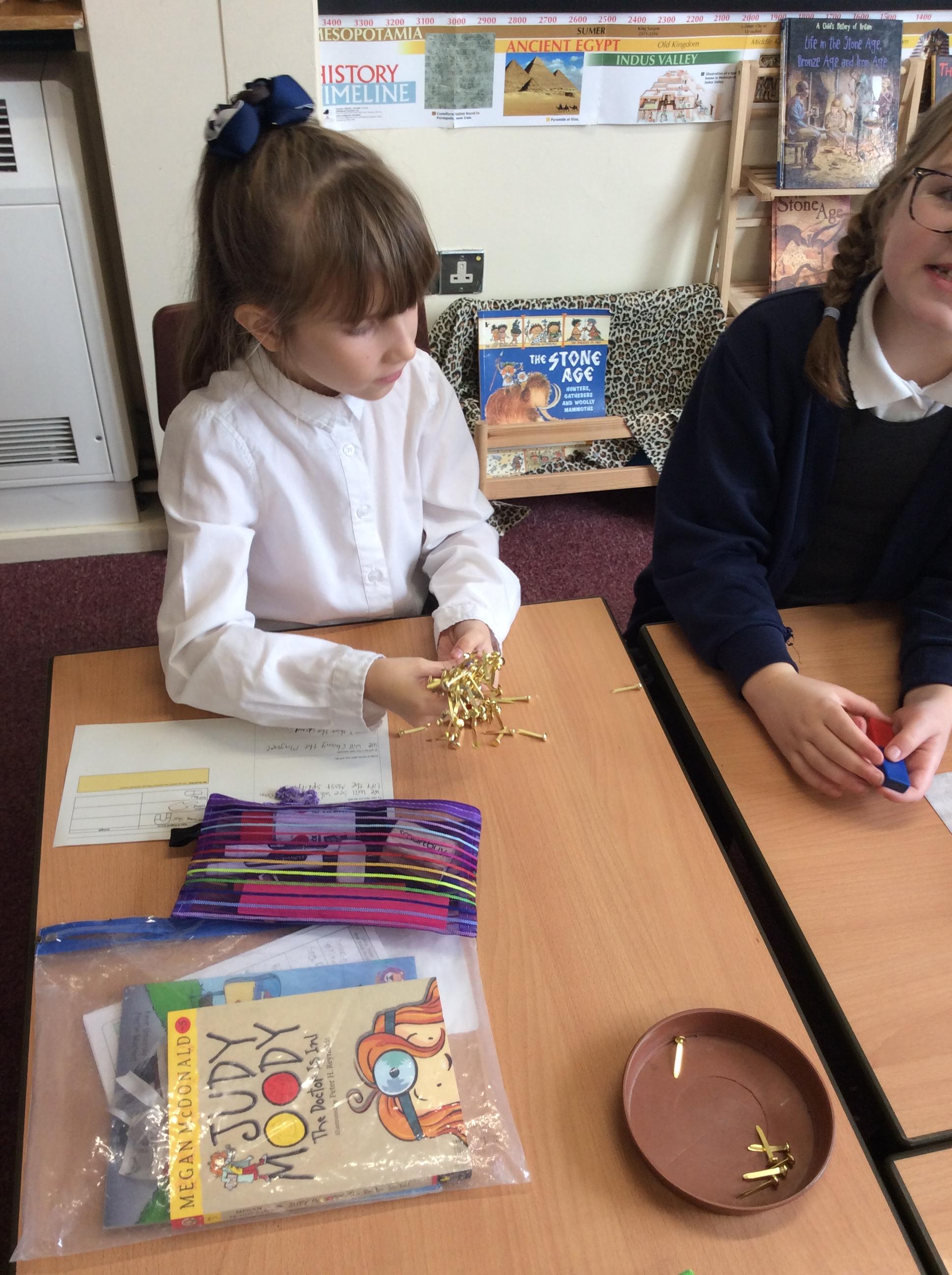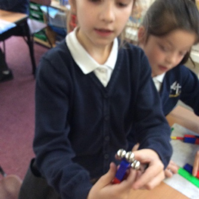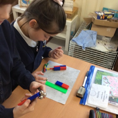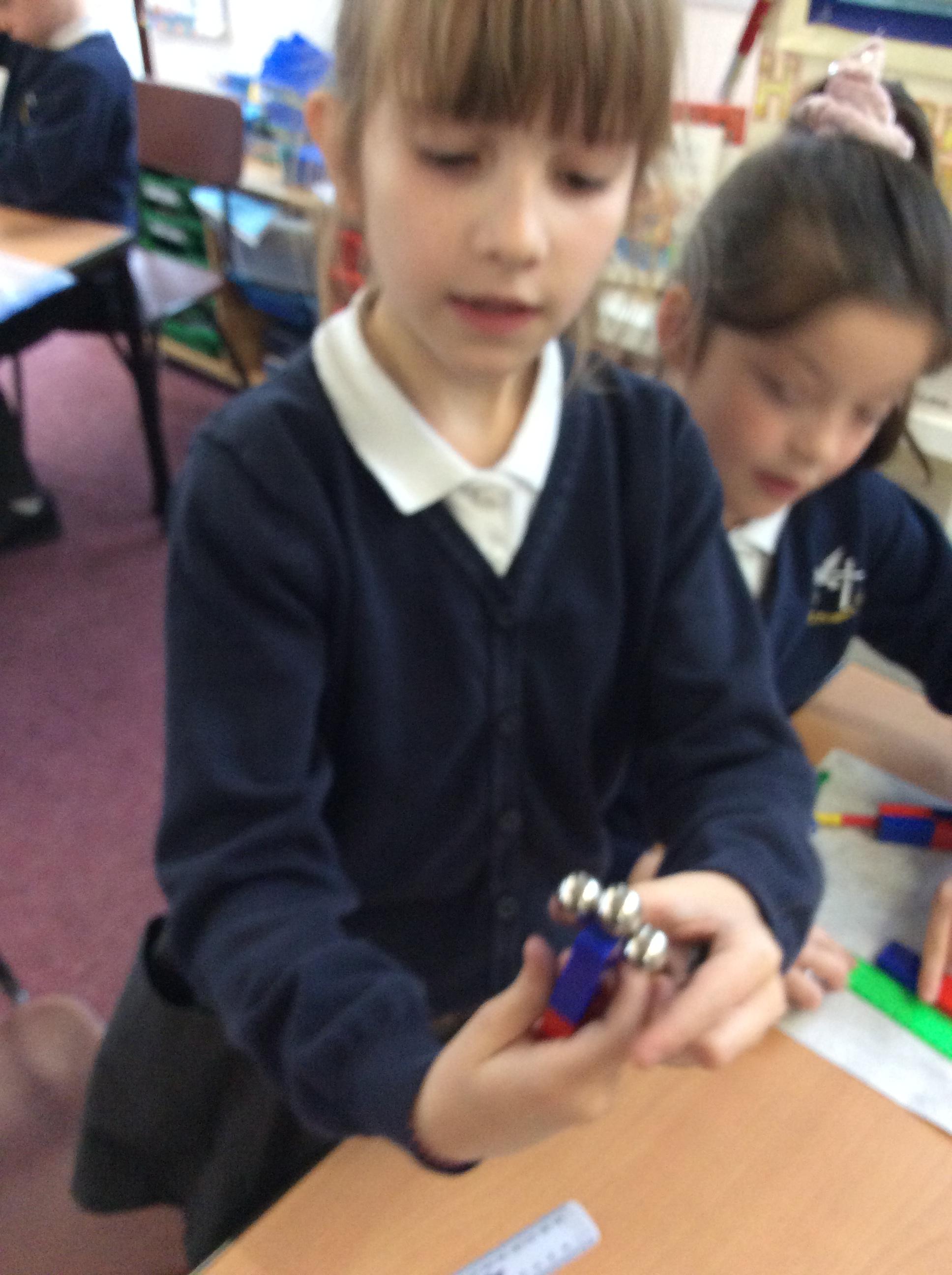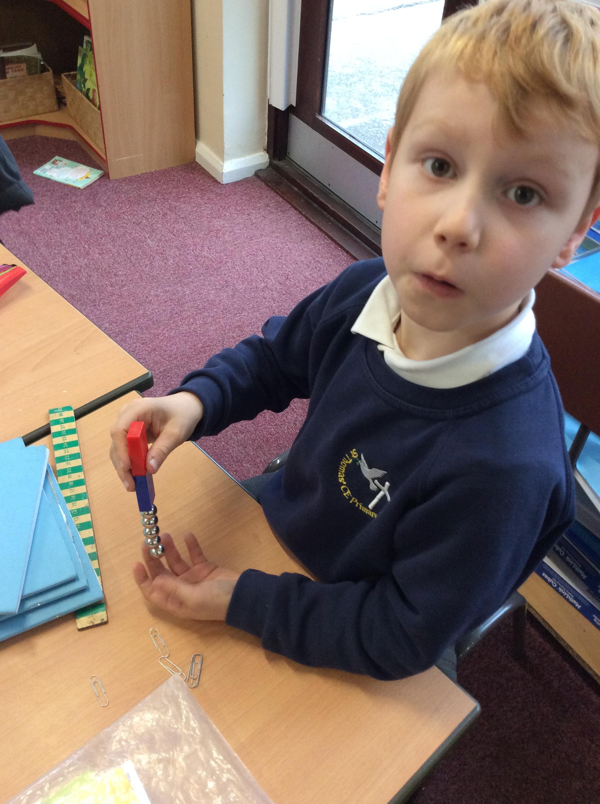 To begin, we explored what magnets do and how they work. This built on early exploration of magnets in EYFS. We were able to identify the forces of attract and repel and make observations about how they interacted with each other.