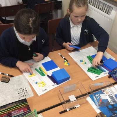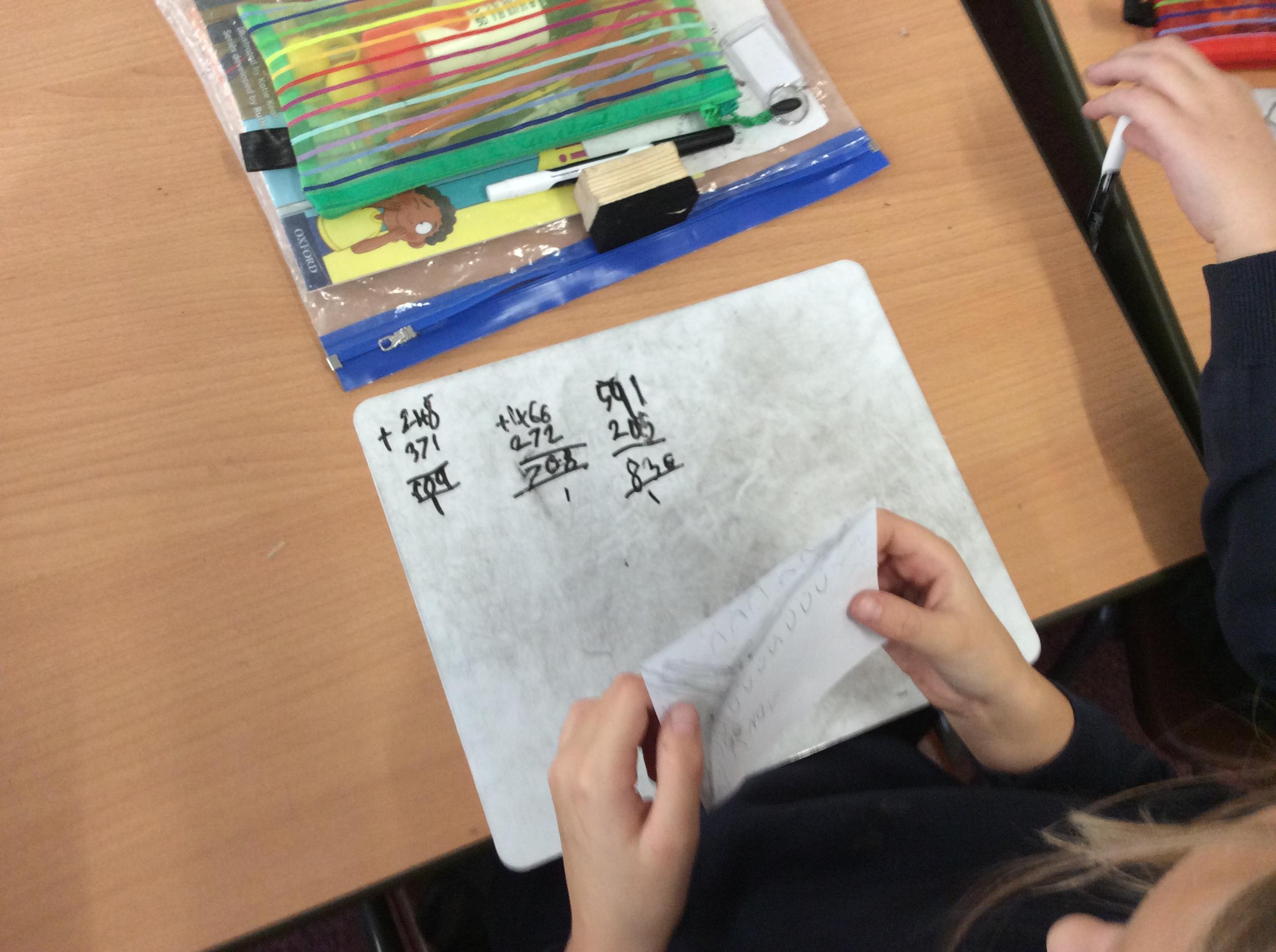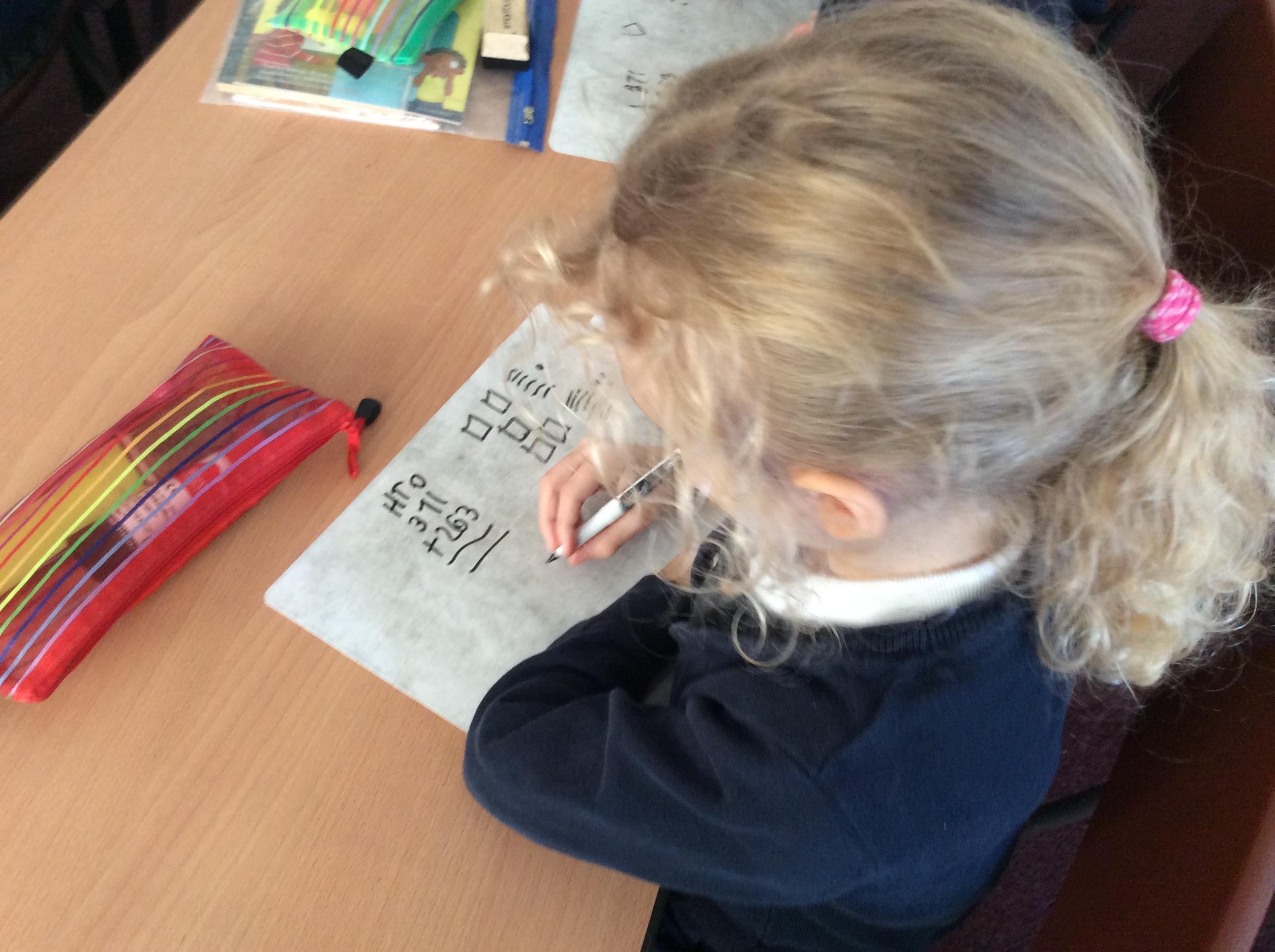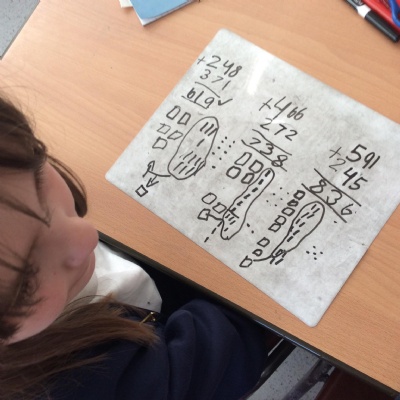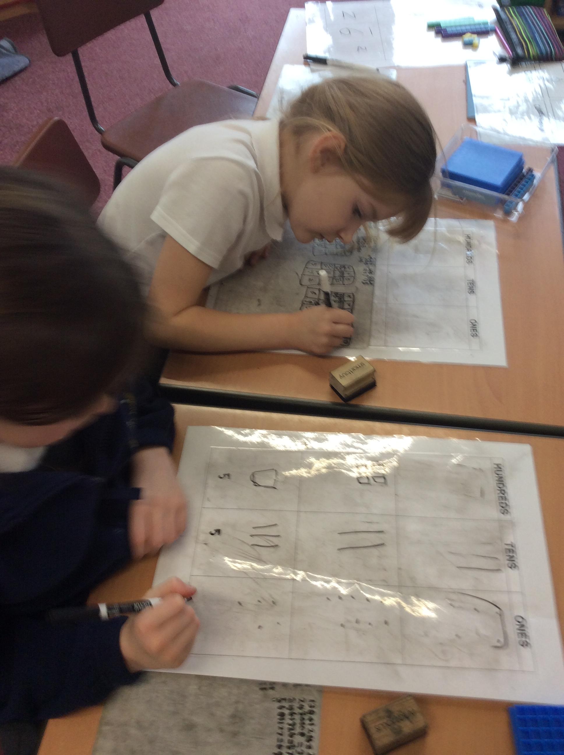 Using dienes and counters, we were able to make 3 digit numbers and find the total of two of them. Knowing we must start with the ones each time, then the tens and hundreds, we asked ourselves the question, 'Do we need to make an exchange?' each time.