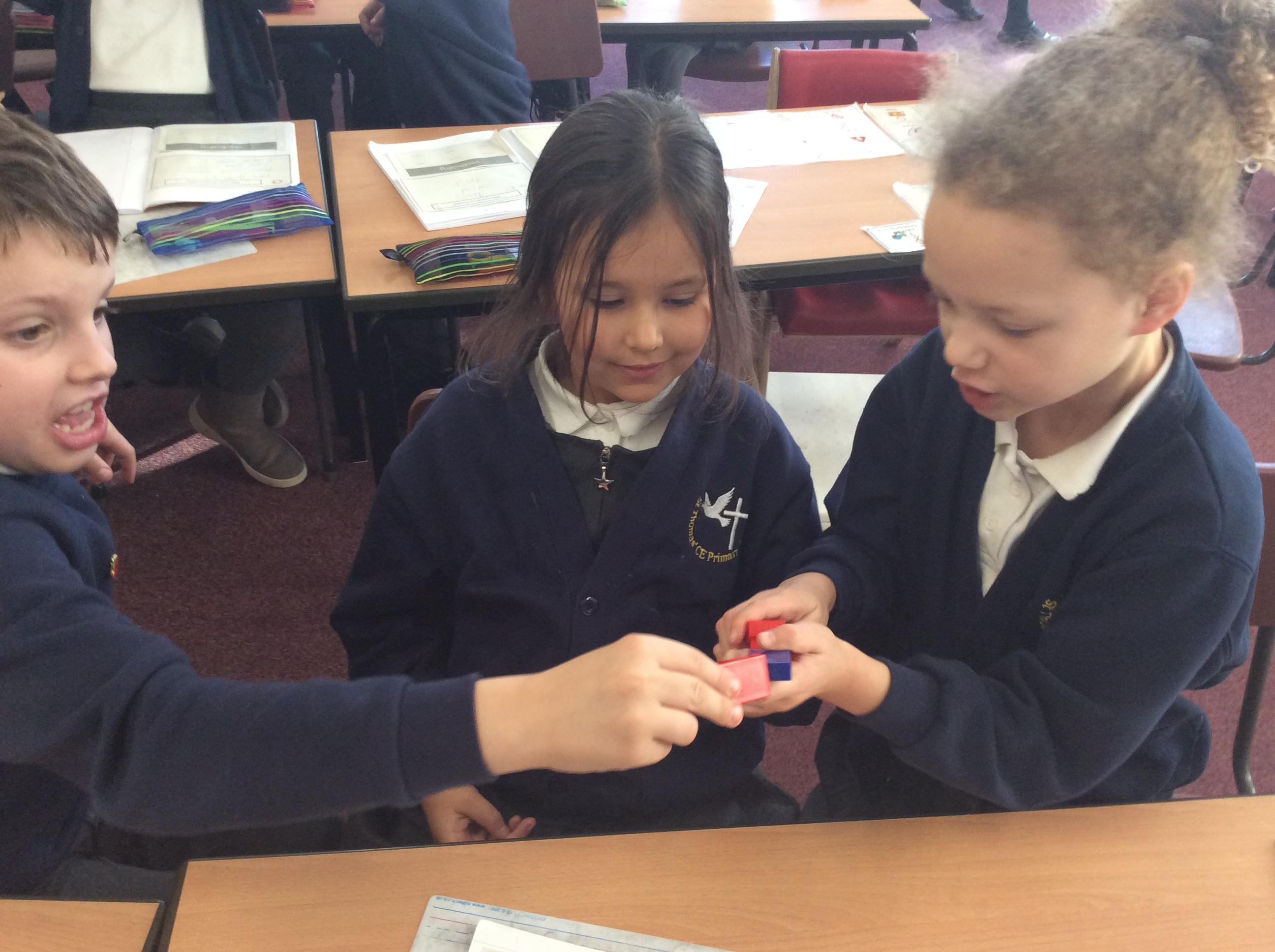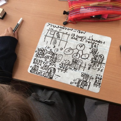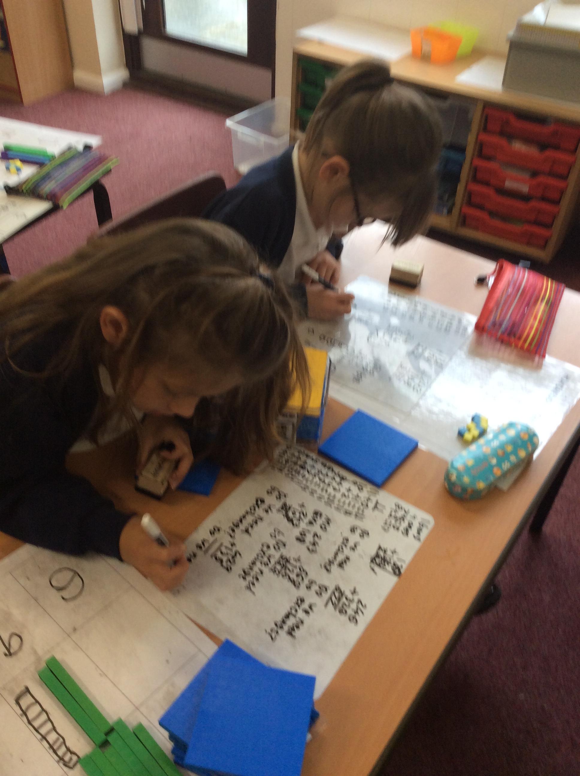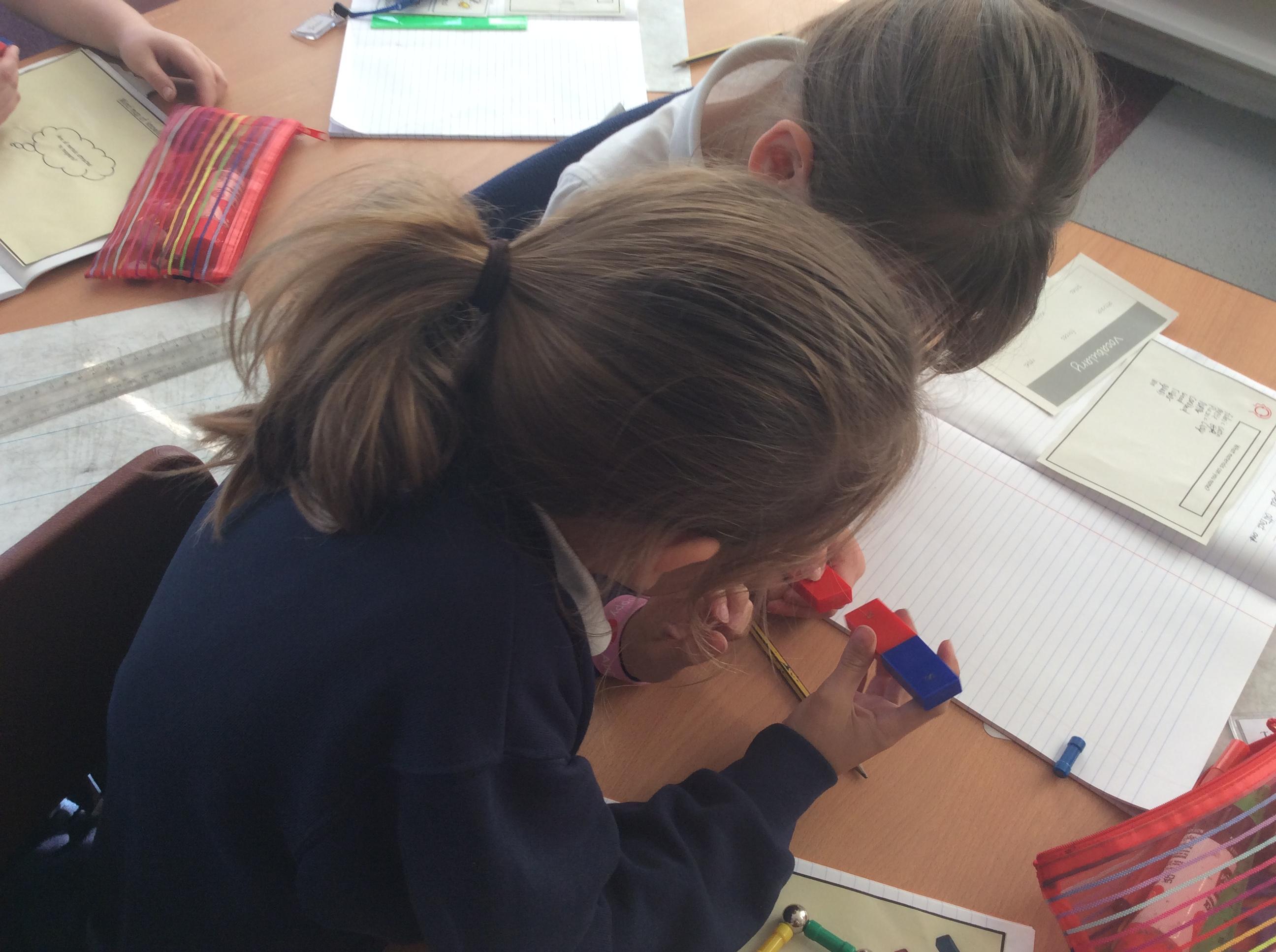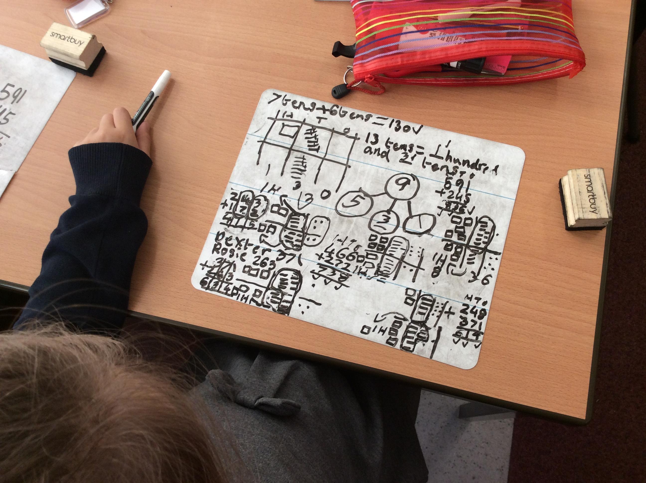 Using dienes and counters, we were able to make 3 digit numbers and find the total of two of them. Knowing we must start with the ones each time, then the tens and hundreds, we asked ourselves the question, 'Do we need to make an exchange?' each time.