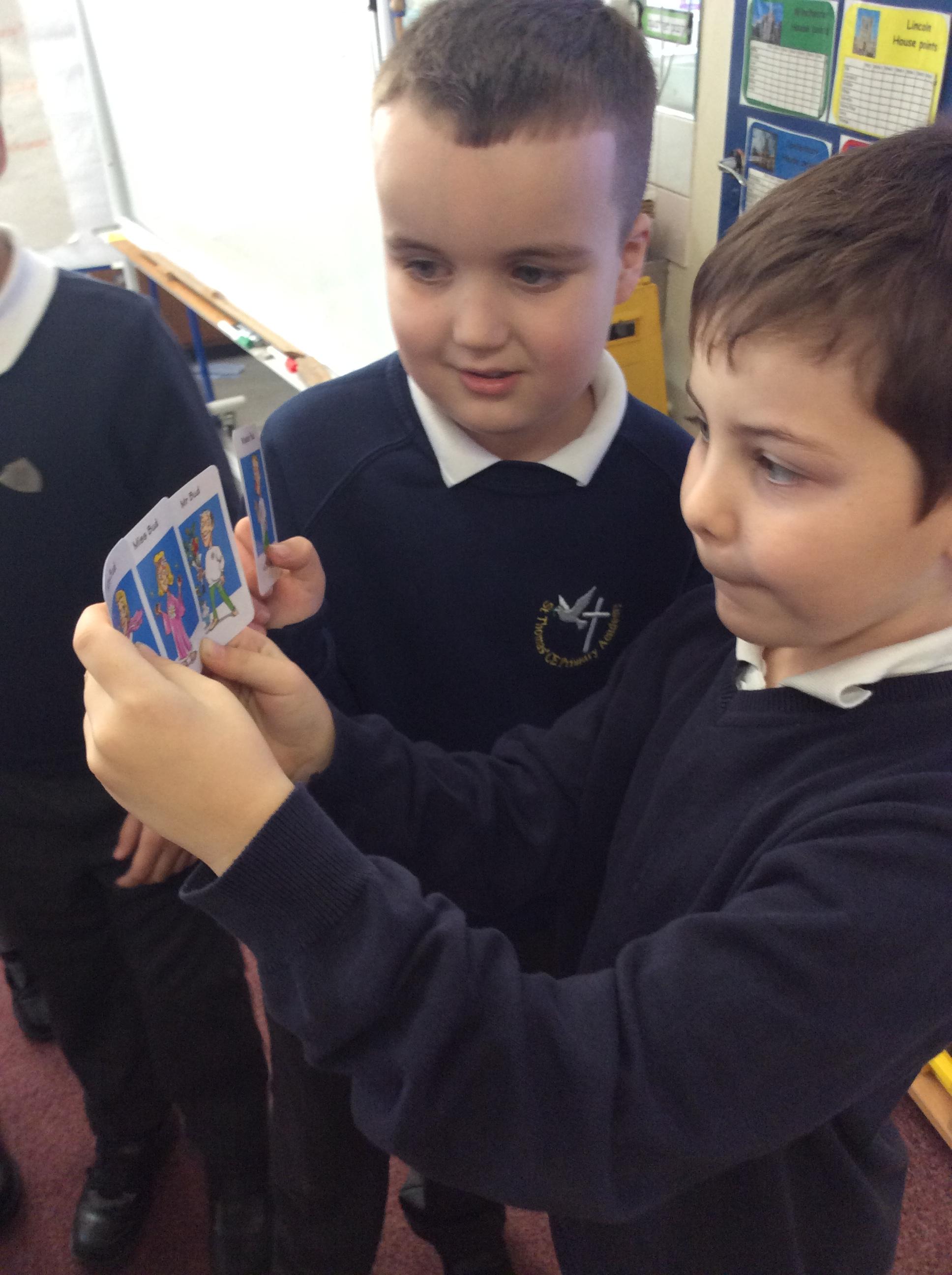 In French, we began by learning how to introduce ourselves when asked. We then played a game of happy families, introducing ourselves to each other to try and find our other family members.