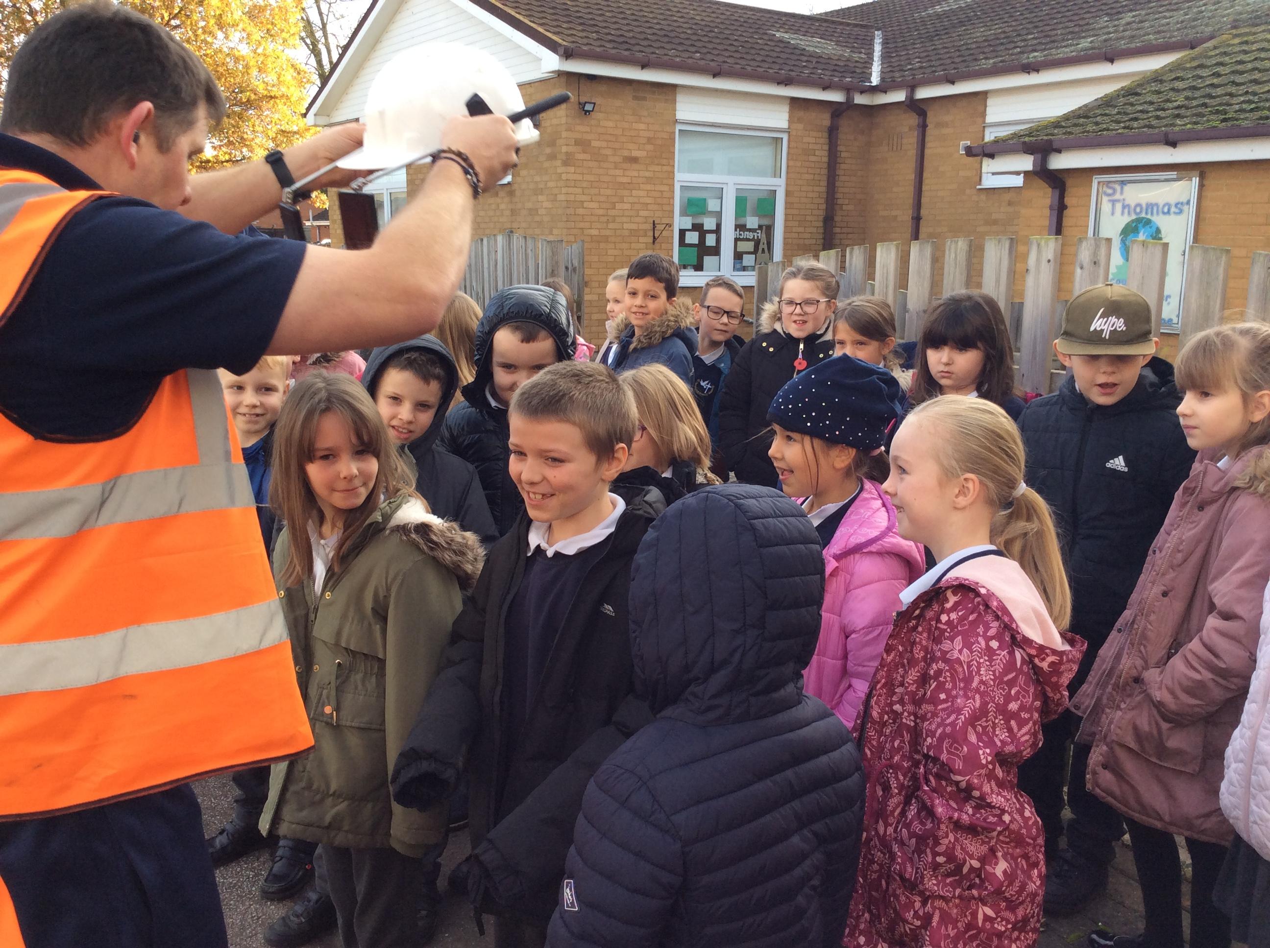 A visit from a lorry and its driver started our road safety week off well! Learning about the view he has from high up in his lorry and how we need to keep ourselves safe when close to them, along with how long it takes for a lorry to stop in different weathers has given us lots of vital information.