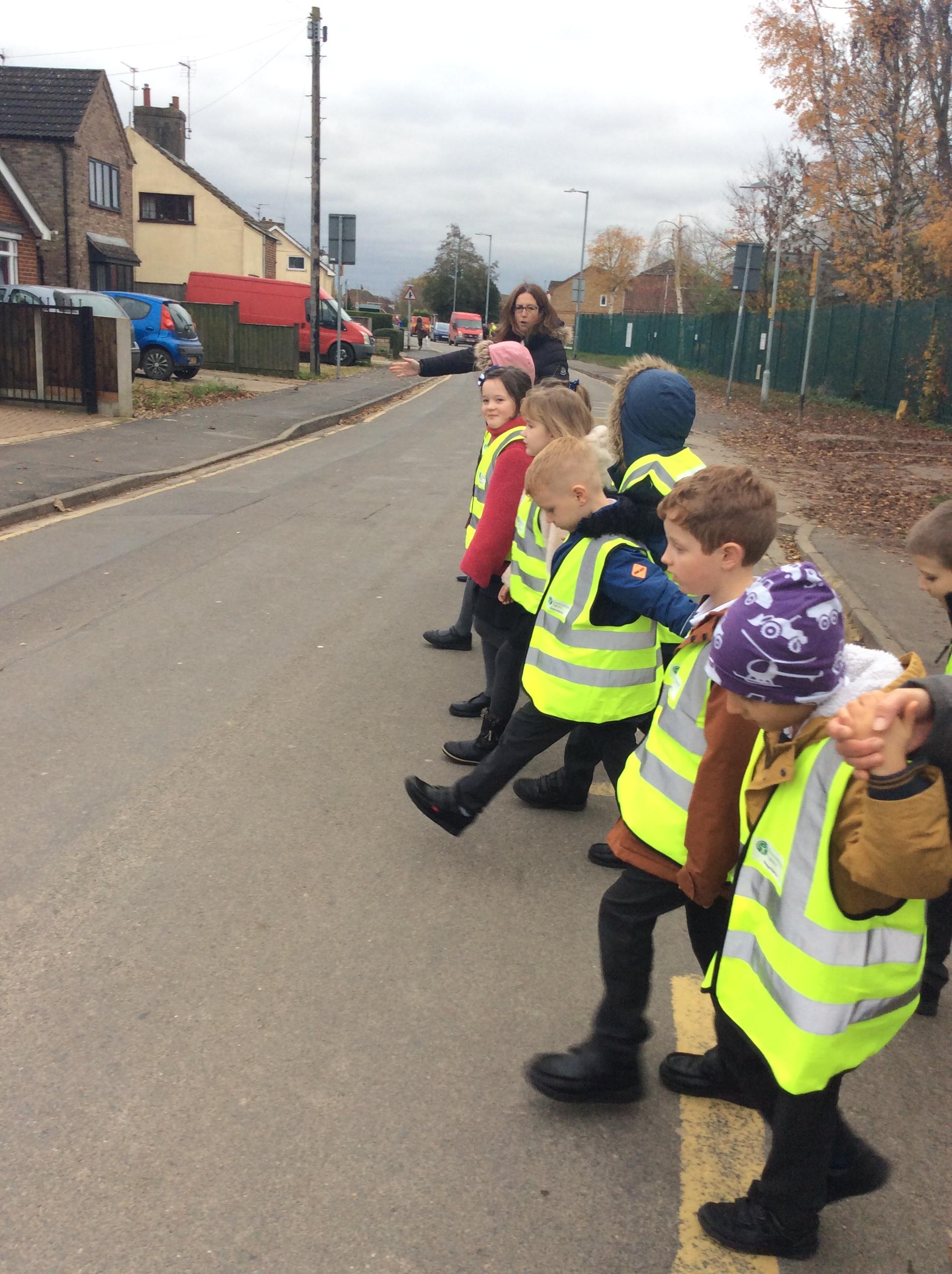 This week we were able to retrieve our knowledge of crossing the road from year 1 and 2. We had all remembered where to stand to cross safely if there is no zebra or pelican crossing. Walking straight across the road, we looked left and right while we were doing so in order to keep ourselves safe.