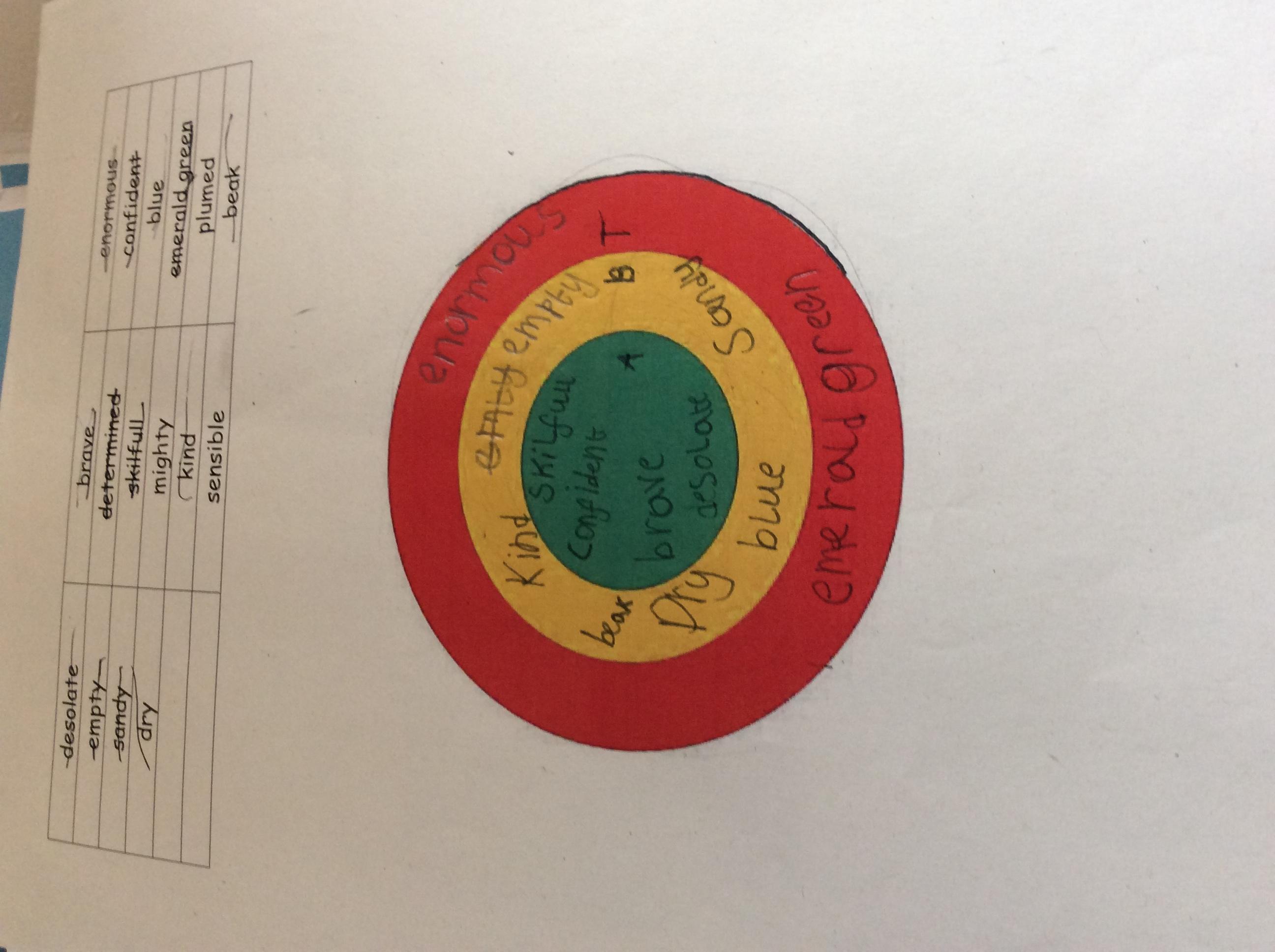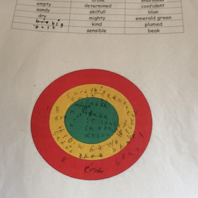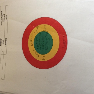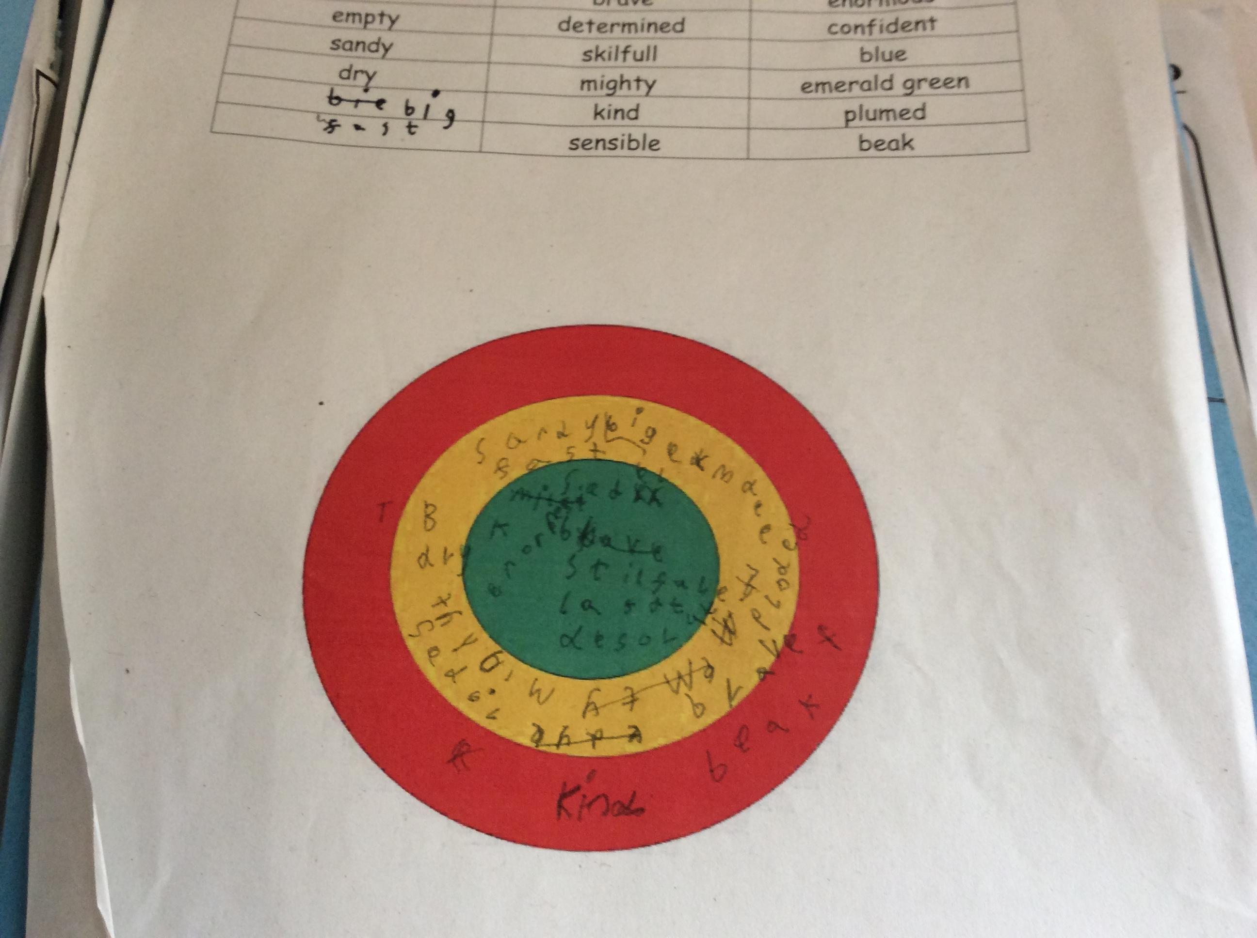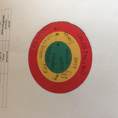 Exploring vocabulary, we were able to identify key words that would have an impact on the reader of our short stories. Those with greater impact we added to the centre of our targets.
