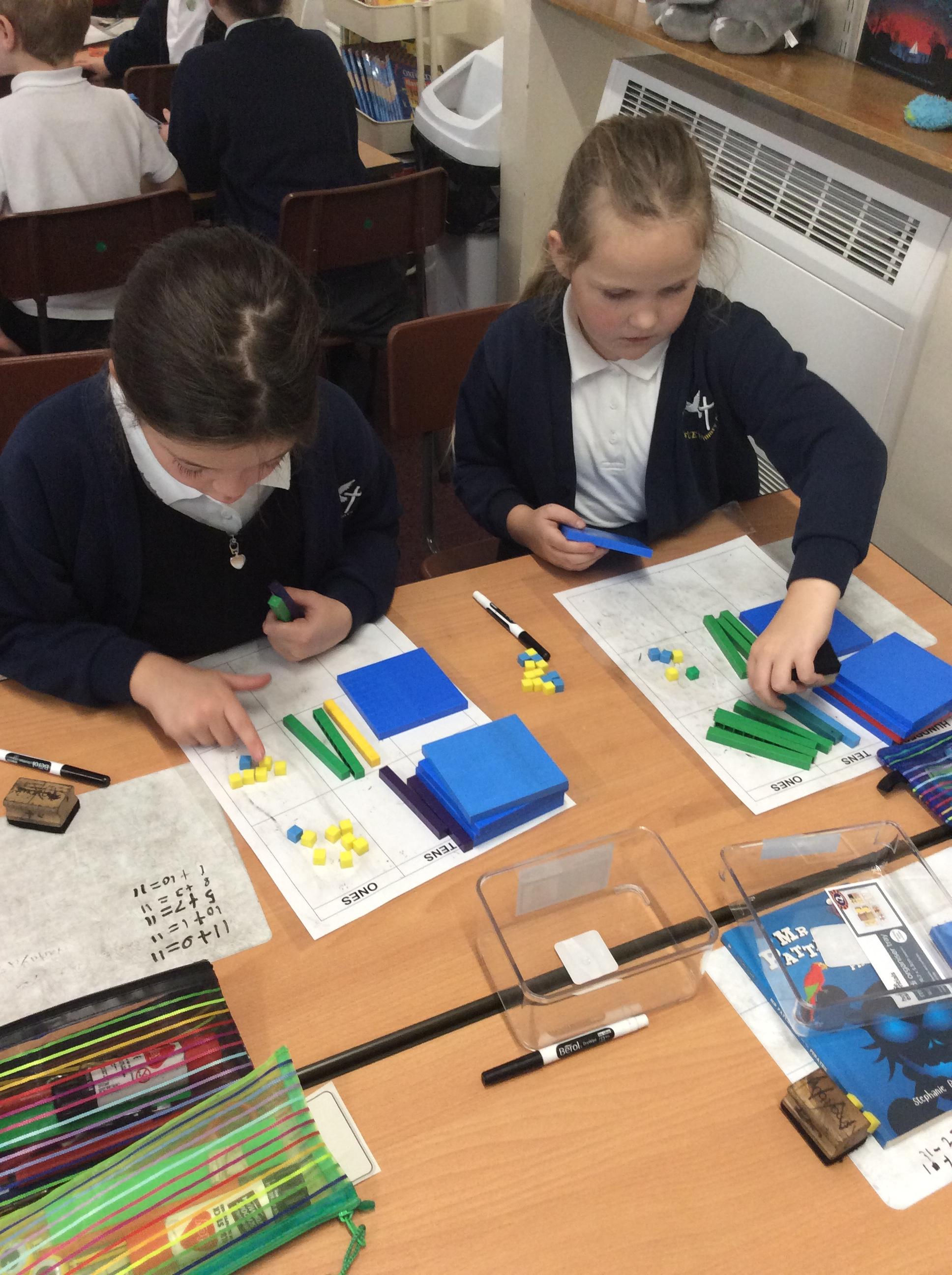 Understanding the key skills of addition and subtraction, we consolidate the column method and the exchanges needed. Using manipulatives we have rehearsed making the exchanges of ten ones for a ten or ten tens for a hundred.