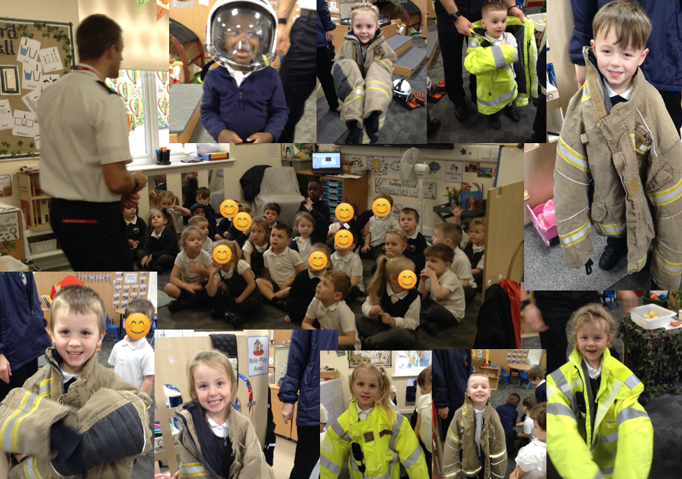 Reception were very lucky to have a visit from Boston fire department this week. The firefighters brought their fire engine with them but within minutes of being at school they were radioed through and needed to attend an emergency. We spoke about the importance of their job and with help from Mr Hubbert we tried on some of their uniform.