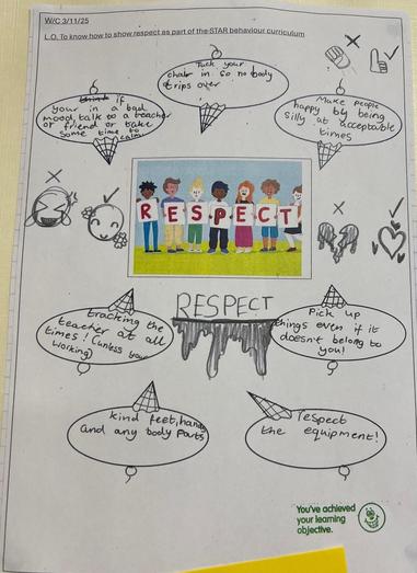 This week we focussed on the term Respect. We had fantastic discussions about what it means and how we would see respect being demonstrated in all areas of our day.