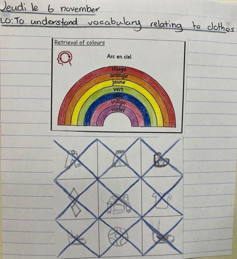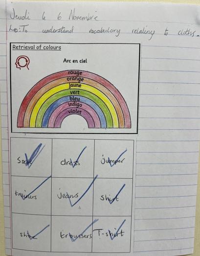 To begin our new unit, we explored our new vocabulary about items of clothing, with a game of Bingo. We all thoroughly enjoyed playing the game and can now recognise items of clothing in French.