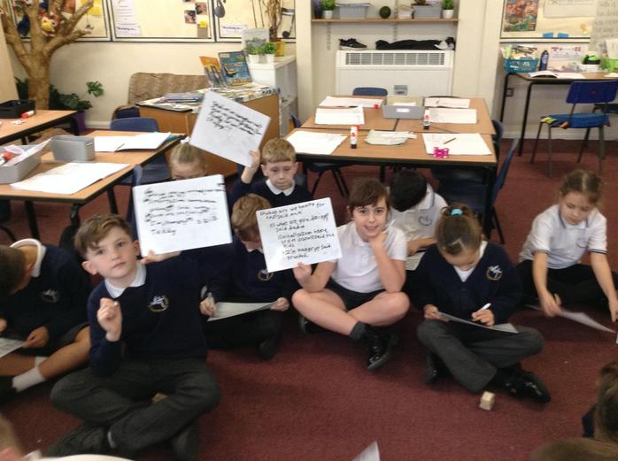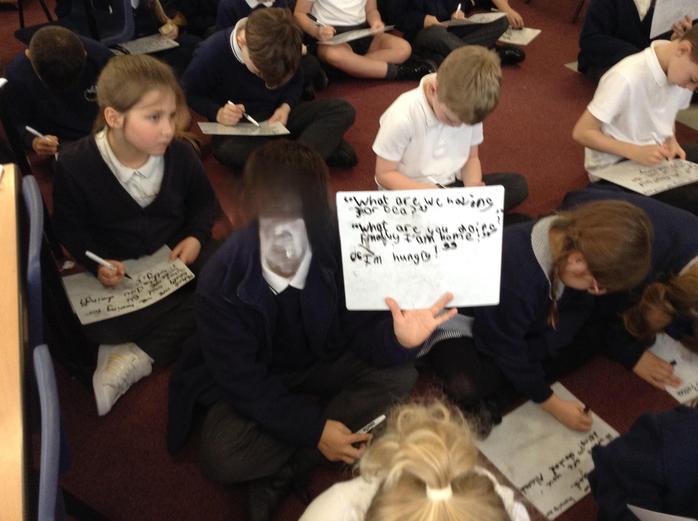 Before we applied our learning of inverted commas into our stories linked to the Croods, the children learnt a rhyme and then rehearsed examples on wipe boards. We are excited to see speech included in their writing soon.