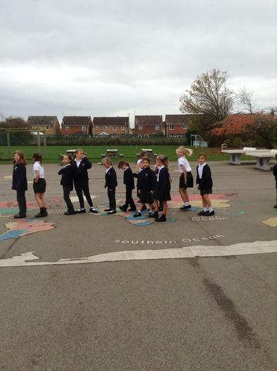 To support the children learning about the eight points of a compass, the children played games outside running to the correct point of the compass. As the confidence grew, they then took over the role of directing each other too.