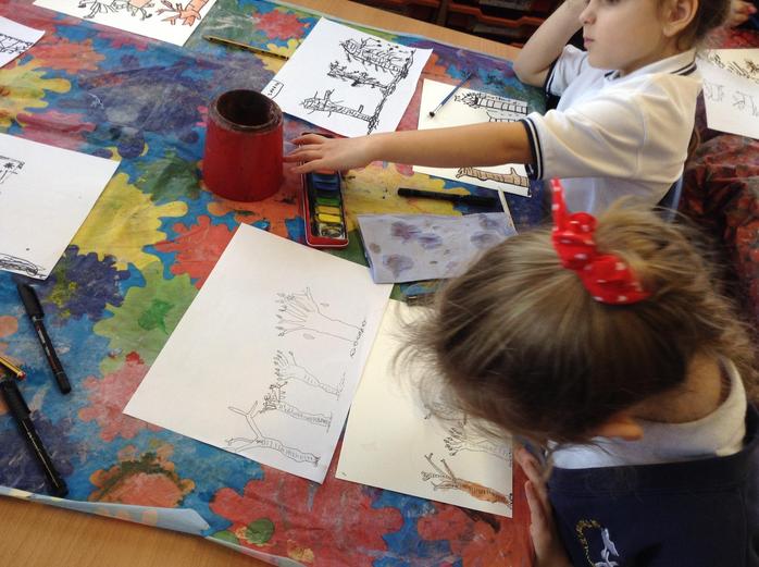 As part of our art skills, we have been exploring the illustrations of Charlie Mackesy and focusing on the thin and thick lines that he used. Then we added water colours to it.