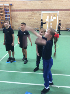 The class have been developing their control when bouncing, passing and shooting in basketball. They have learnt to spread their hands on the ball, step when they move and bend their arms before releasing the ball to shoot.