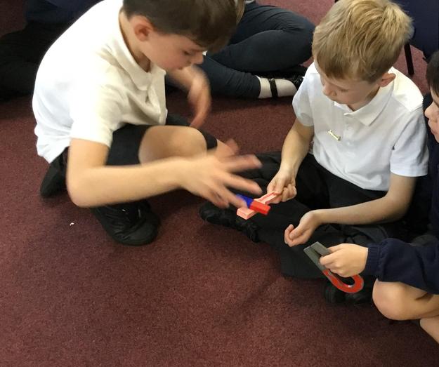 Today in Science, we looked at how magnets worked. We learnt that they attract and repel. There is a force pushing or pulling the magnets.