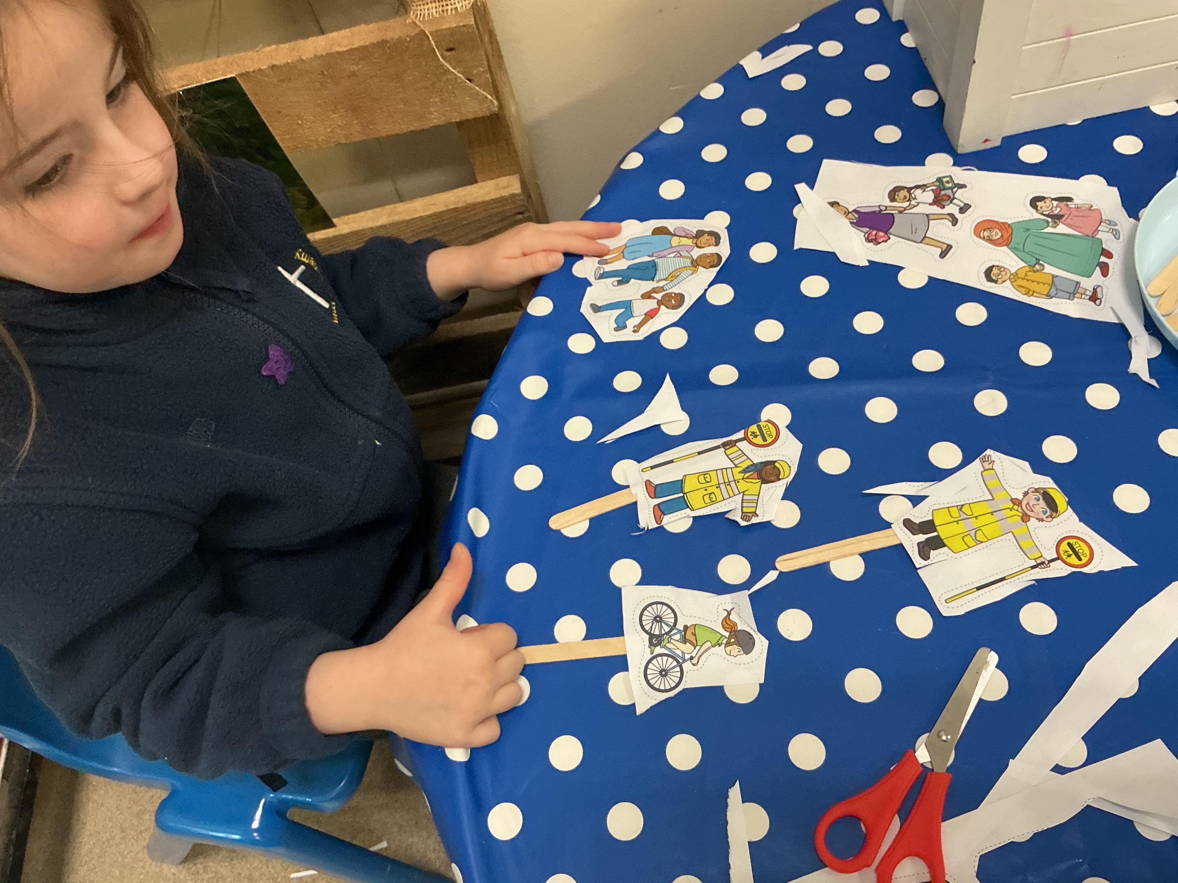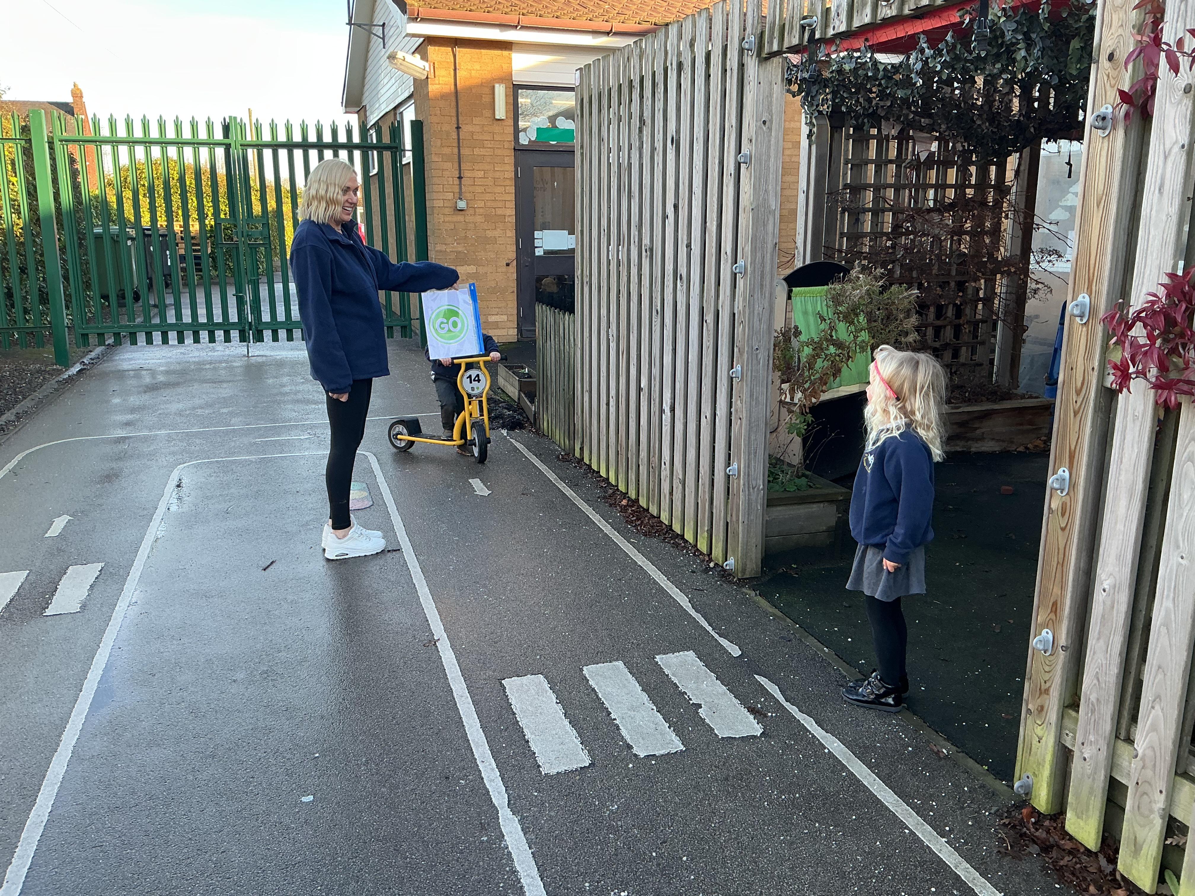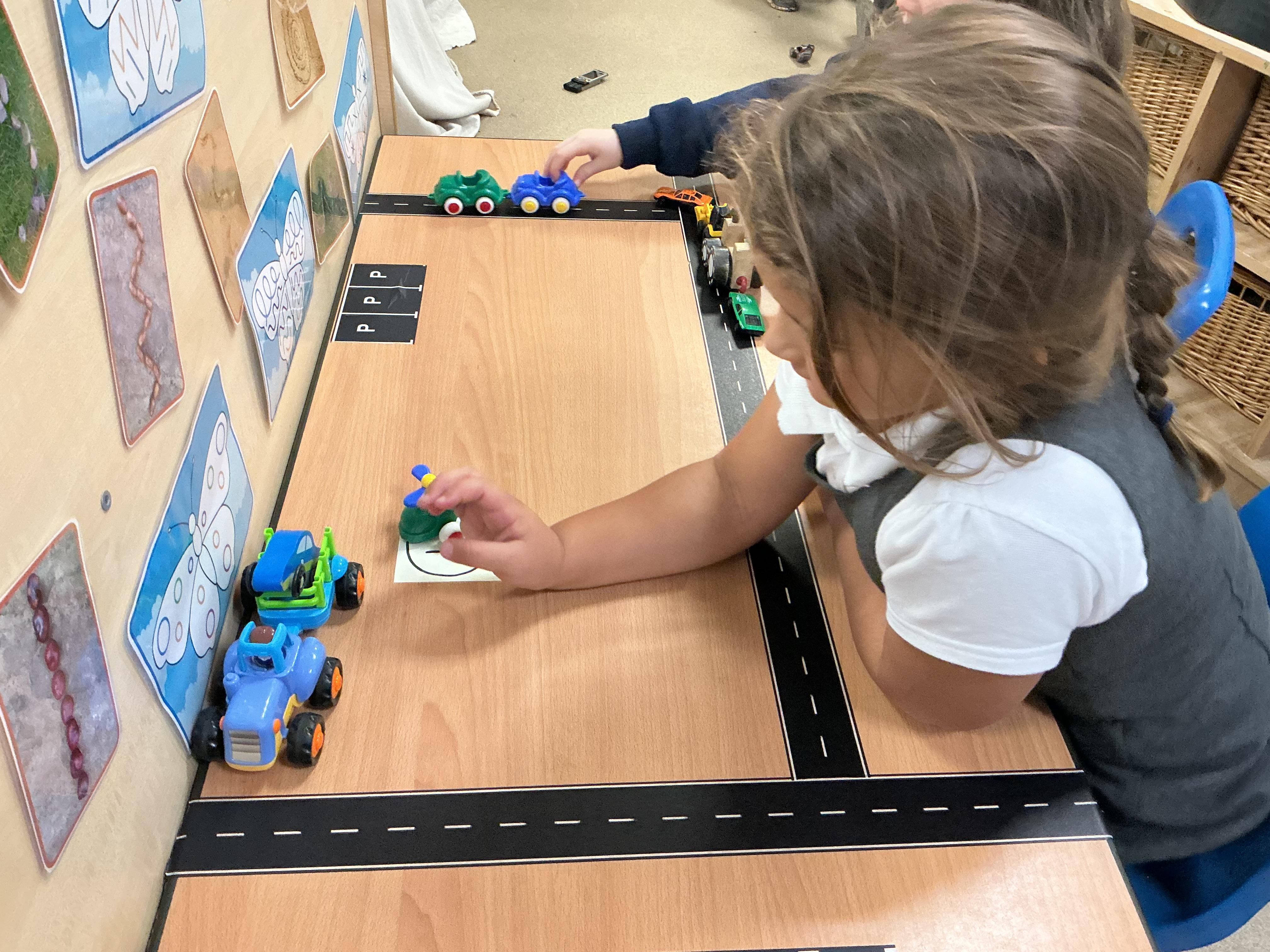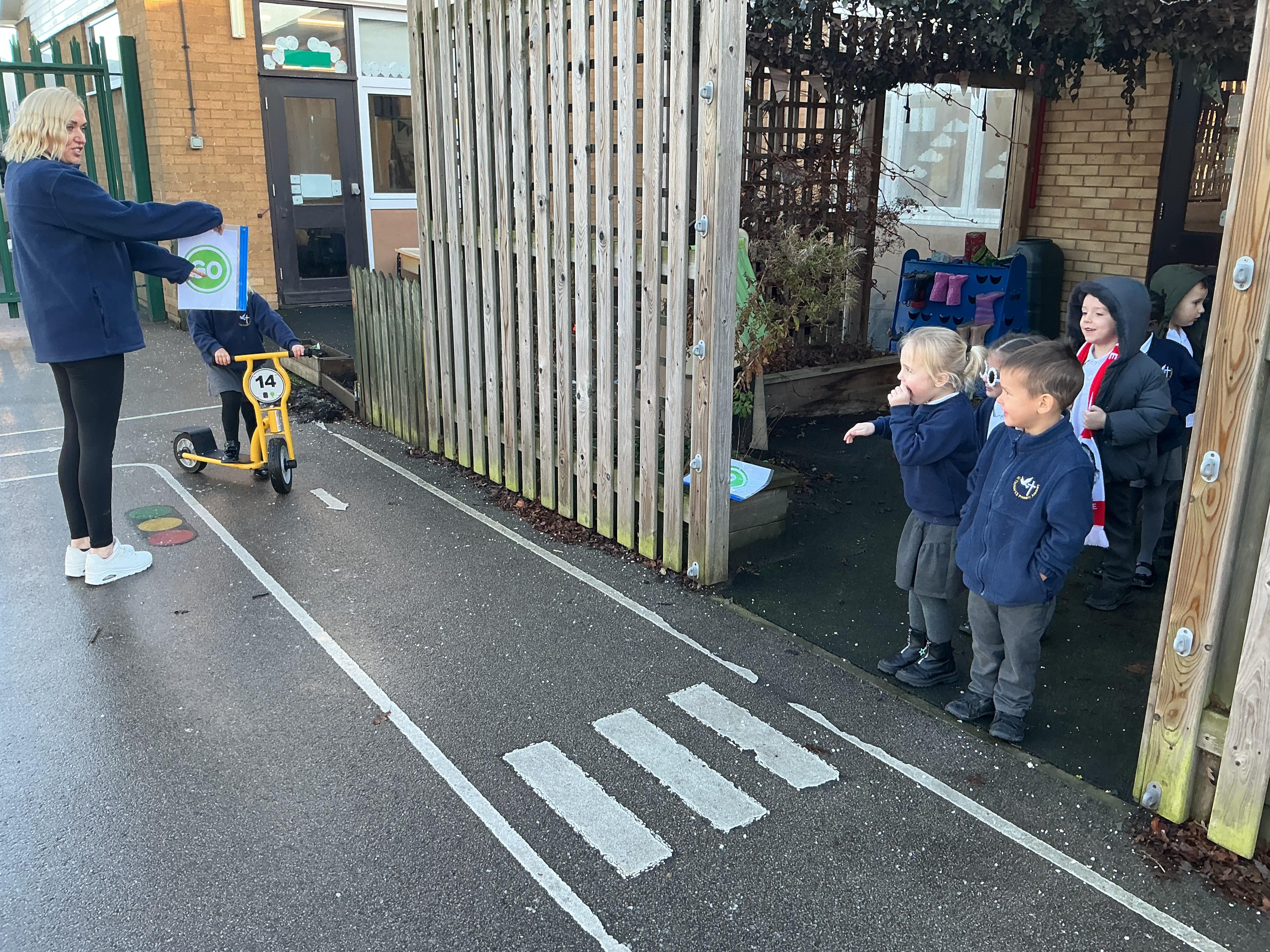 This week we have discussed the importance of road safety. We looked at a child’s car seat and how to correctly use one to keep ourselves safe in a car. We also successfully crossed the road in our playground, using bikes to help the children understand the importance of using a crossing and waiting for the green man or go symbol. We also completed different activities in our provision including car puppets, car and road role play and matching games.