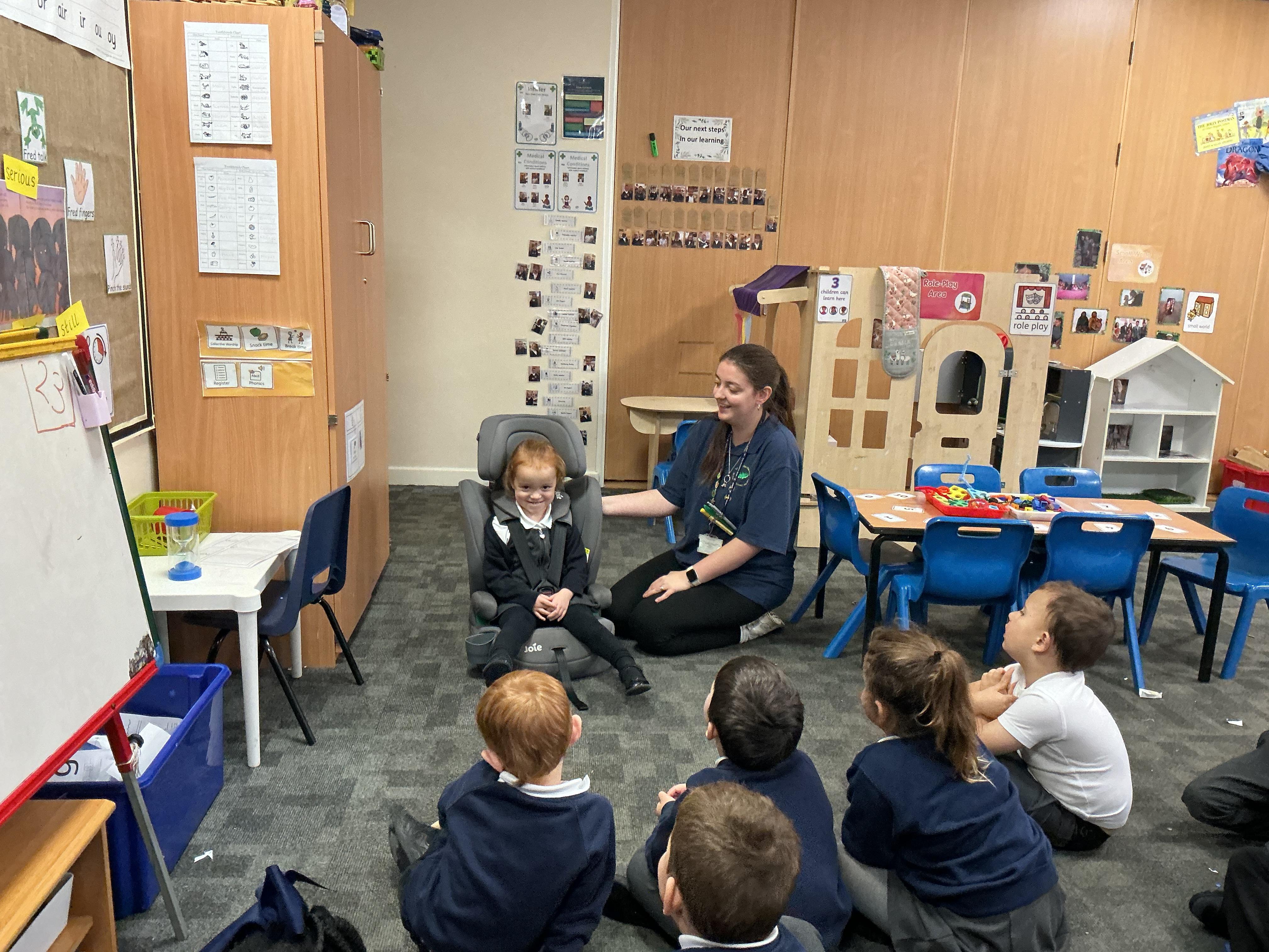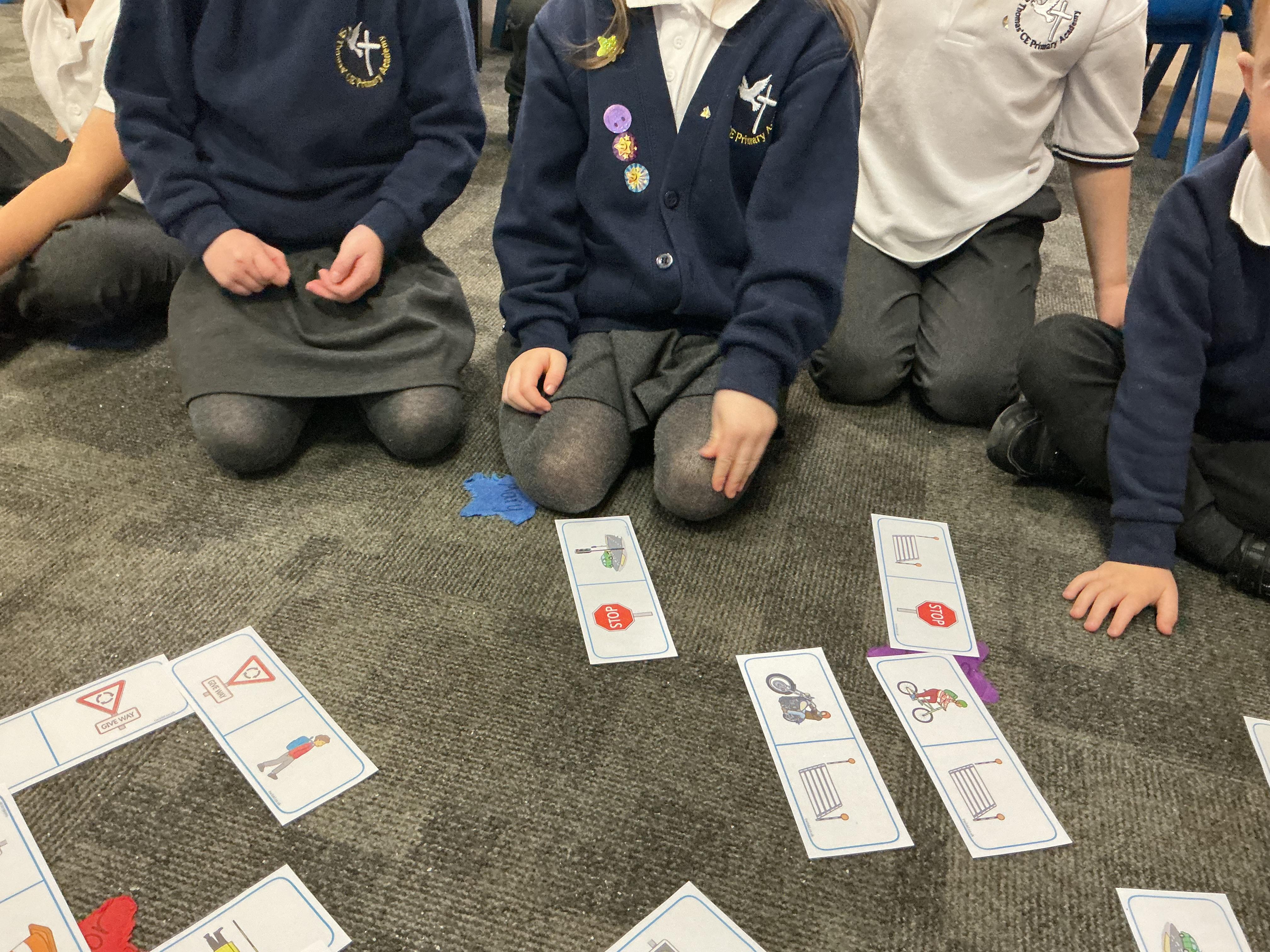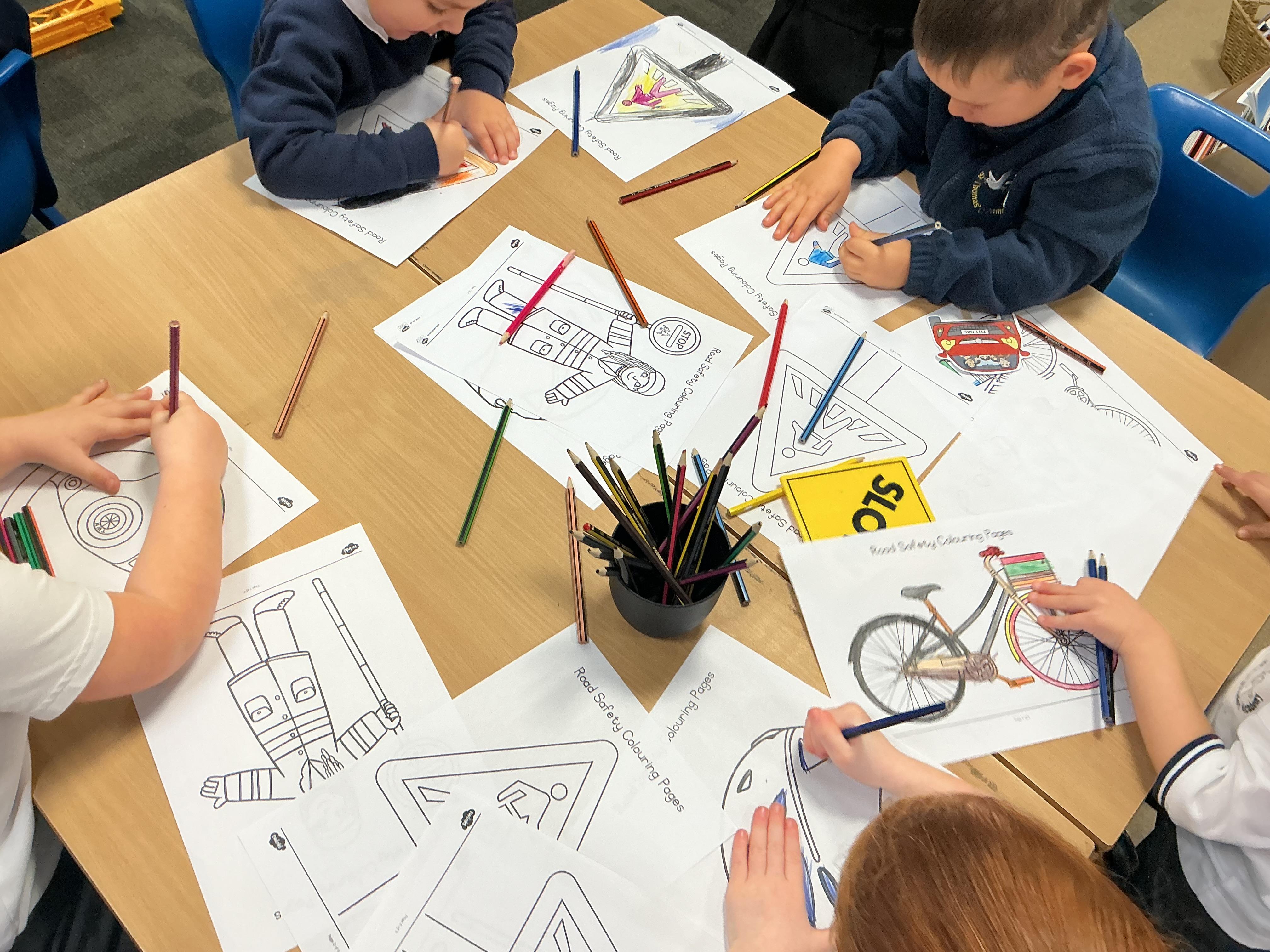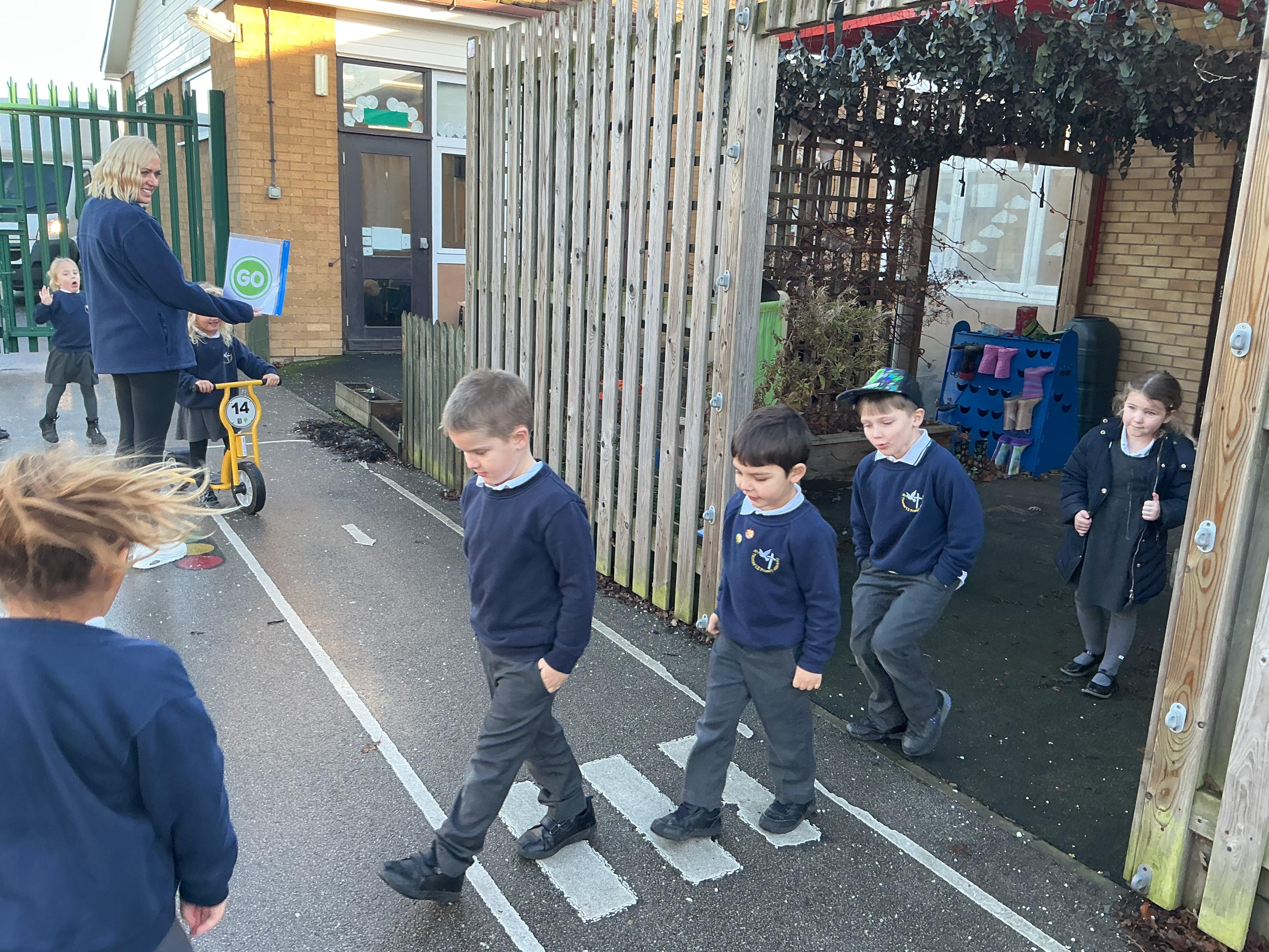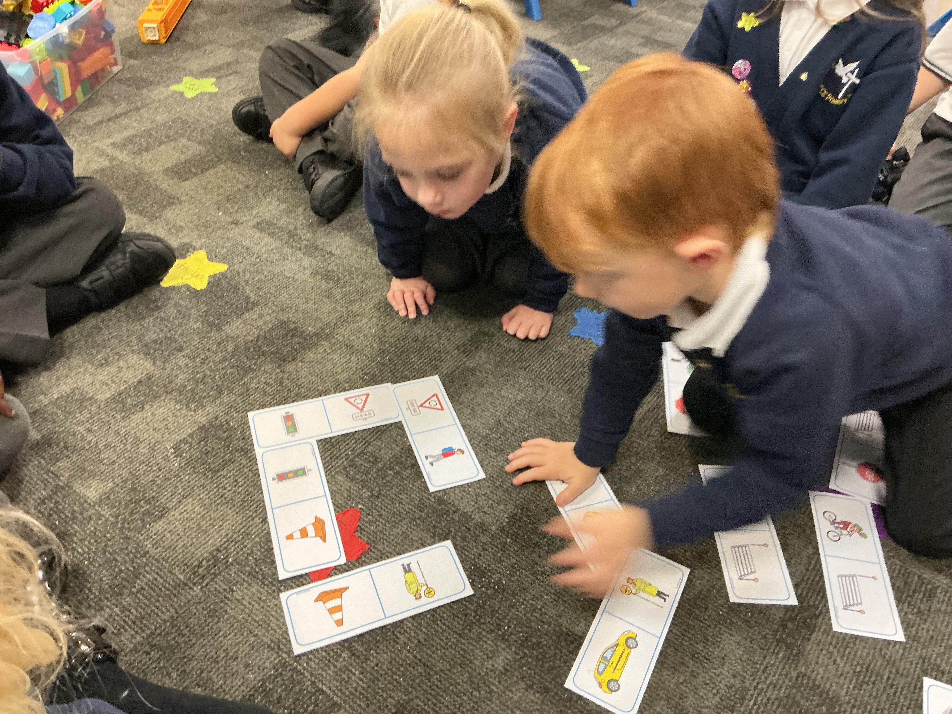 This week we have discussed the importance of road safety. We looked at a child’s car seat and how to correctly use one to keep ourselves safe in a car. We also successfully crossed the road in our playground, using bikes to help the children understand the importance of using a crossing and waiting for the green man or go symbol. We also completed different activities in our provision including car puppets, car and road role play and matching games.