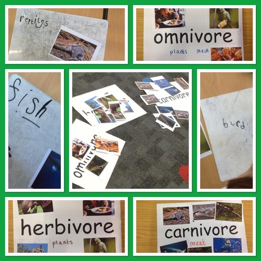 In Science, we began our new unit of animals! We began looking at the different animal groups and what key features they have. We then moved on to discover what foods common animals eat and what vocabulary is used to describe this. We worked together to classify our animals into the groups - carnivores, omnivores and herbivores.