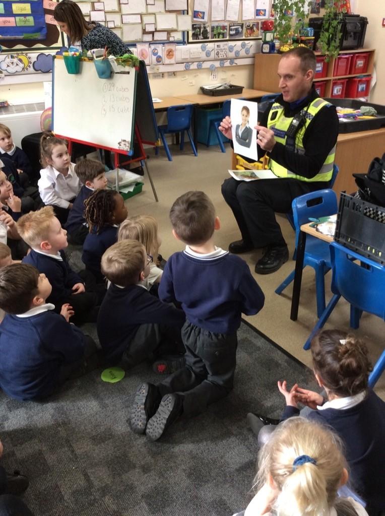 This week, Love class had a very special visit from a  PCSO who came to talk to the children about how to stay safe and what to do if we met a stranger or found ourselves lost from our parents or family members. The children were able to share their knowledge of safer strangers and people who help us and enjoyed trying on some of the police officer uniform. Throughout this term, the children have shown fantastic knowledge of how to stay safe and identify all the people who help us day to day.