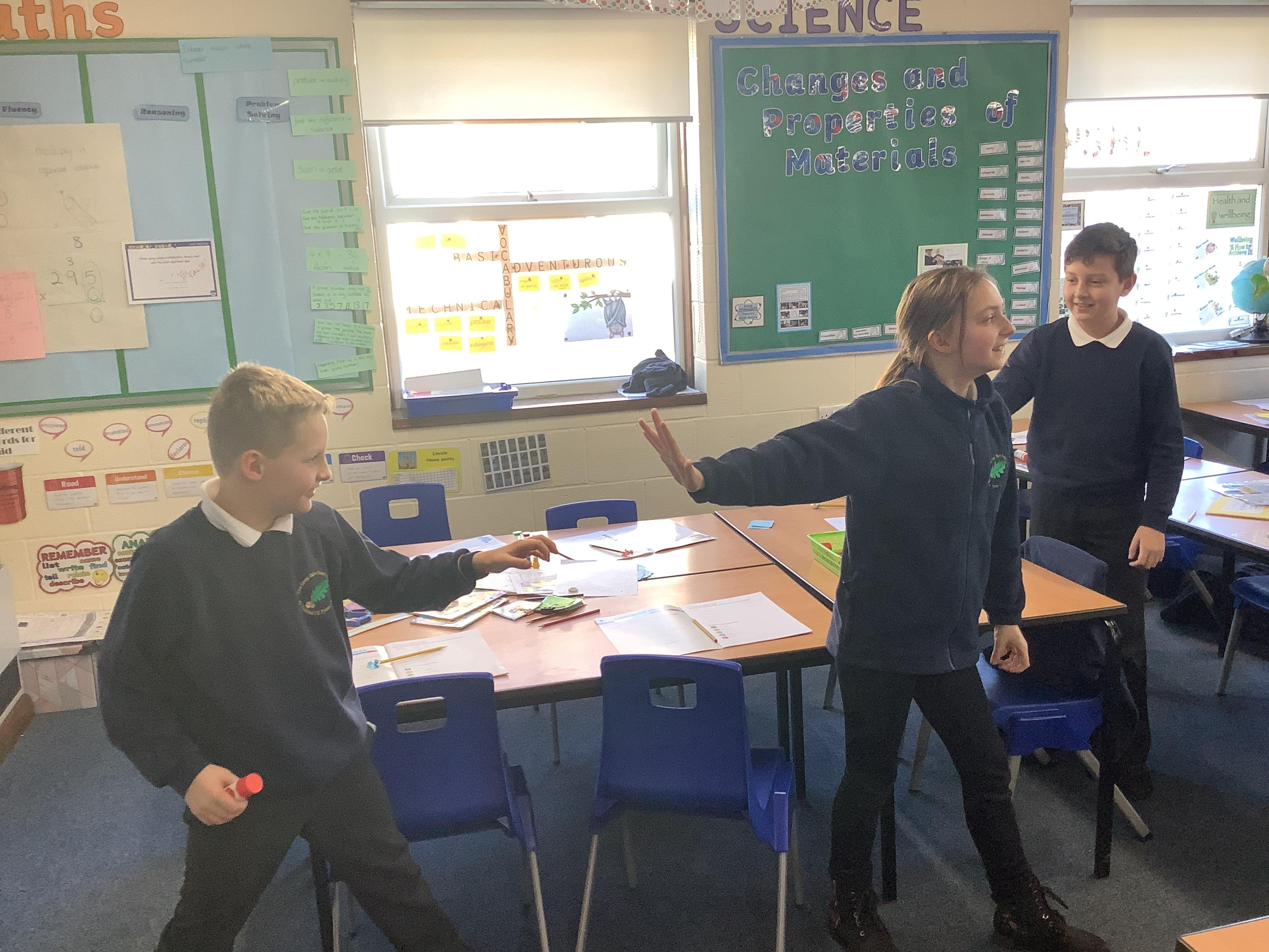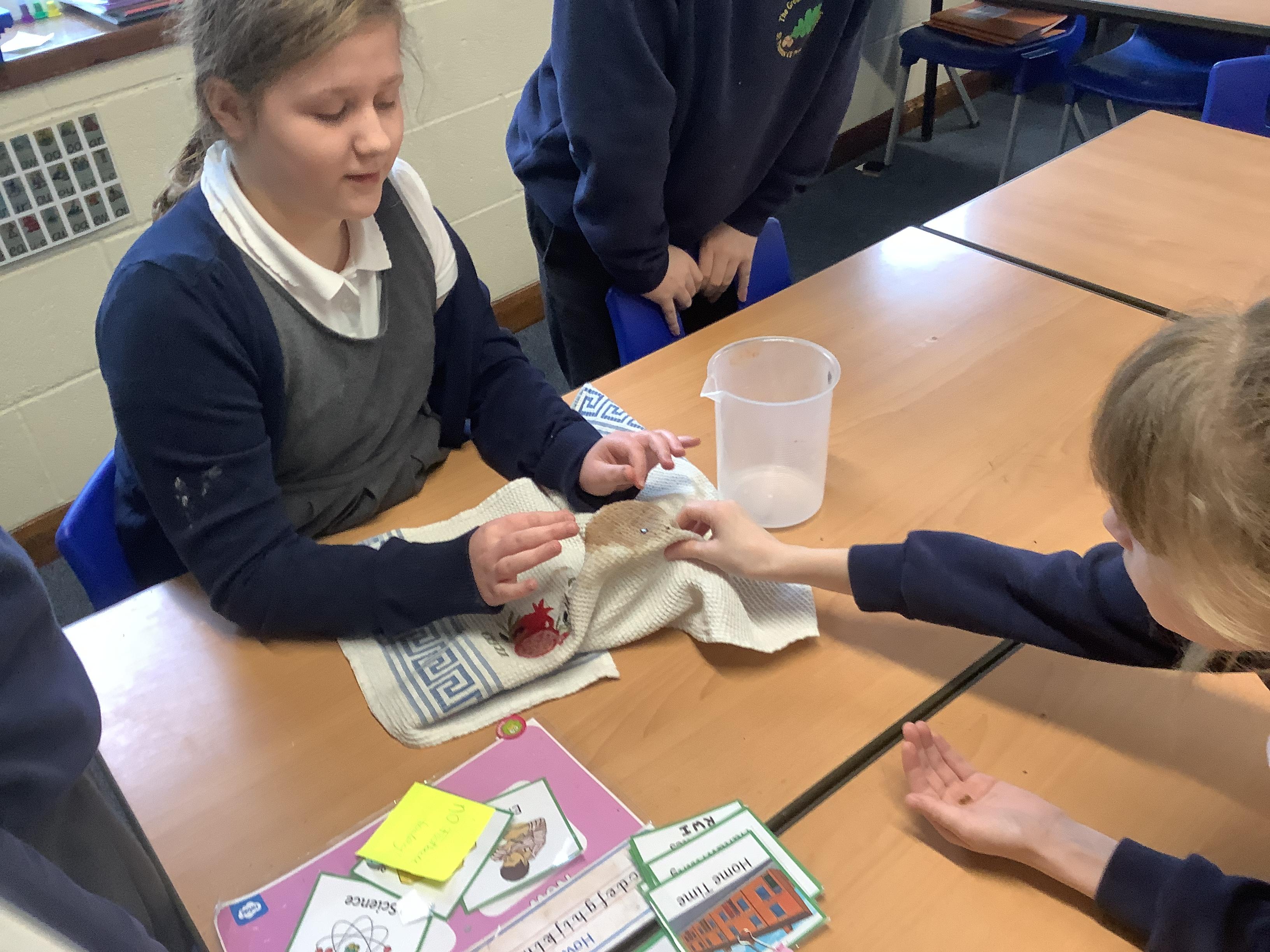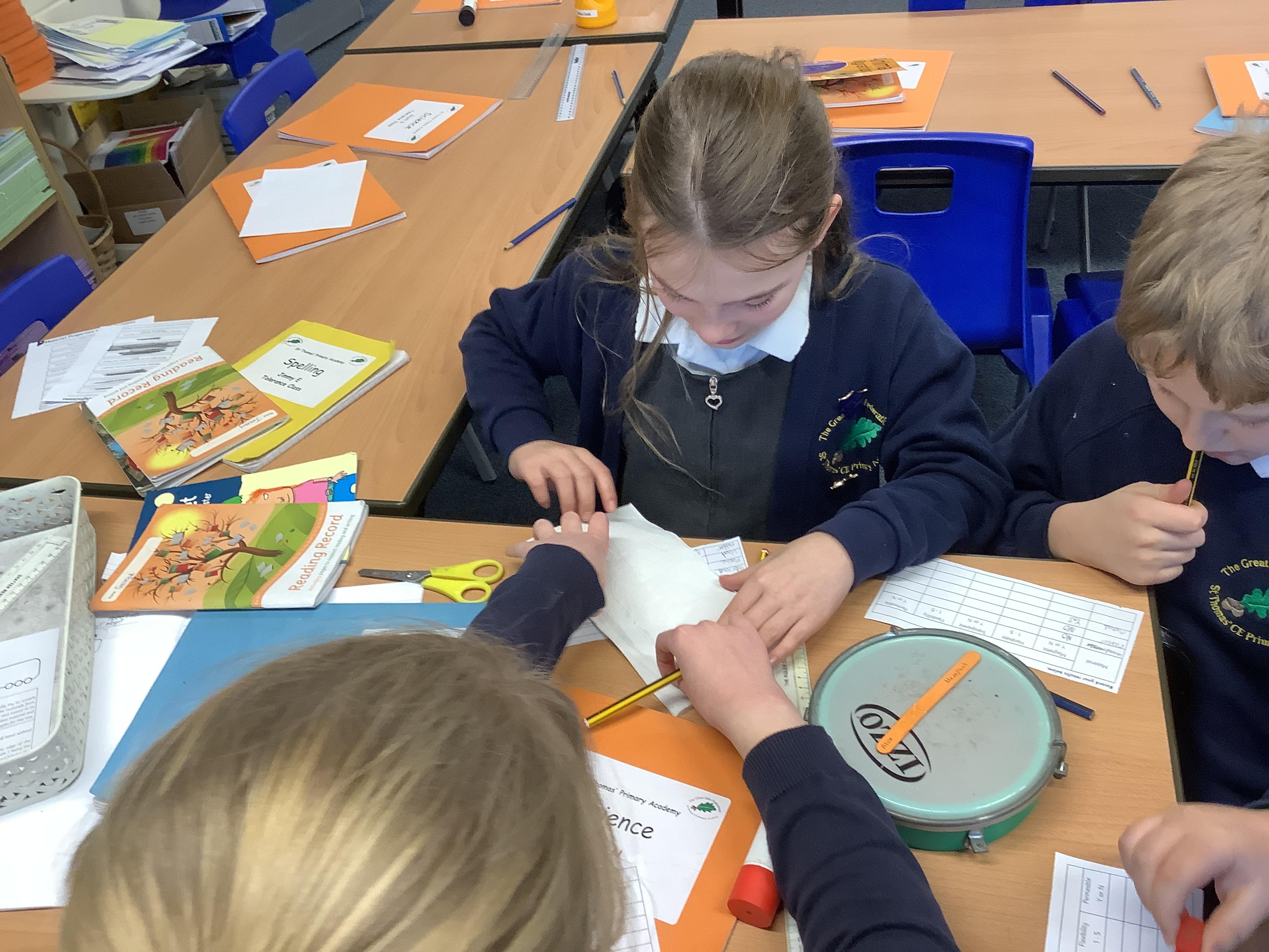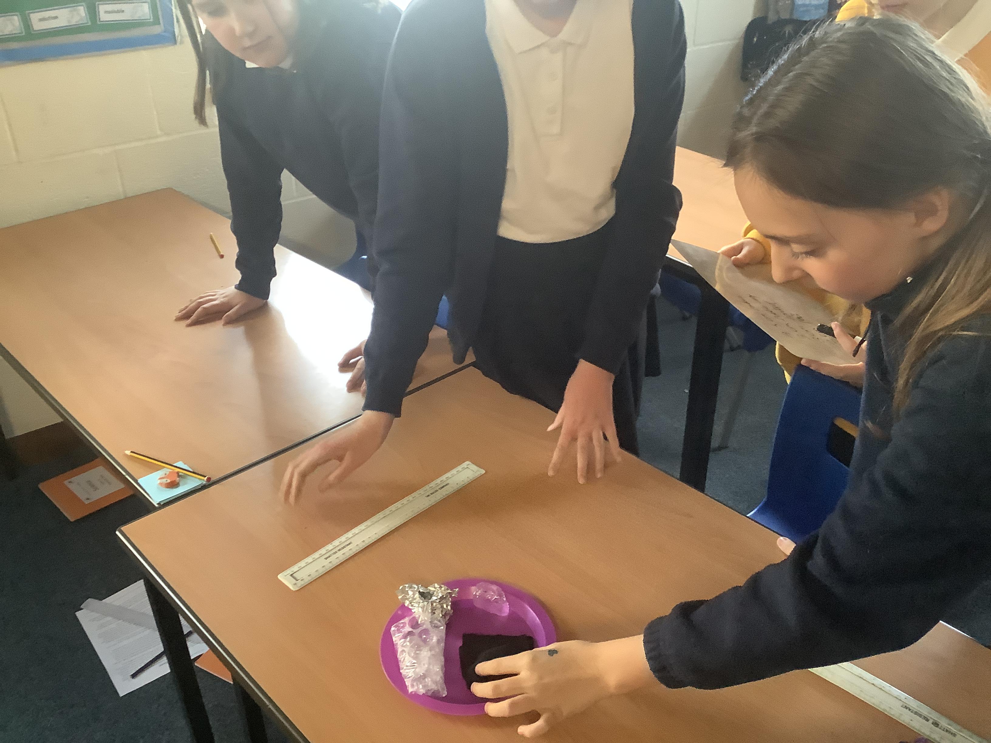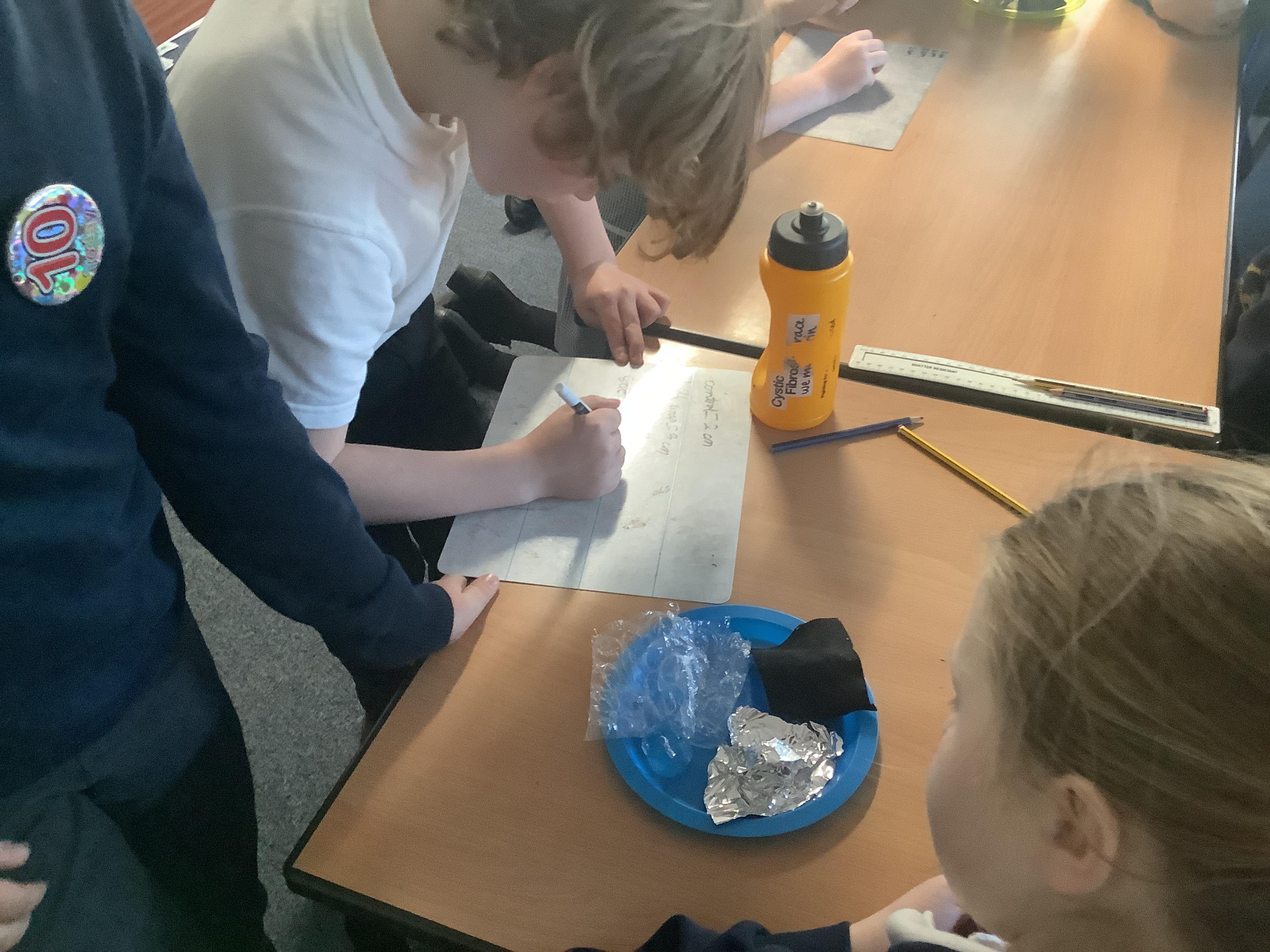 We retrieved some of our learning from Year 4 when we discussed insulators and conductors, then we tested materials for thermal insulation or conductivity. We were surprised that most of us had a misconception about coats - most of us thought that if you put a coat on a snowman, it would make it melt more quickly because the coat is warm. By wrapping our ice cubes in ‘coats’ we were able to see that a coat actually stops warm air reaching the ice, which slows its rate of melting. The control ice cube, with no coat, melted most quickly whereas many of us had predicted the one with fabric around it would. We applied to ourselves and realised that our coats are not warm in themselves, they are insulators and block our body heat from escaping and cold air from touching us. What a useful investigation!
