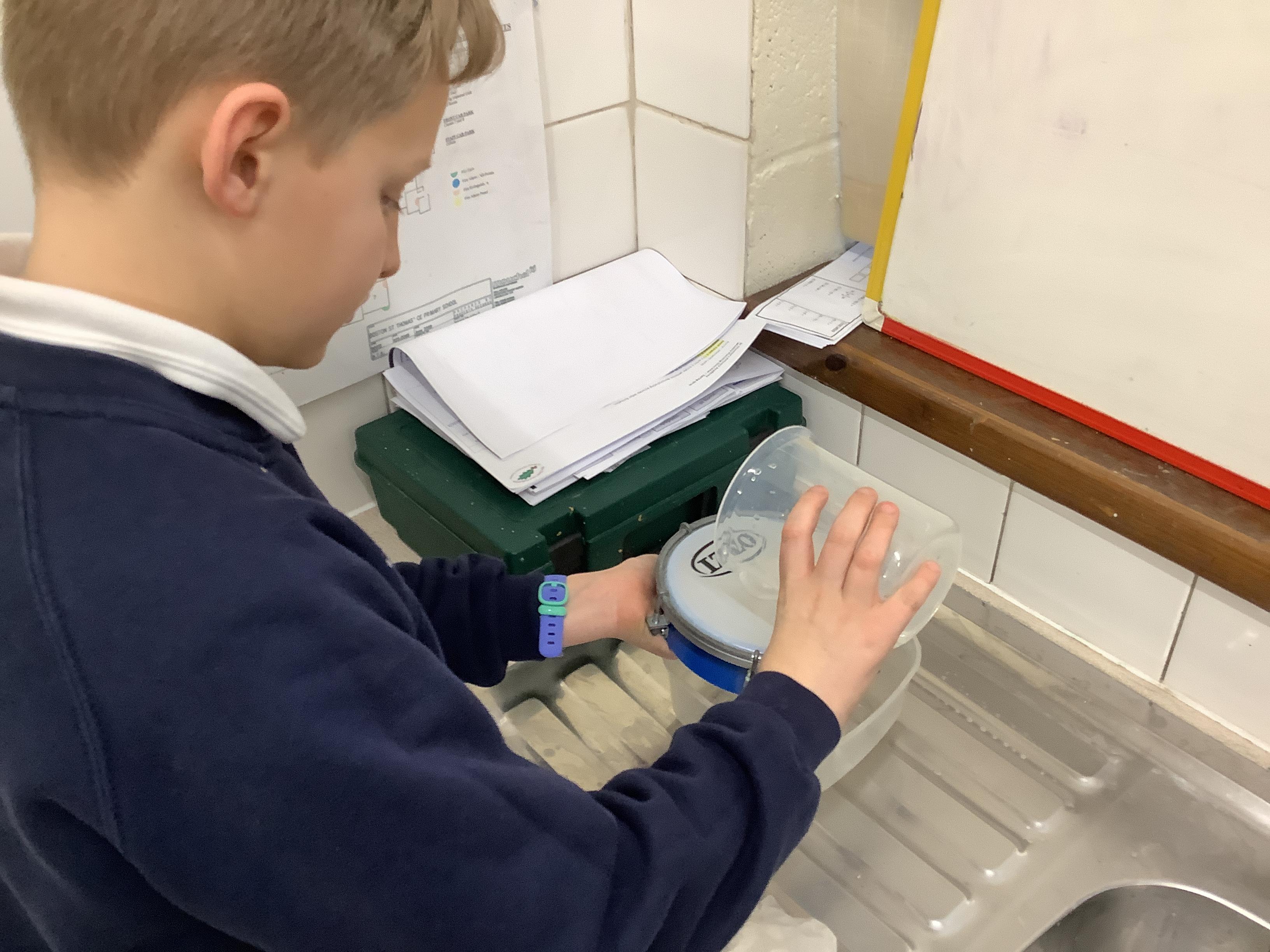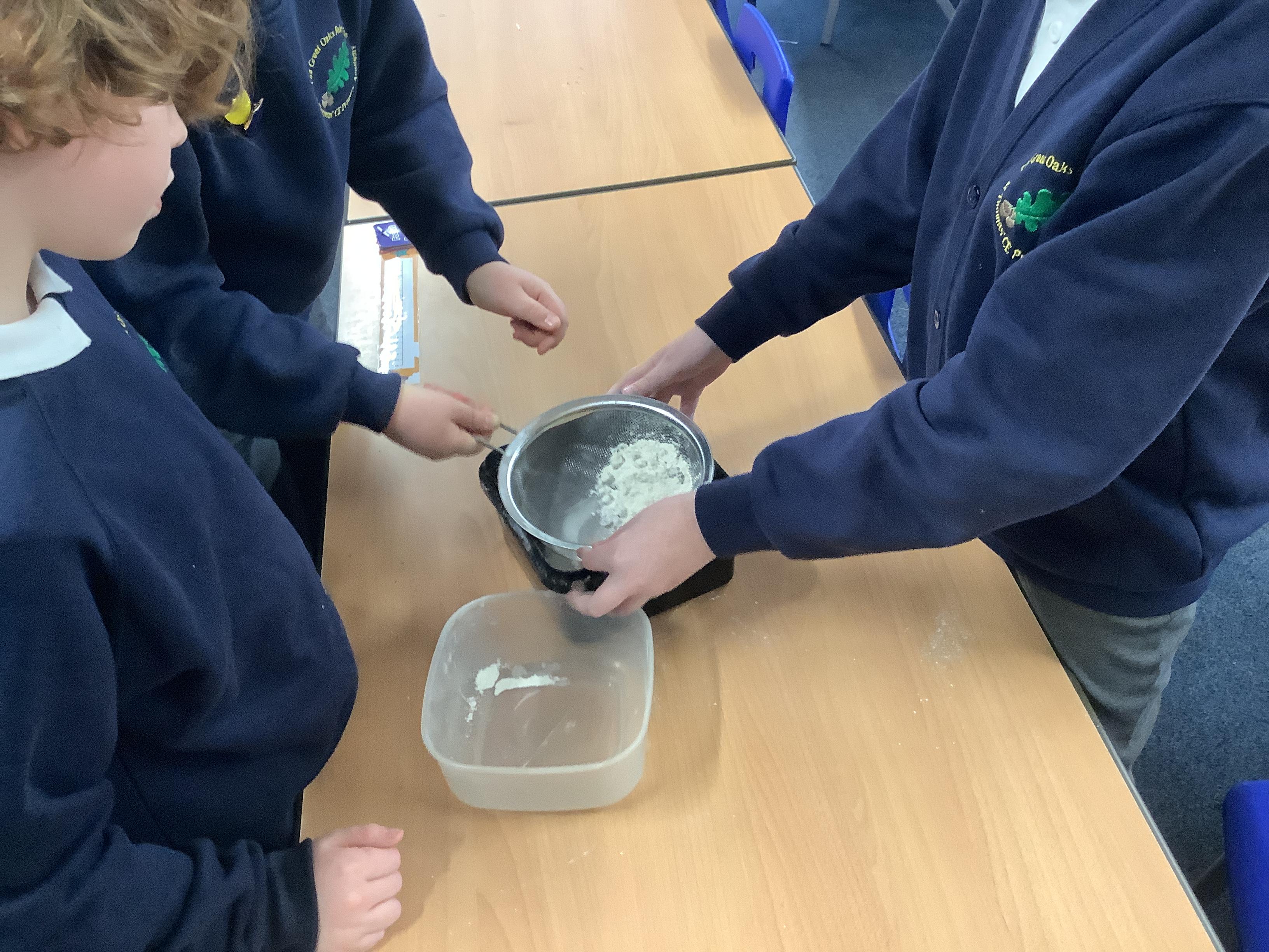 Today’s investigation involved separating substances that had been mixed up! We worked out which scientific process was effective for which mixture. We used sieving to separate flour and raisins; magnetism to separate paper clips and rice; filtering to separate sand and water (as we realised this was not a solution); and evaporation for salt and water (which was a solution).