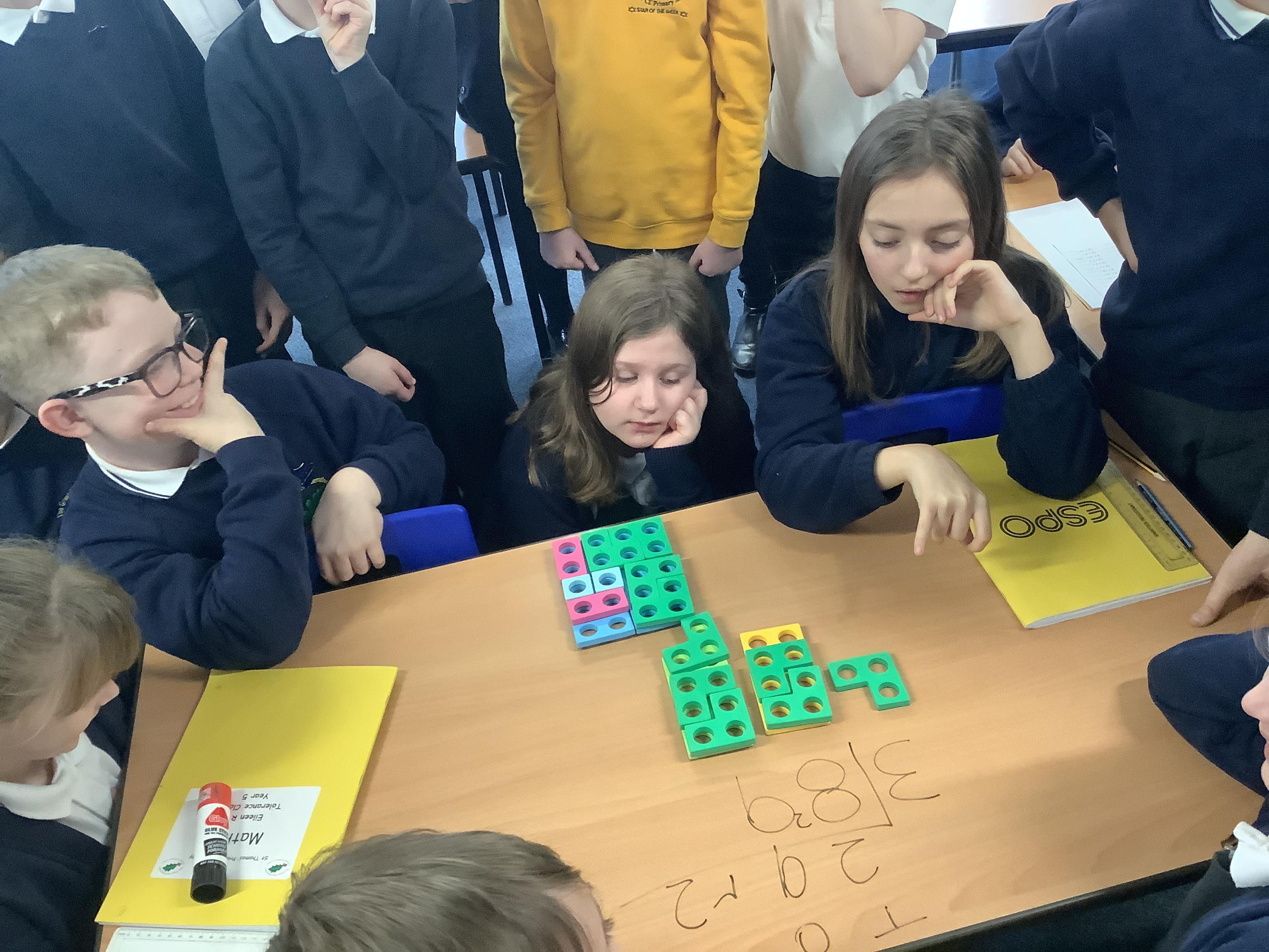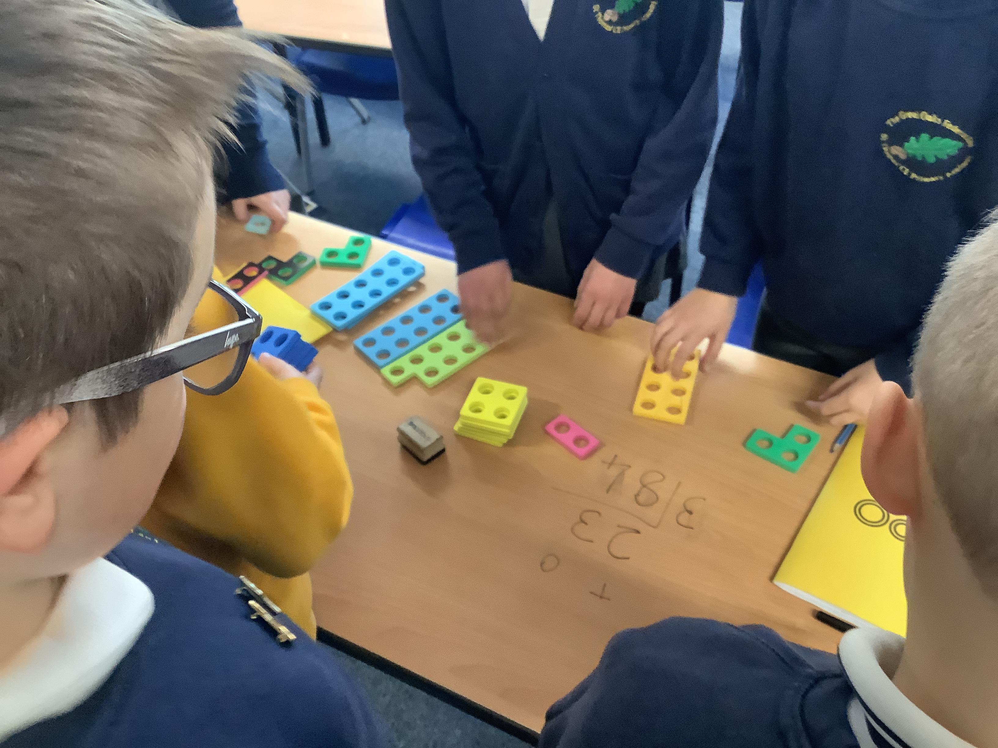 Numicon helped us to develop our conceptual understanding of division when using bus stop method. Using the practical equipment made the process of exchanging clear.
