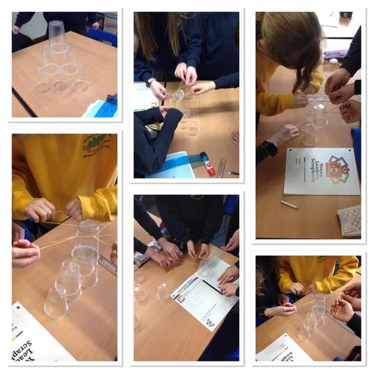 Our first challenge this week was to work within a team to build a tower of cups. Everyone was very confident until I advised them that they couldn't use their hands to touch the cups and could only use elastic bands! A few puzzled faces looked back at me! Four out of the five teams managed to stack their cups within three minutes! A fantastic discussion was then had regarding what worked well and what didn't within their teams.