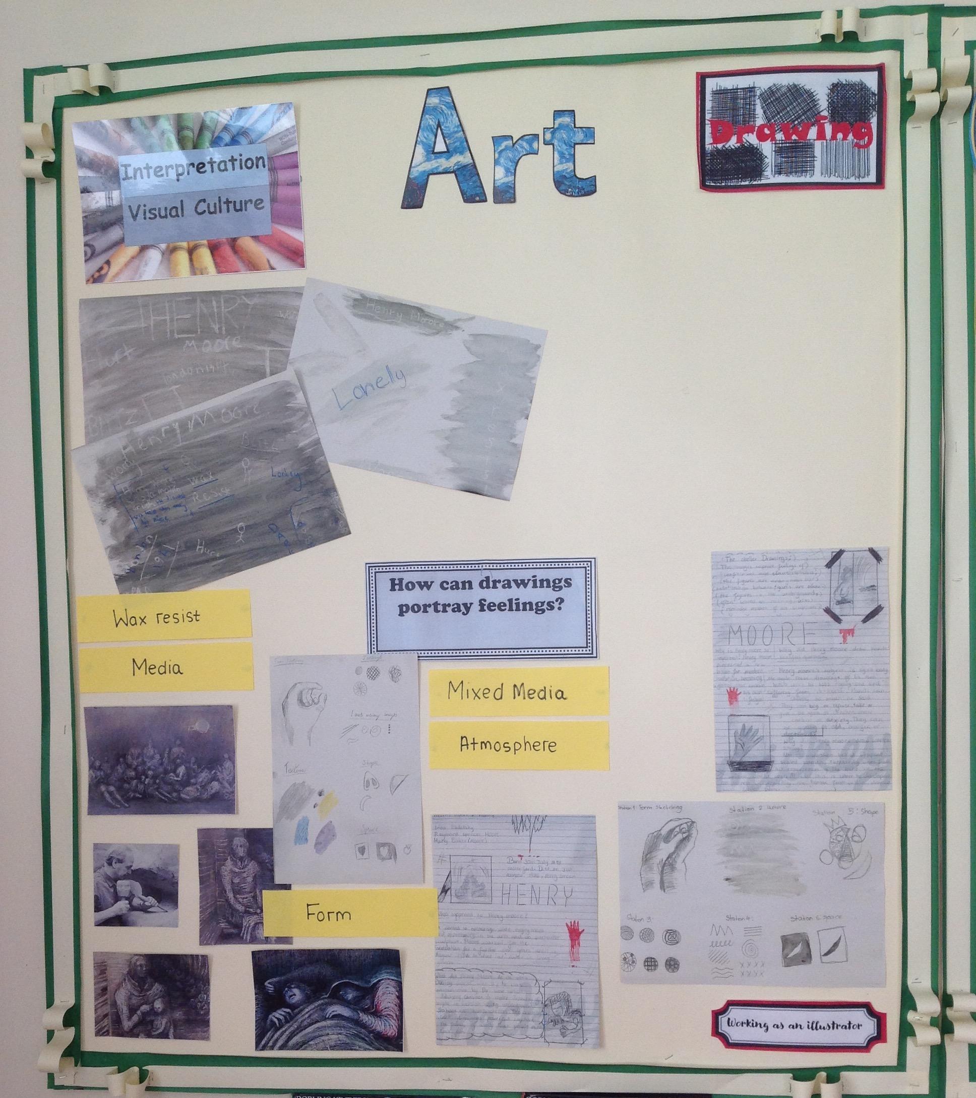 During this drawing unit, we will be exploring how we can use different media to create emotion through our work. Henry Moore – well known for his sculptures – was asked to document the events of the Blitz in London while people to shelter in the underground stations during air raids. His drawings were mainly made through using wax-resist and water colour – we shall be evaluating his work before moving on to creating works of our own.