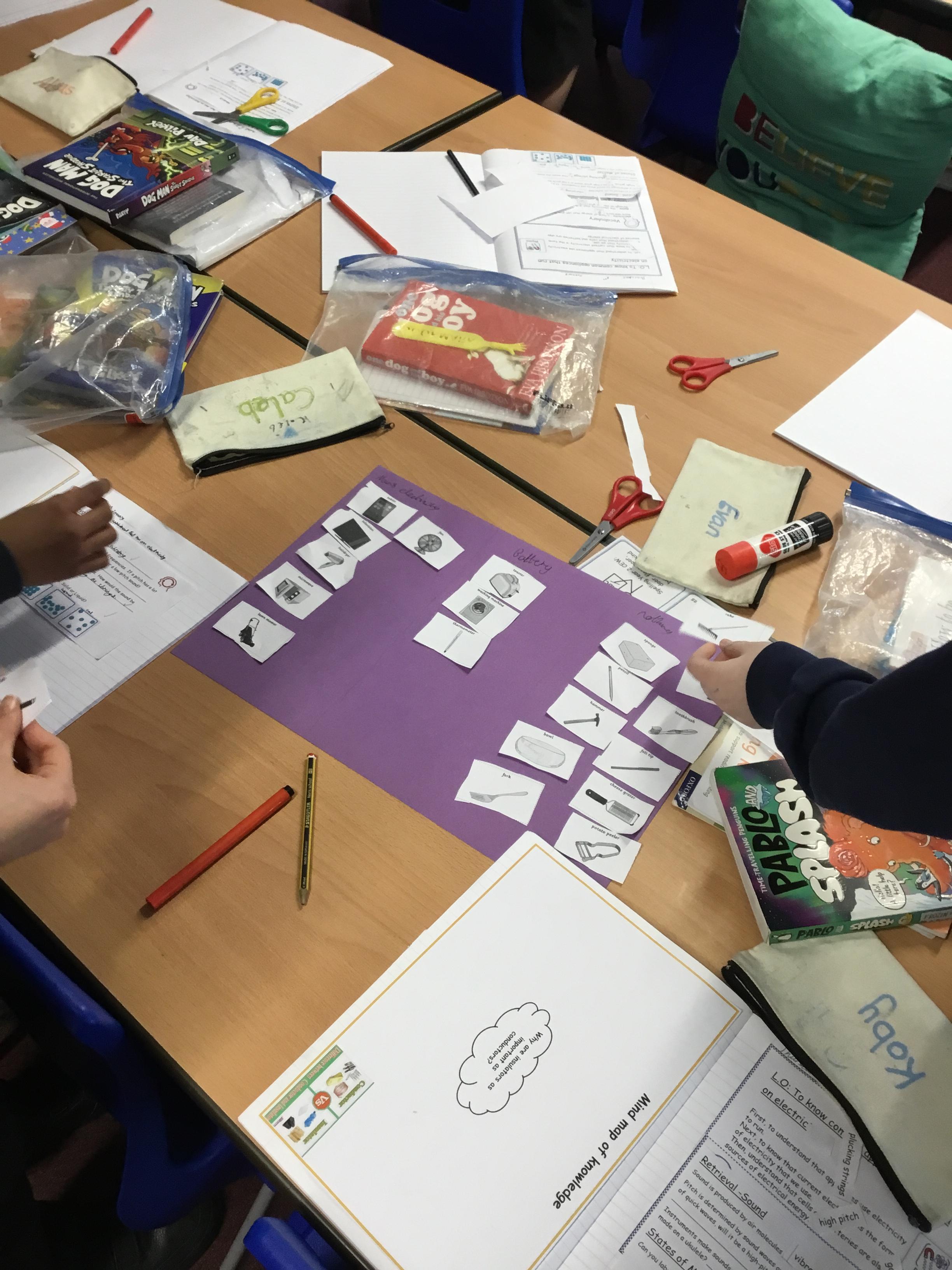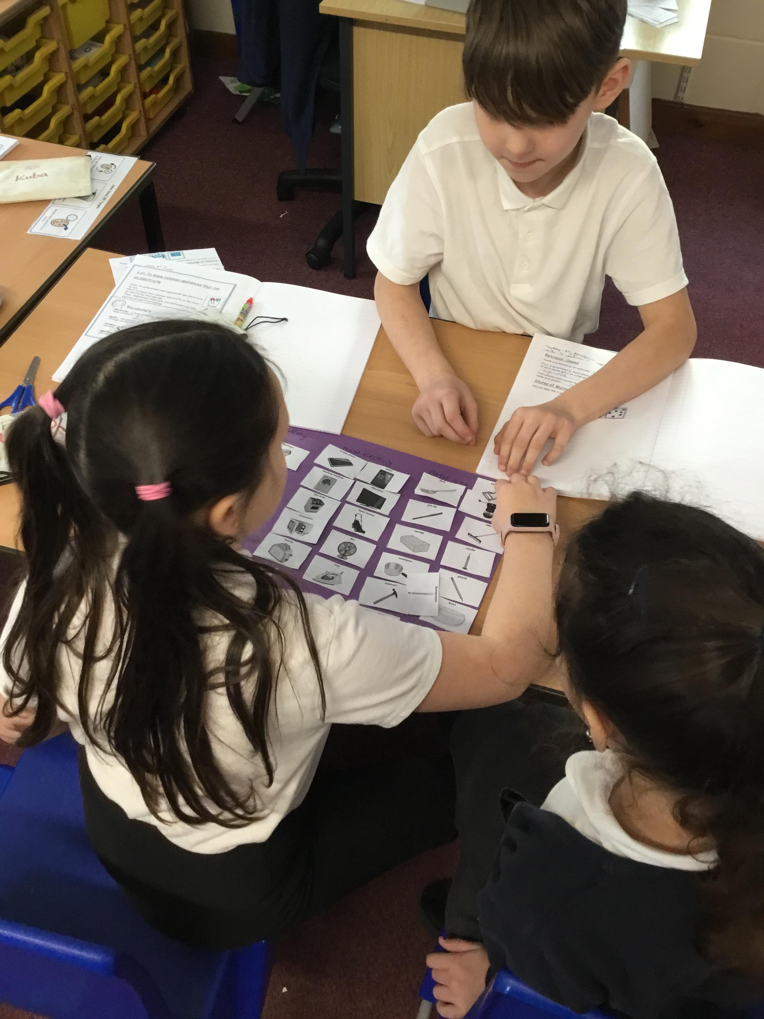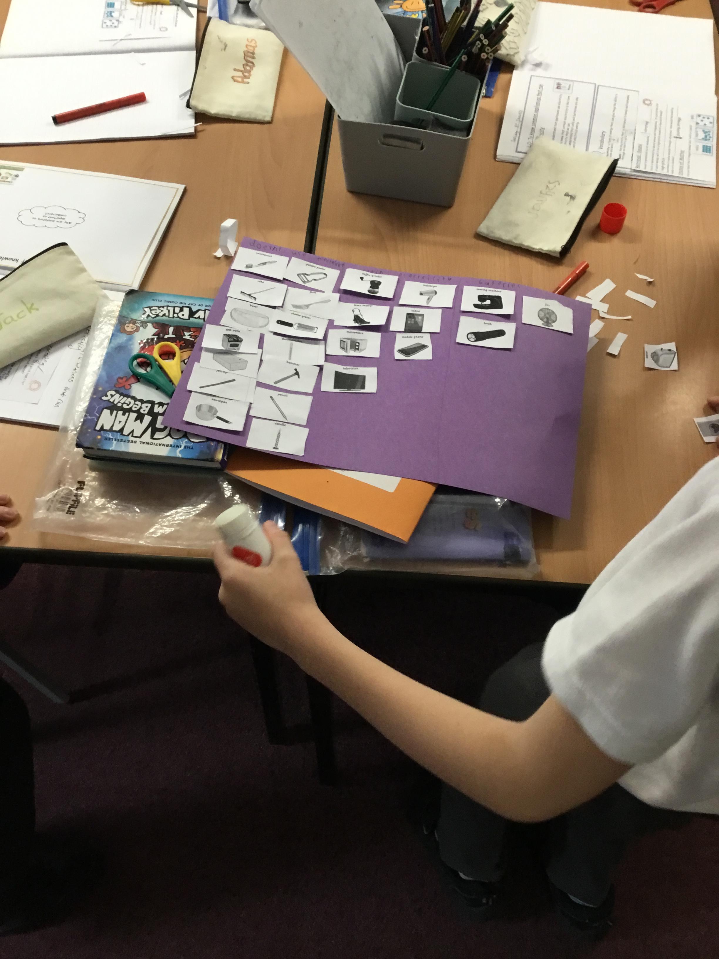 During our first lesson in Science, we learnt about how some appliances are powered by electricity or battery power.  Working in small groups, we looked at a number of different appliances and discussed with each other if these were powered by electricity, battery or used manually.