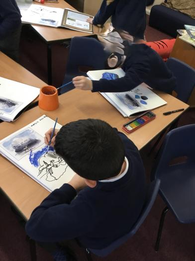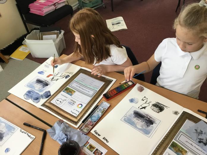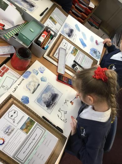 In Art, the children have compared the work of Charlie Macksey and Paul Cezanne. They quickly spotted that one used watercolours and one used acrylic. They then used the paintings to experiment themselves.