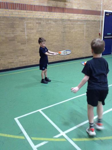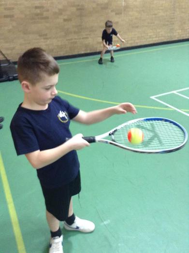 The children have learnt how to use the racquet face to hit the ball. They understood to use a strong wrist to hold it and then the centre of it to hit the ball.