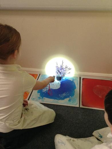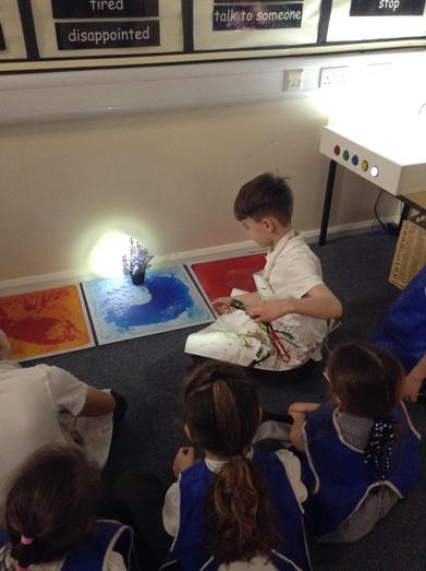 The children investigated what happened when torch light went closer and further away from objects. They were quick to observe that the shadow  increased in size the closer the light source. They were then able to record their observations.