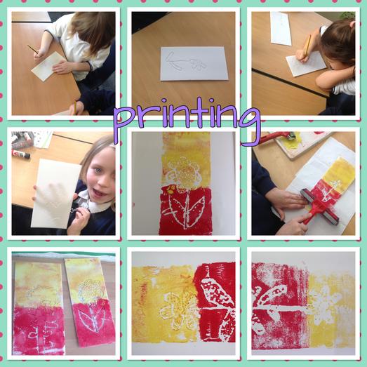 This week the children have been having lots of fun re-visiting how to print. They etched a design onto styrofoam and then they have to use two colour of ink to create their design.