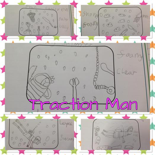 We have been reading the text 'Traction Man'. The children have been drawing parts of the story to help them develop vocabulary before writing the sink scene taken from the text. Next we are going to be writing predictions of what we think Traction Man will do on his next mission before finally writing our own story all about Traction Man.
