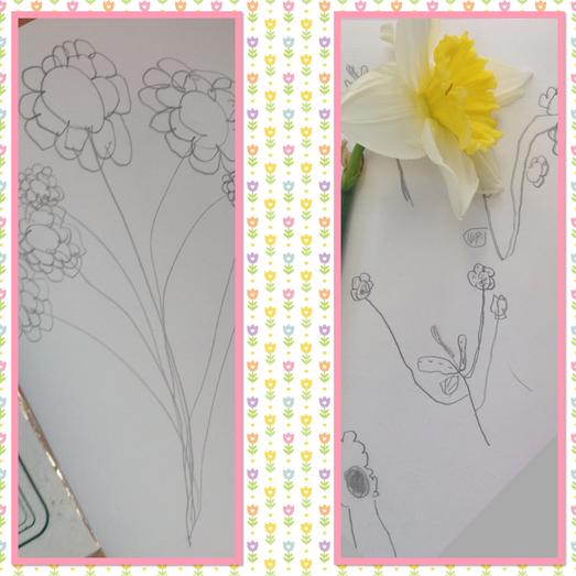 The children have been drawing some amazing observational drawings of flowers ready for them to print a flower using ink and rollers.