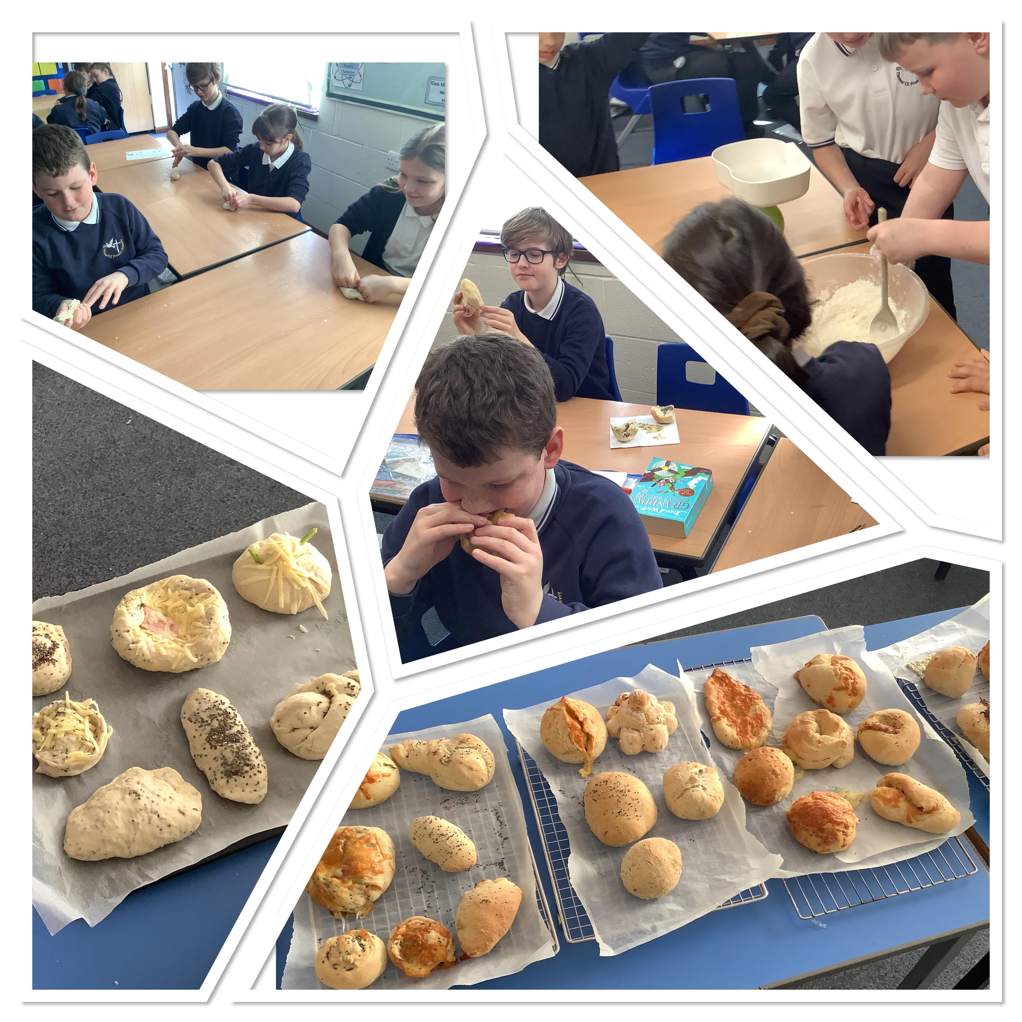 There was a great deal of excitement when the ingredients for bread were spotted in the classroom. Having designed their own bread product last lesson, everyone was ready to create their masterpiece. First everyone weighed the ingredients and mixed them in groups. After that, the kneading started, many were surprised by how much kneading the dough required. It was left to prove for an hour, and doubled in size, which we knew was due to the yeast.