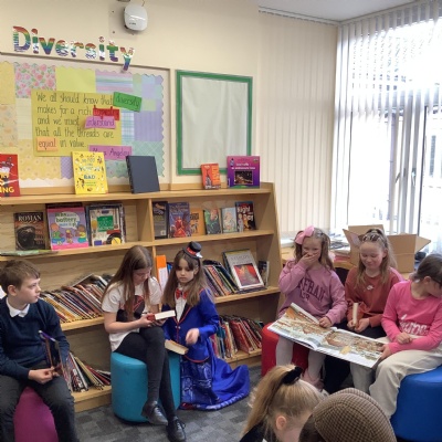 What better way to celebrate World Book Day than by going to our school library? We also watched the brilliant BBC live lesson; Michael Rosen inspired everyone to want to write their own stories. Another activity relating to books was to design a logo for Boston Schools Book Week. We enjoyed dressing up and taking part in all the activities.