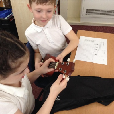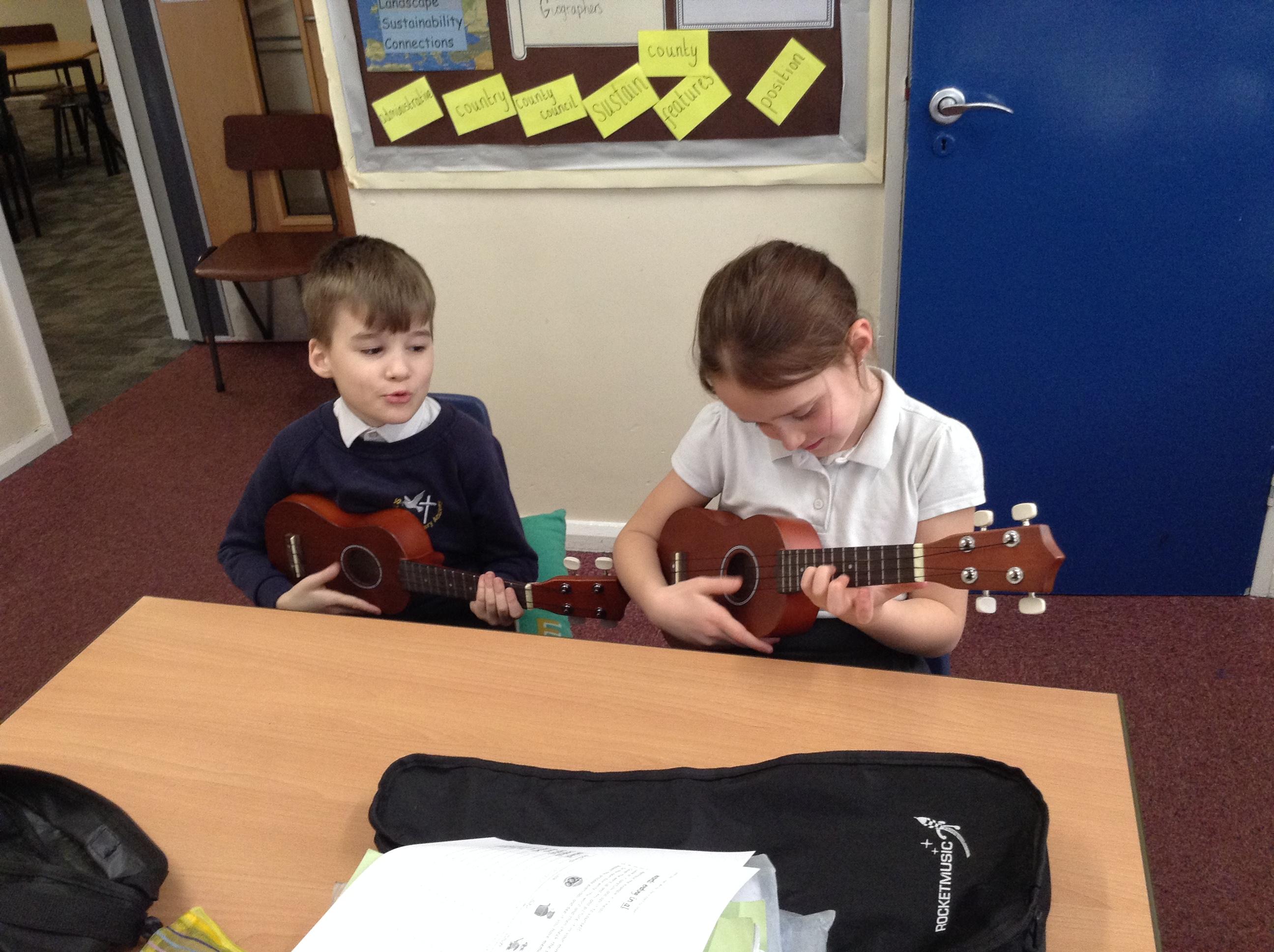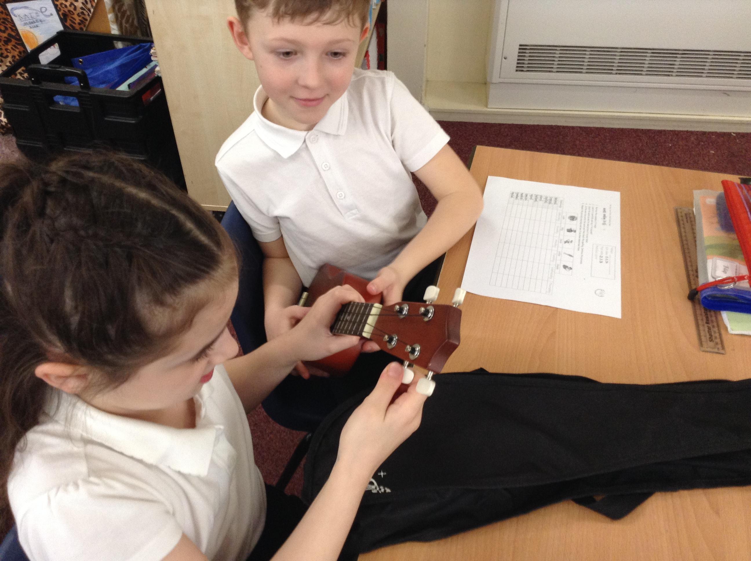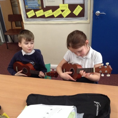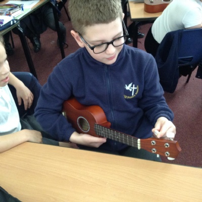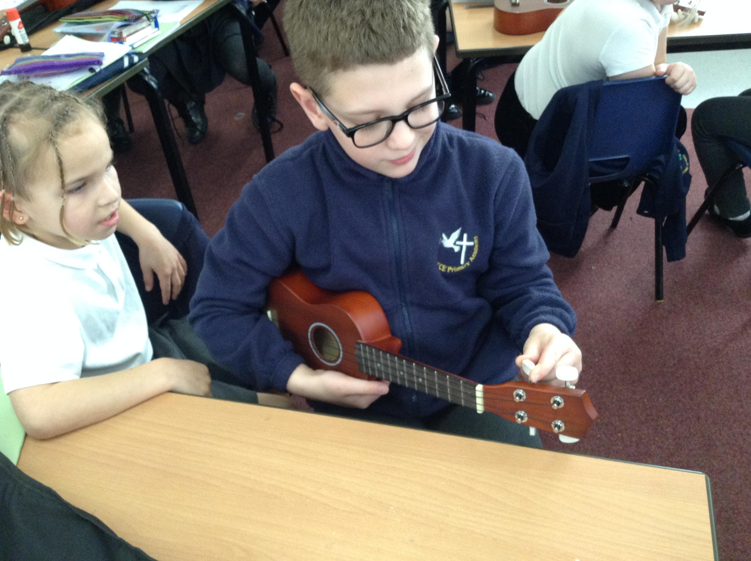 In Music this term, we are embarking upon learning a new instrument... the ukulele! Here we are in action, learning to tune this string instrument. It can be quite tricky but we showed fellowship and this helped us to be successful!