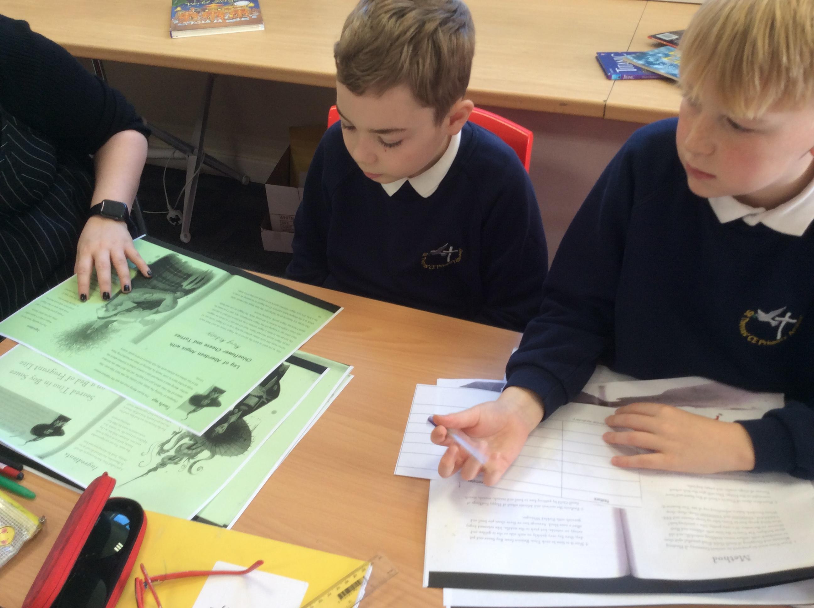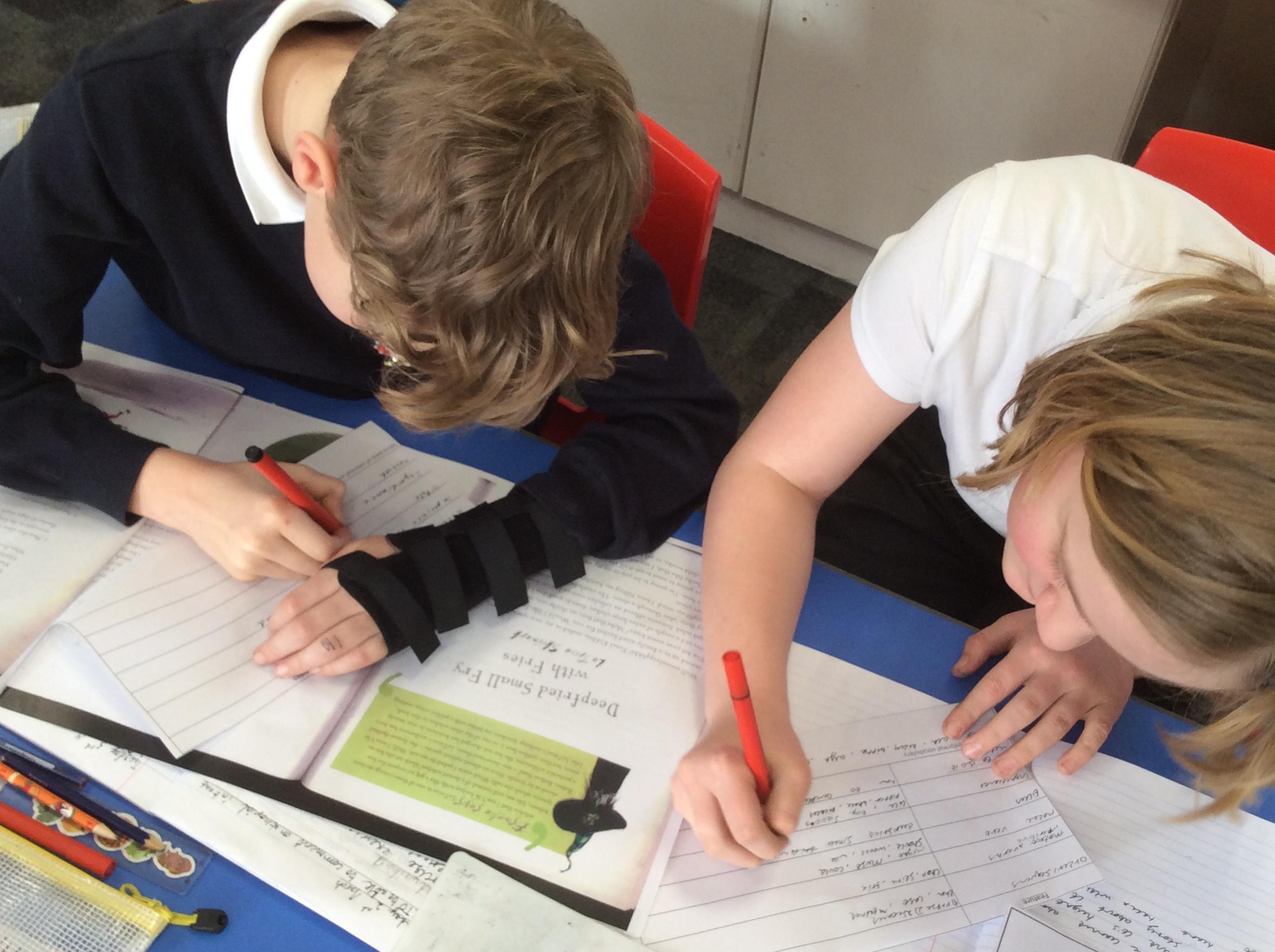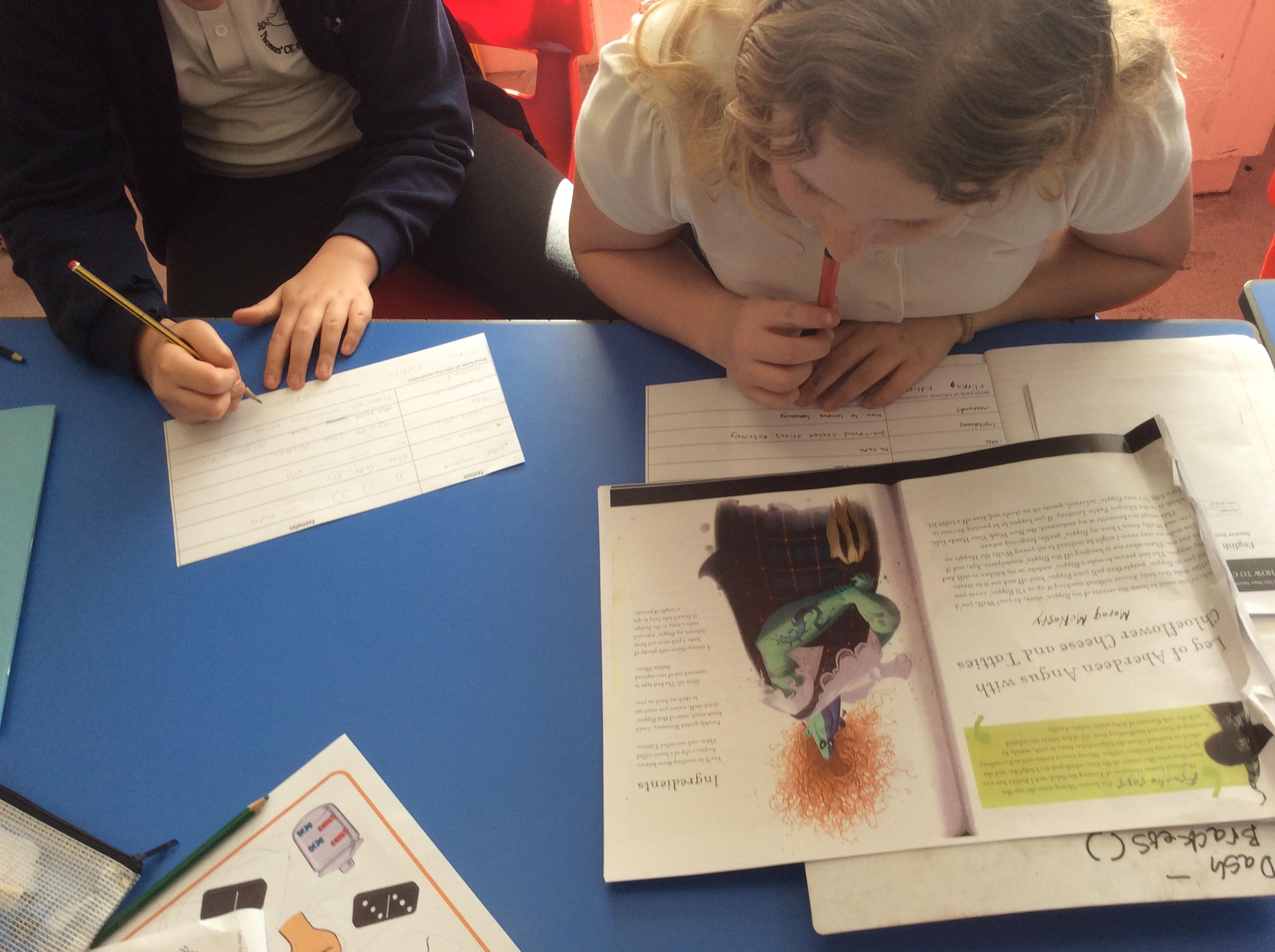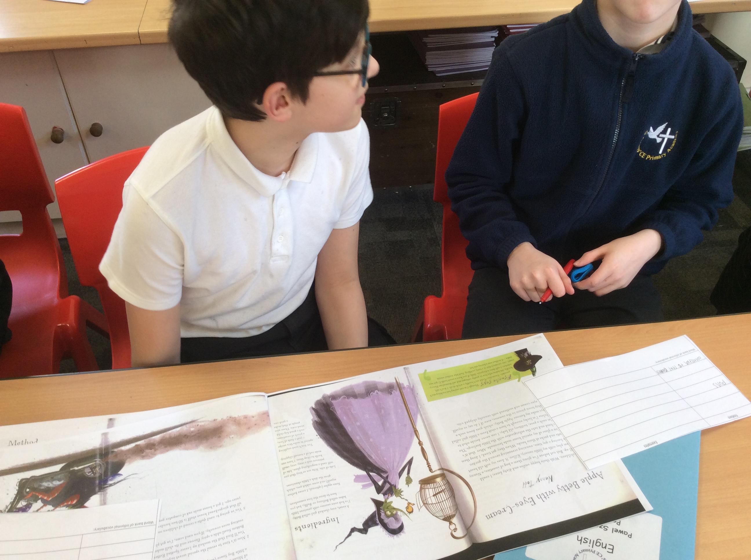 For English, we have been looking at the book ‘How to Cook Children’ by Martin Howard. This is an amusing recipe book, featuring recipes from a variety of witches. We spent time considering what the appearance of our own witches would be, and annotating phrases they may use in their recipes round our character designs.