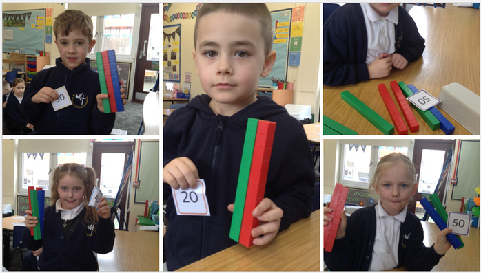Today we have been counting in 10s and making the numbers using numicon, ten frames and tens sticks. We talked about how many ones there are in each number and how many 10s there are.