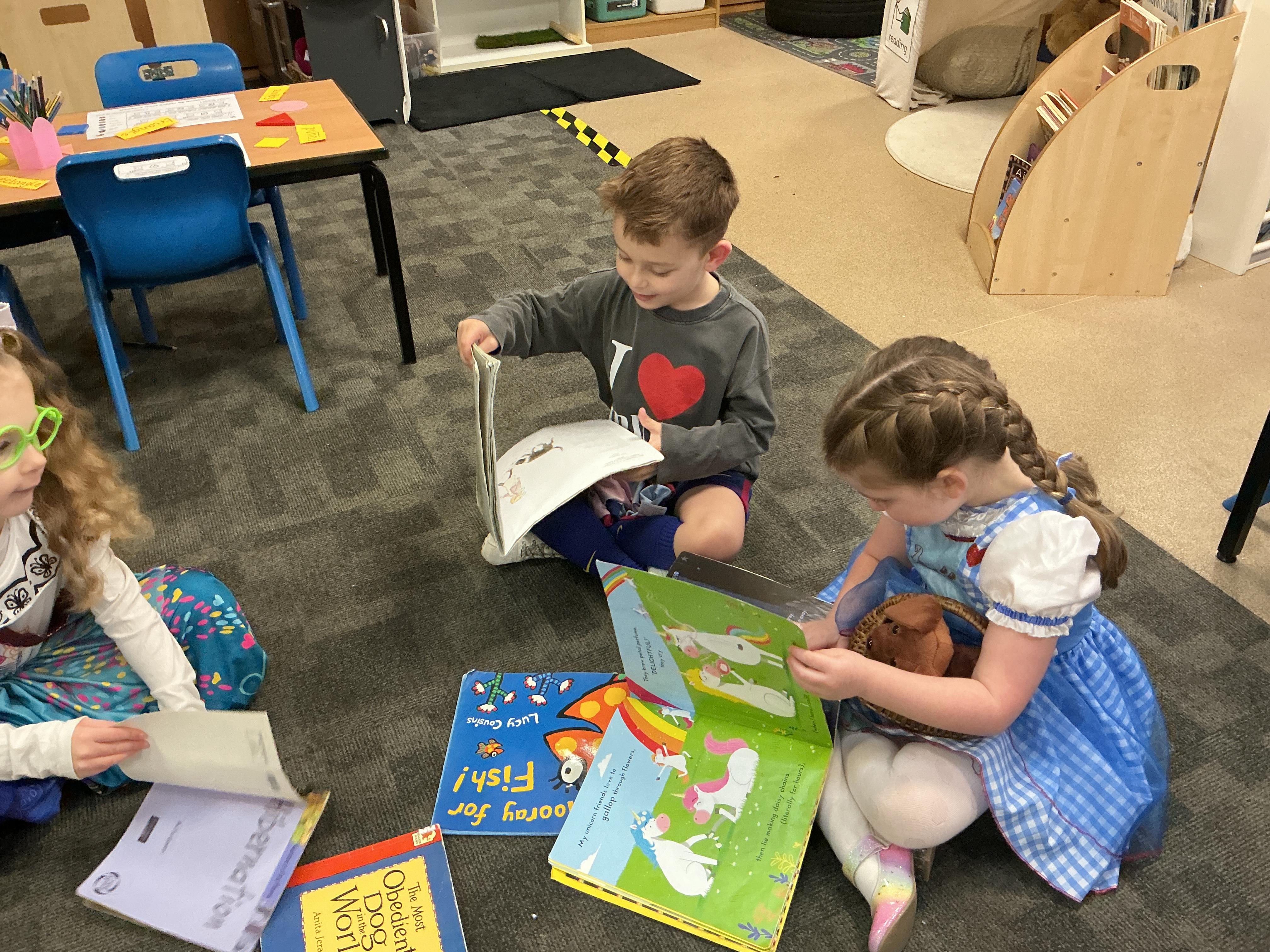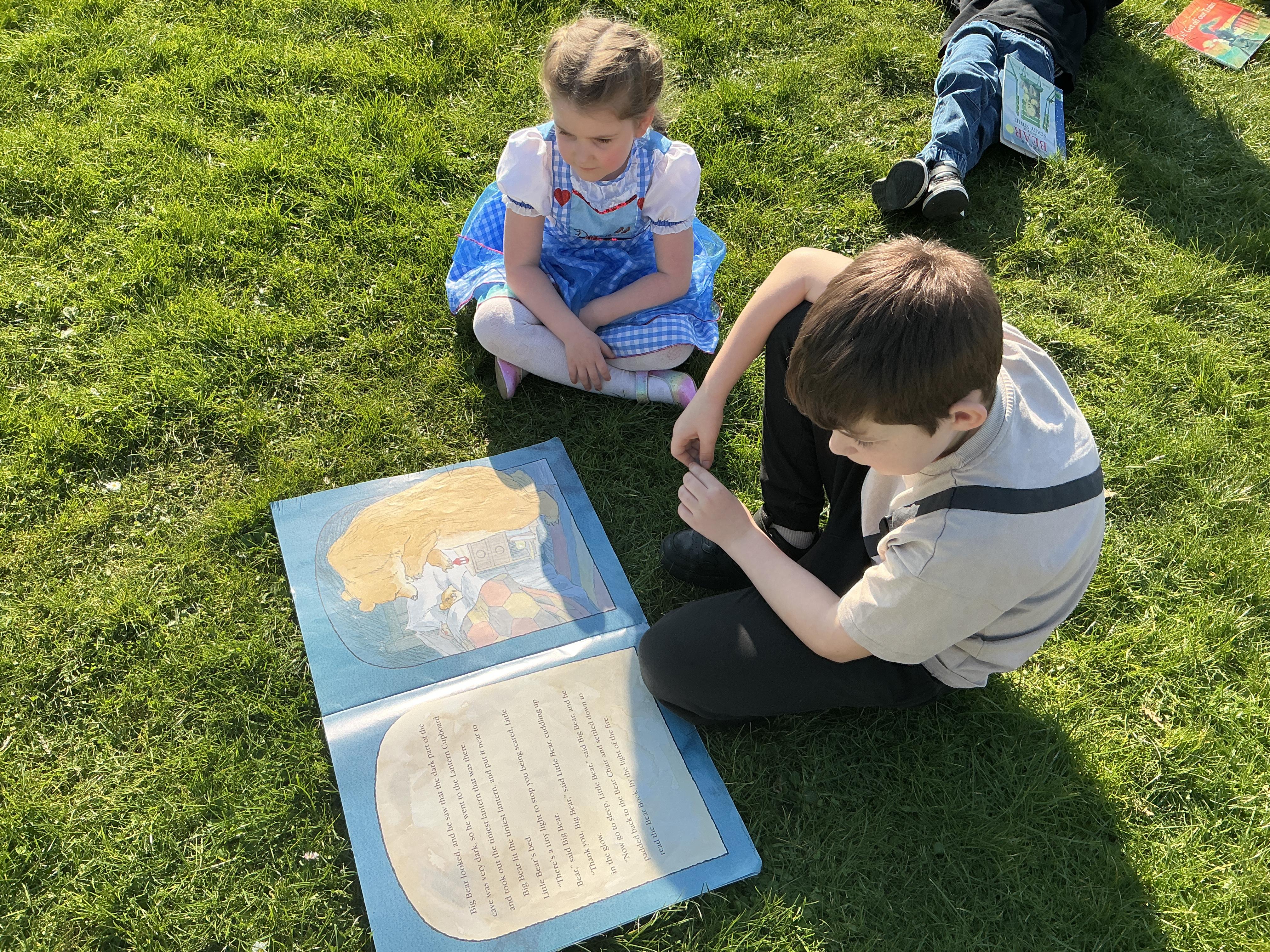 To celebrate World Book Day this year the children came dressed as their favourite story characters. We spent time in the classroom reading with our friends and creating art work linked to our story this week. In the afternoon, we were visited by the Year 5 children, who came to share a story with us in the lovely sunshine!