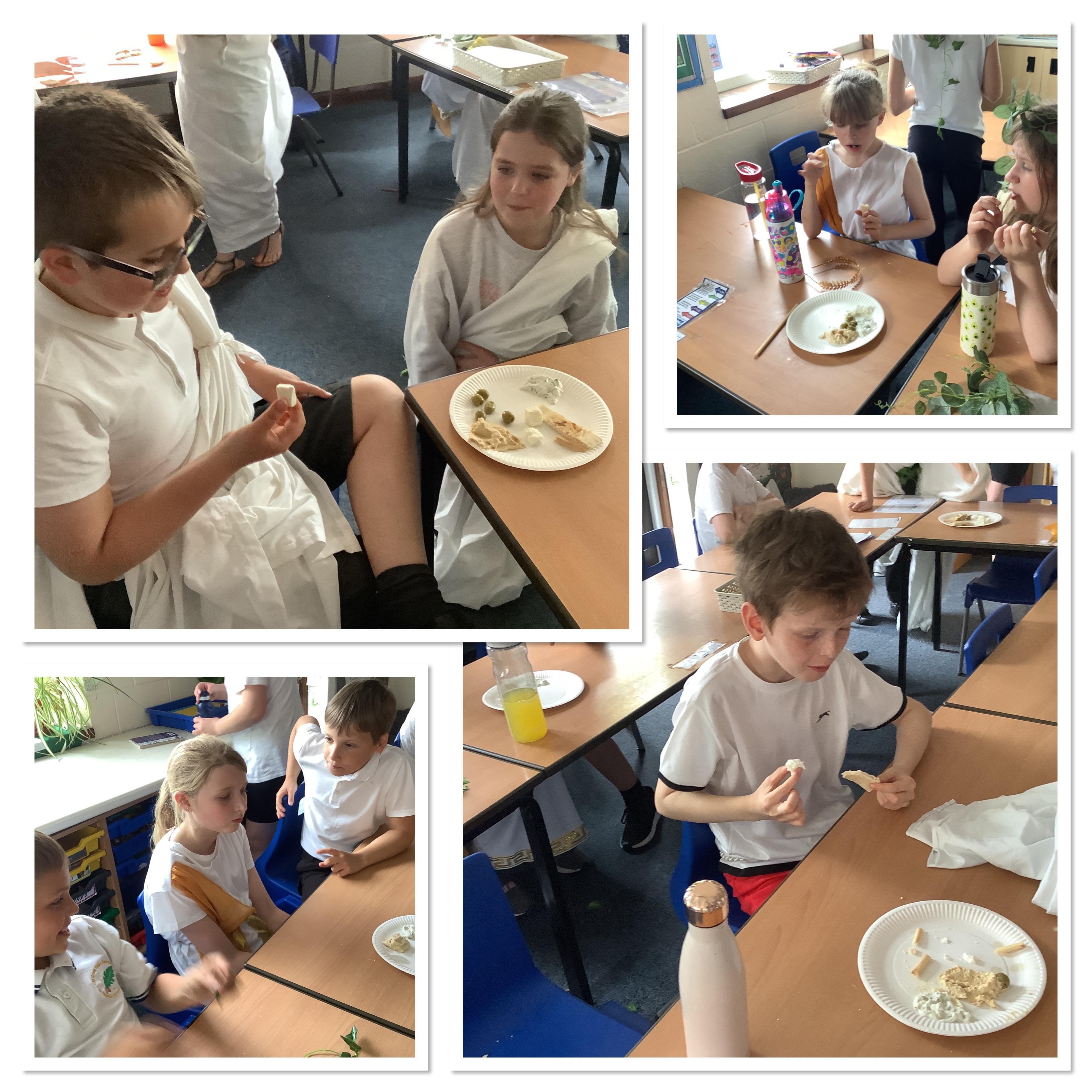 Dressed as Ancient Greeks, we handled artefacts from The Collection museum, asking historical enquiry questions and inferring answers; in role as archaeologists we were given a picture of part of an artefact and had to infer what the missing part might look like; explored the myth of King Midas and his Golden Touch through drama and used our Athletics skills to enter the mini Olympics, practising the events that were part of the Olympics in that era. In the afternoon, to build our appreciation of the food the Ancient Greeks ate, we tasted olives… Most of the class did not revere this fruit as they did! Luckily we also had pitta bread, tzatziki, houmous and feta cheese, which were enjoyed rather more.