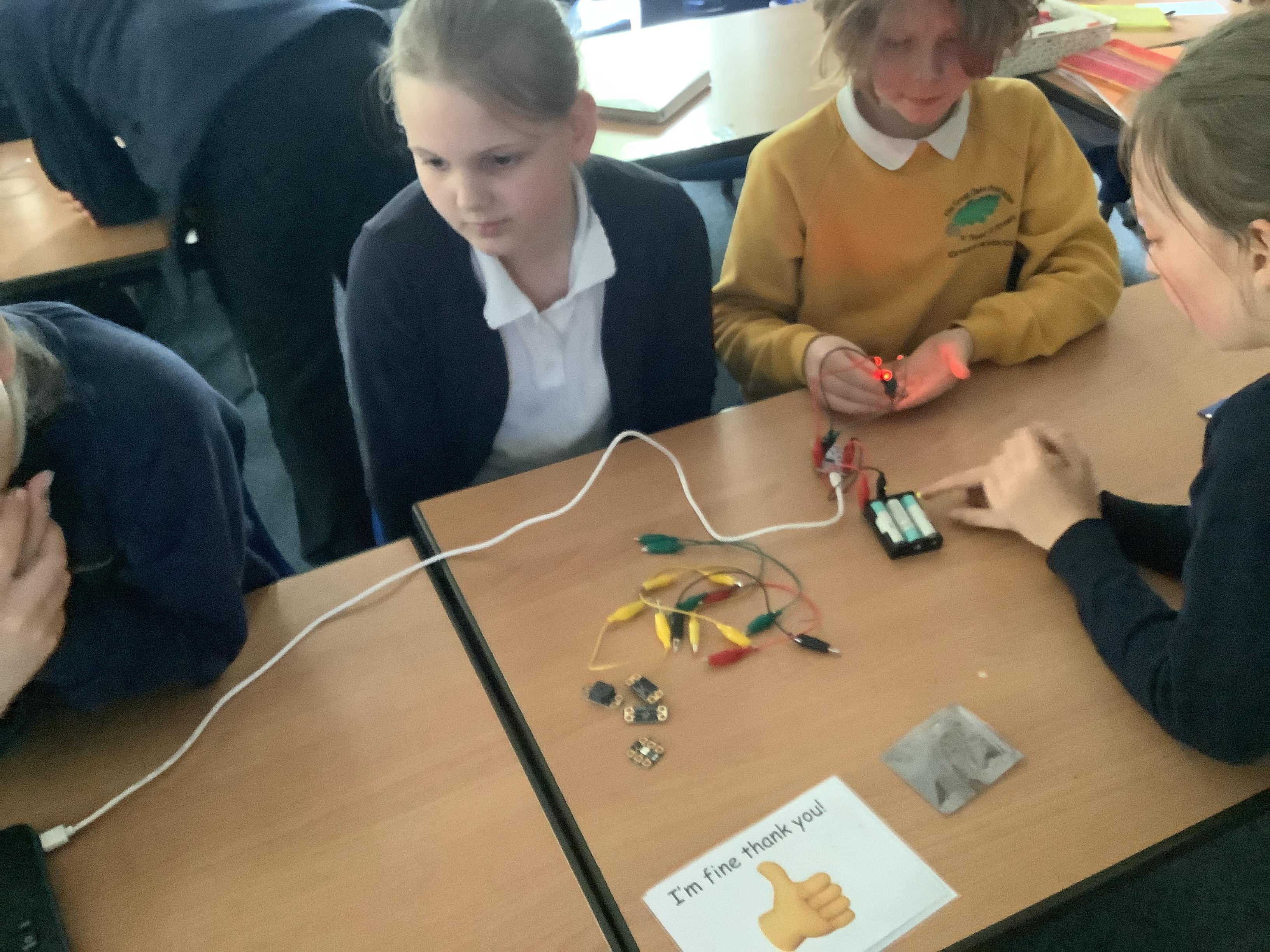 We are learning to code, using Crumble software. Today we were able to code the sparkle to flash alternate red and blue lights, and next week aim to develop this to be able to code longer programmes involving more complicated sequences.
