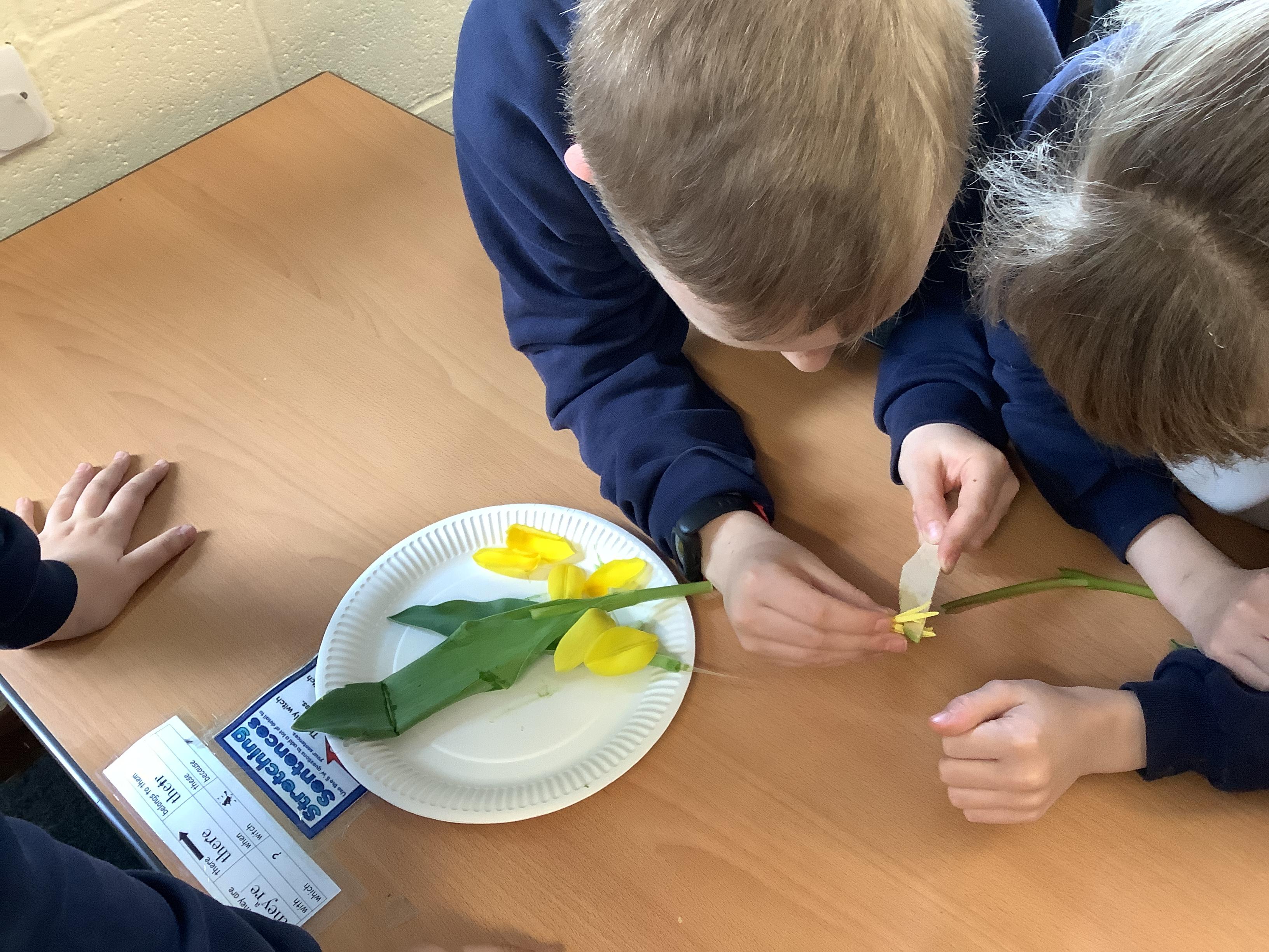 Learning the reproductive parts of a flowering plant was helped when we dissected one! We were able to identify all of the parts we have been learning about, and describe their functions.